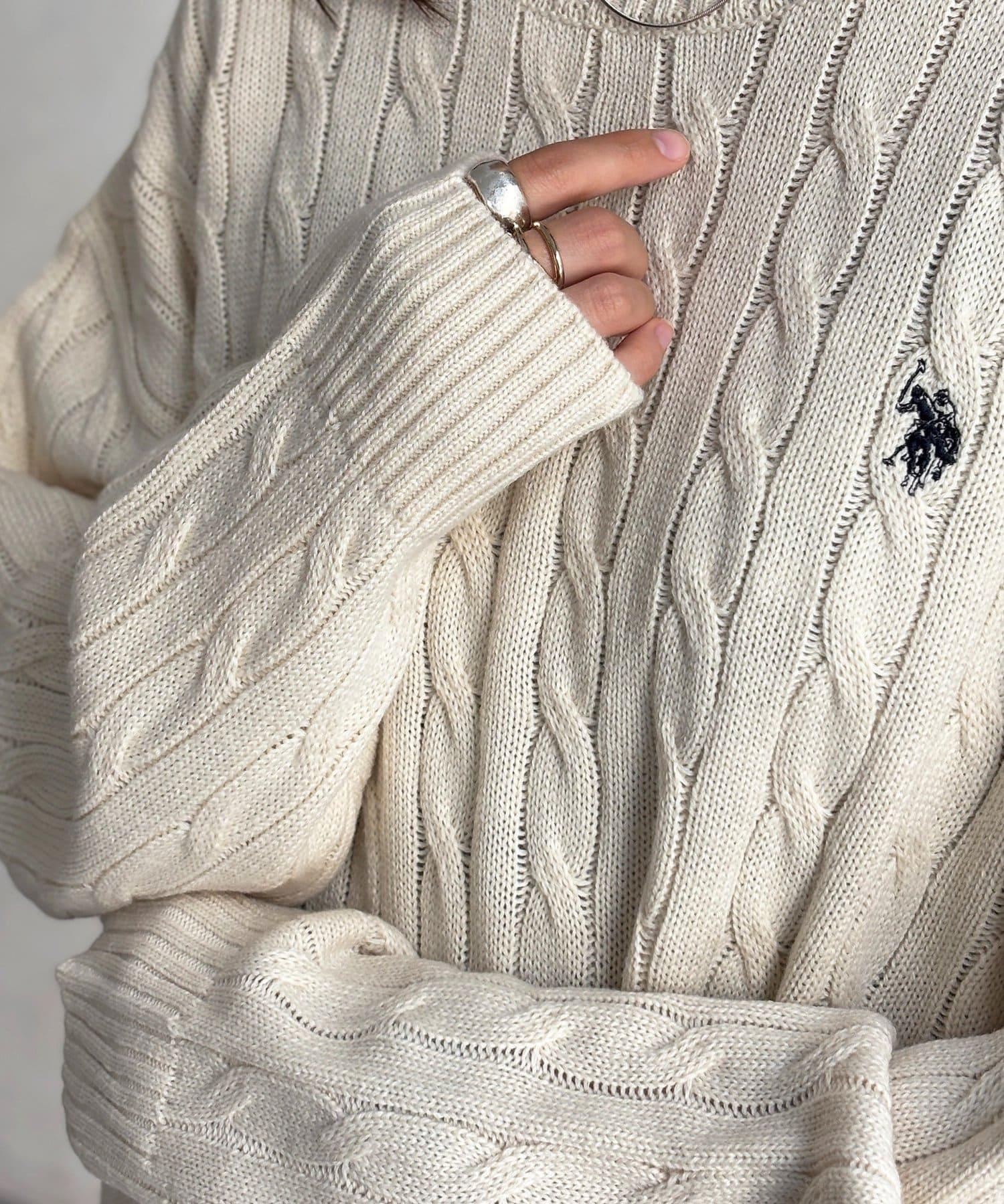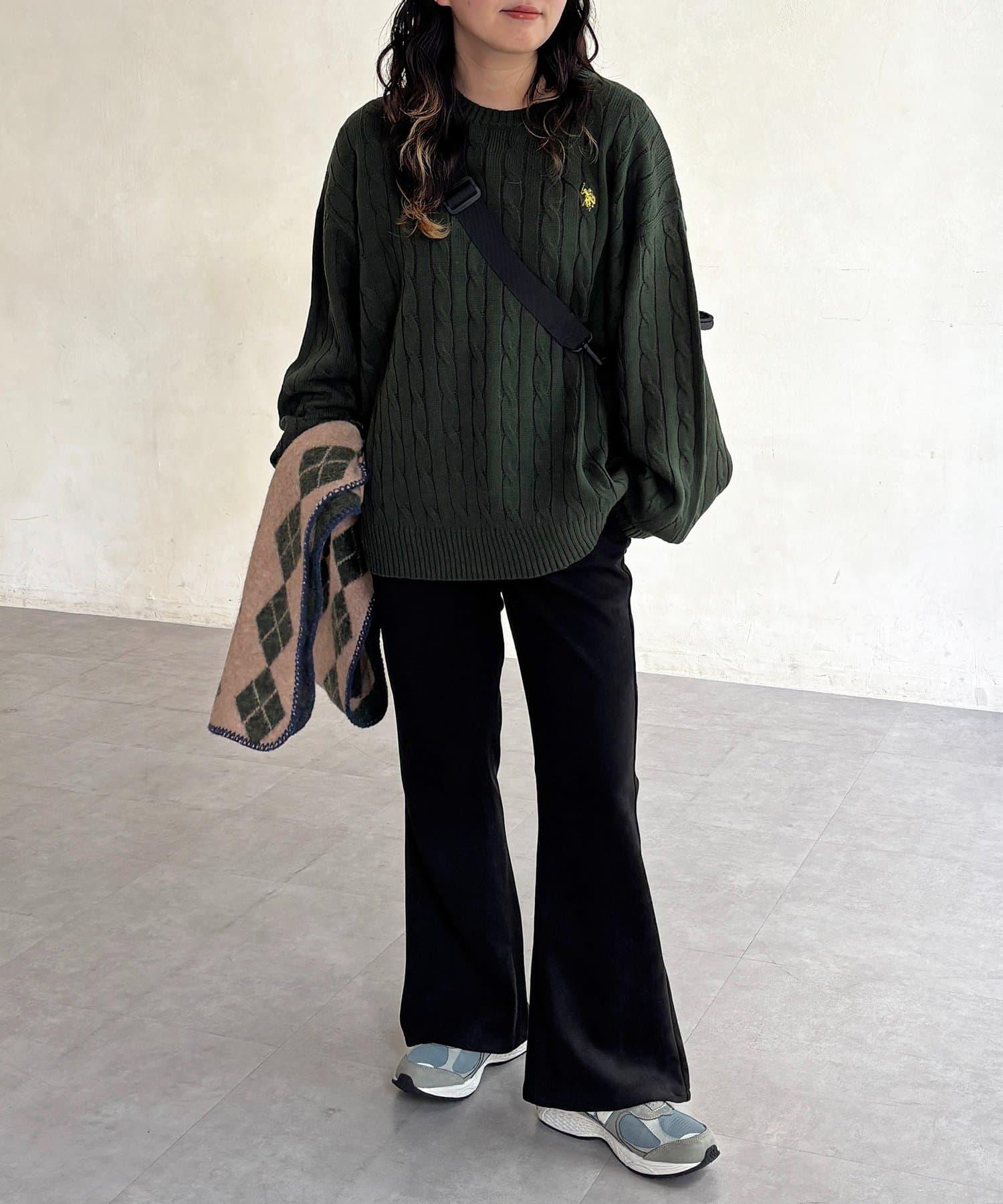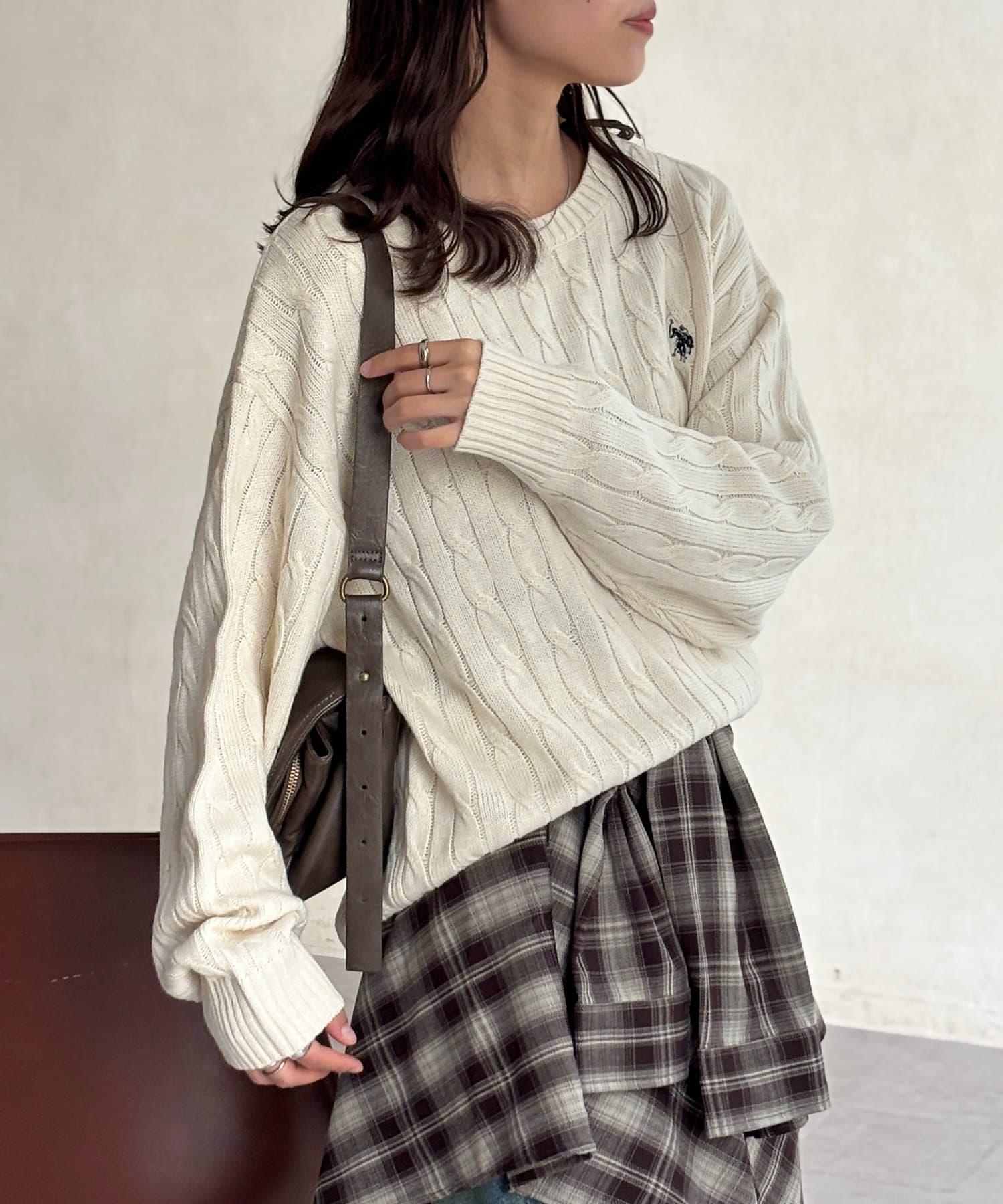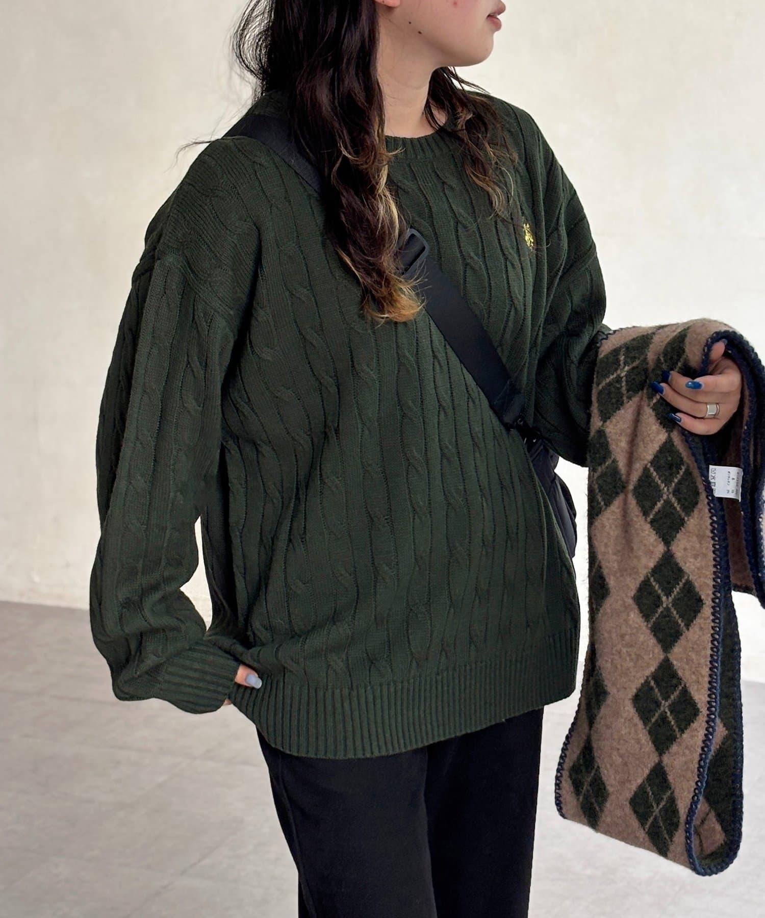【U.S. POLO ASSN. 】1點刺繡麻花針織套頭衫