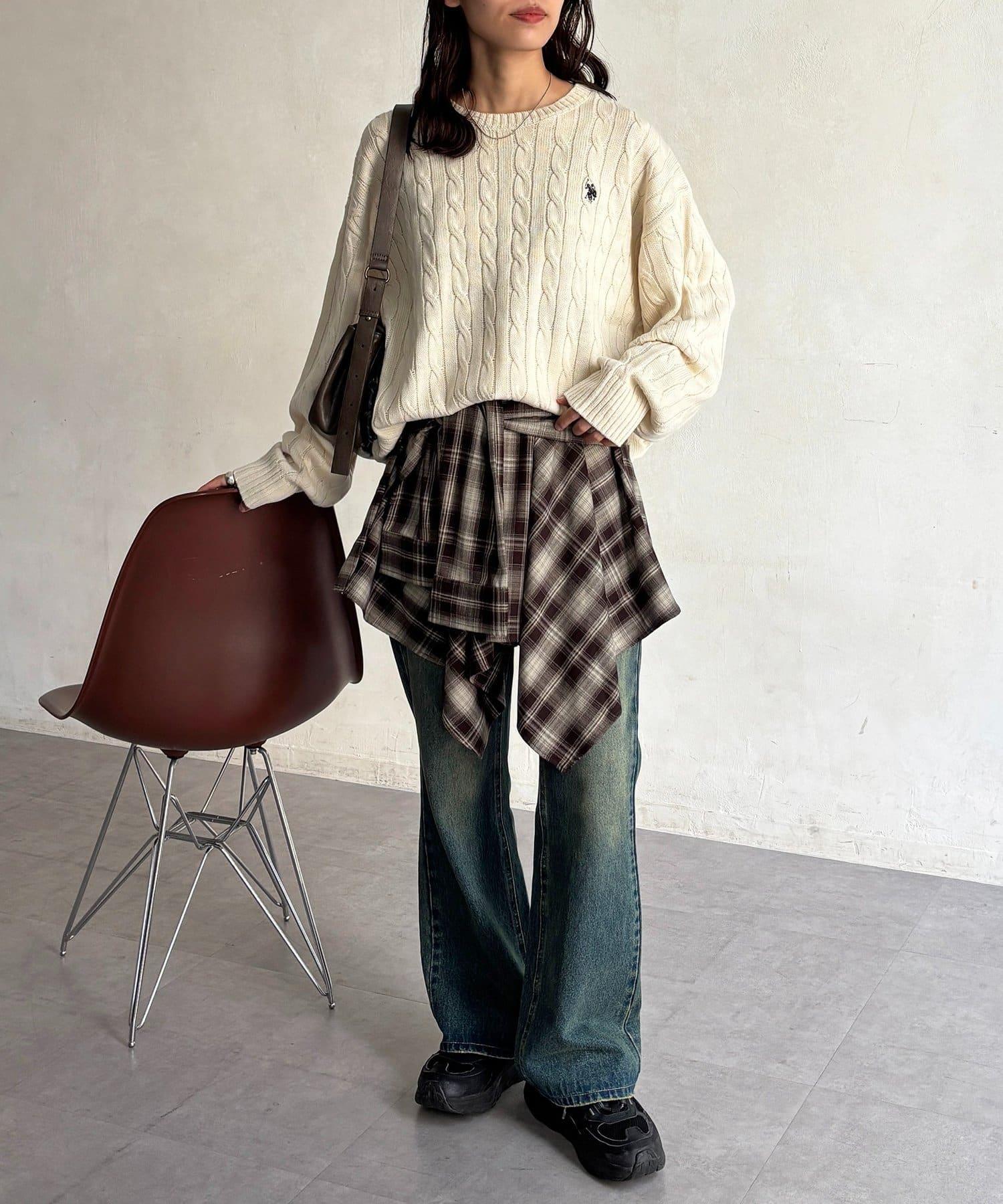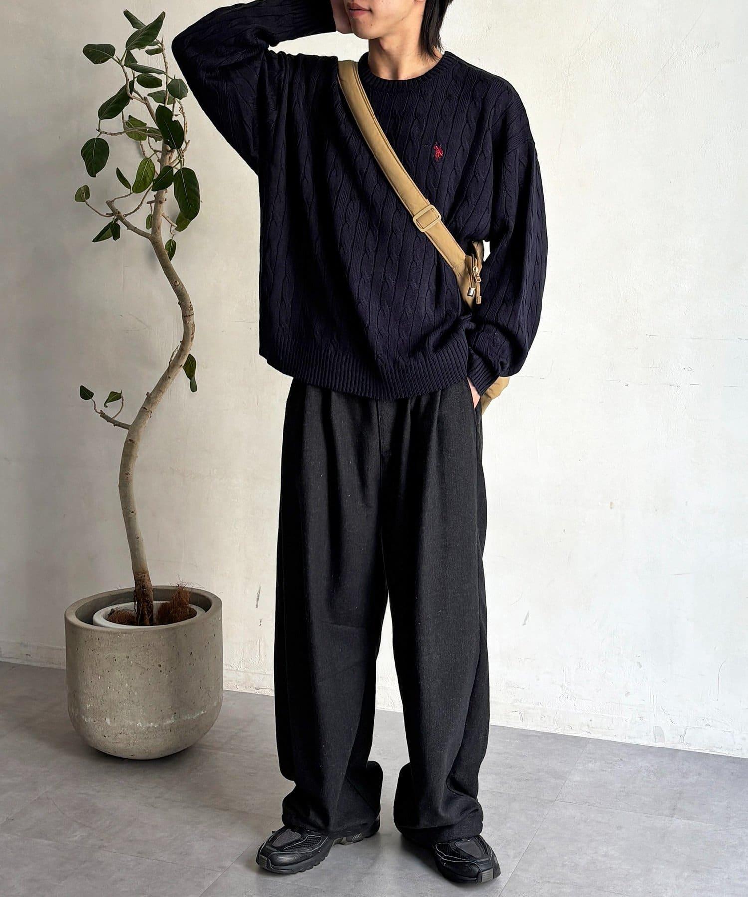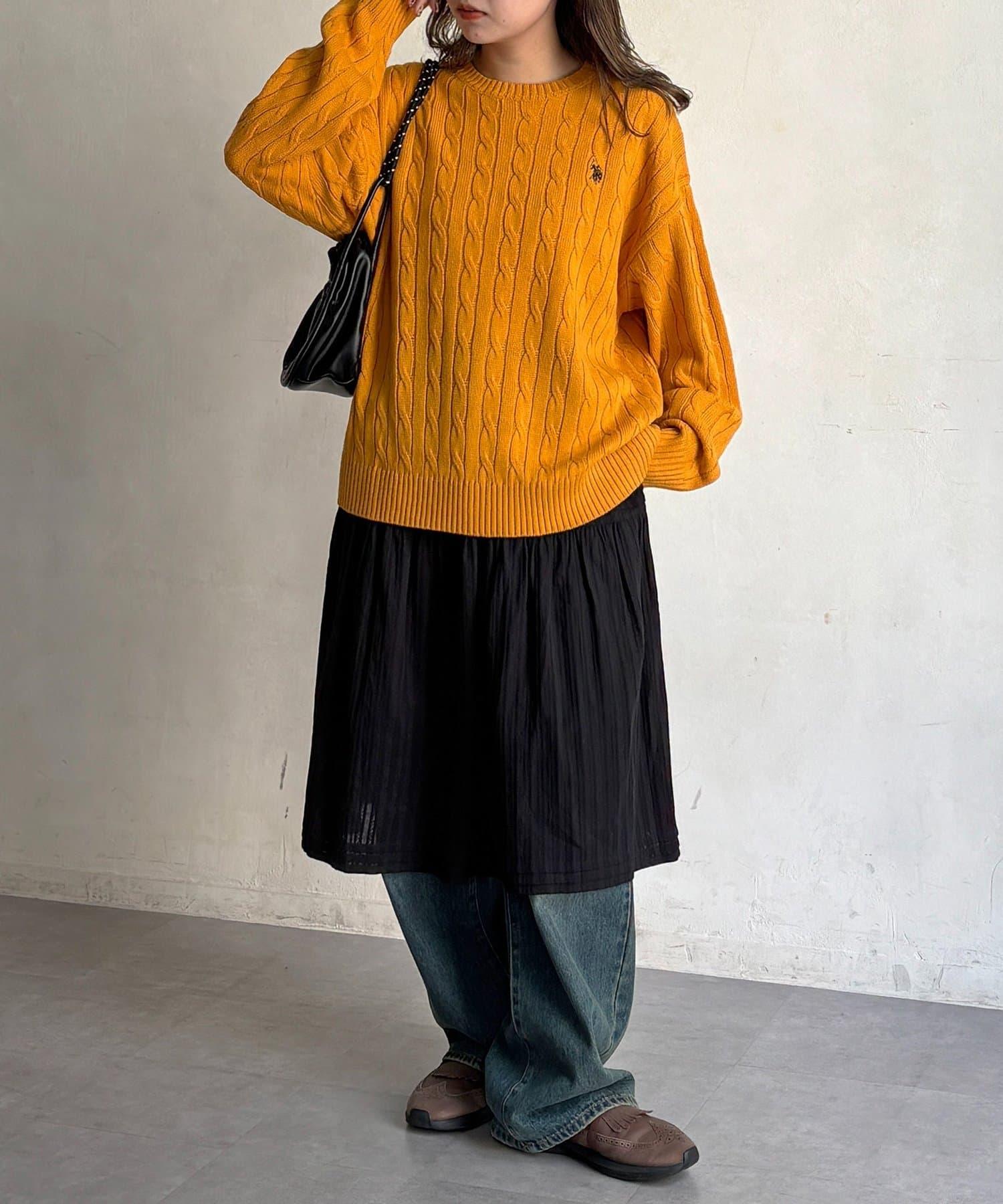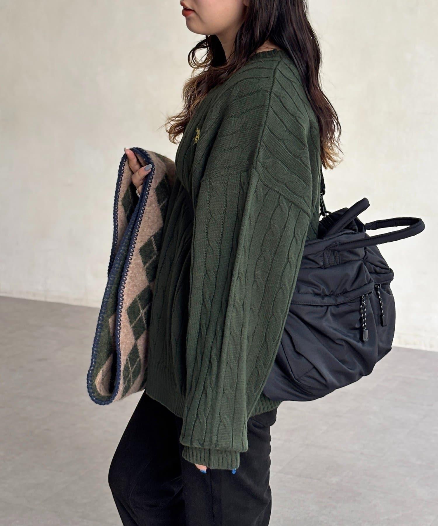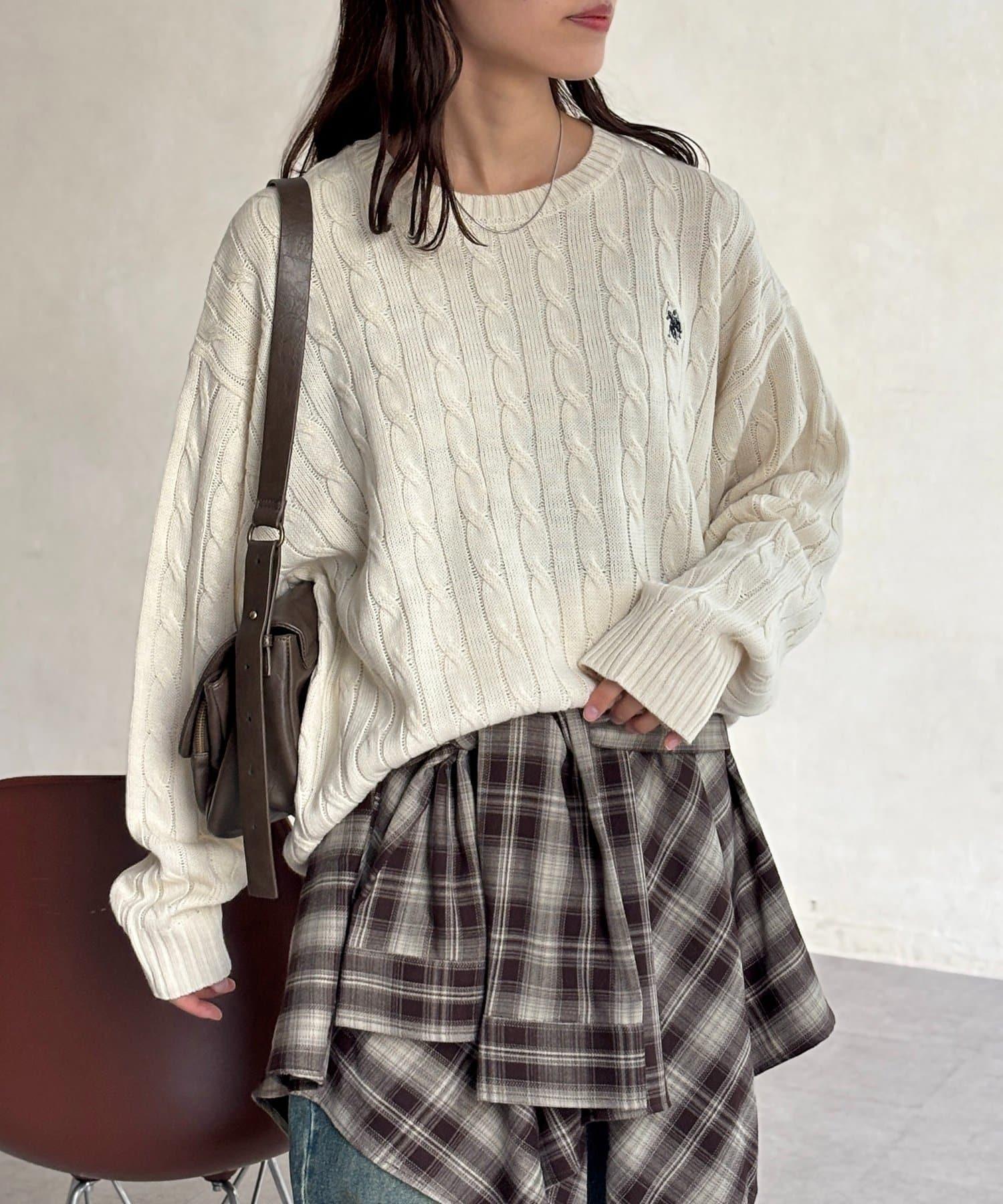 【U.S. POLO ASSN. 】1點刺繡麻花針織套頭衫