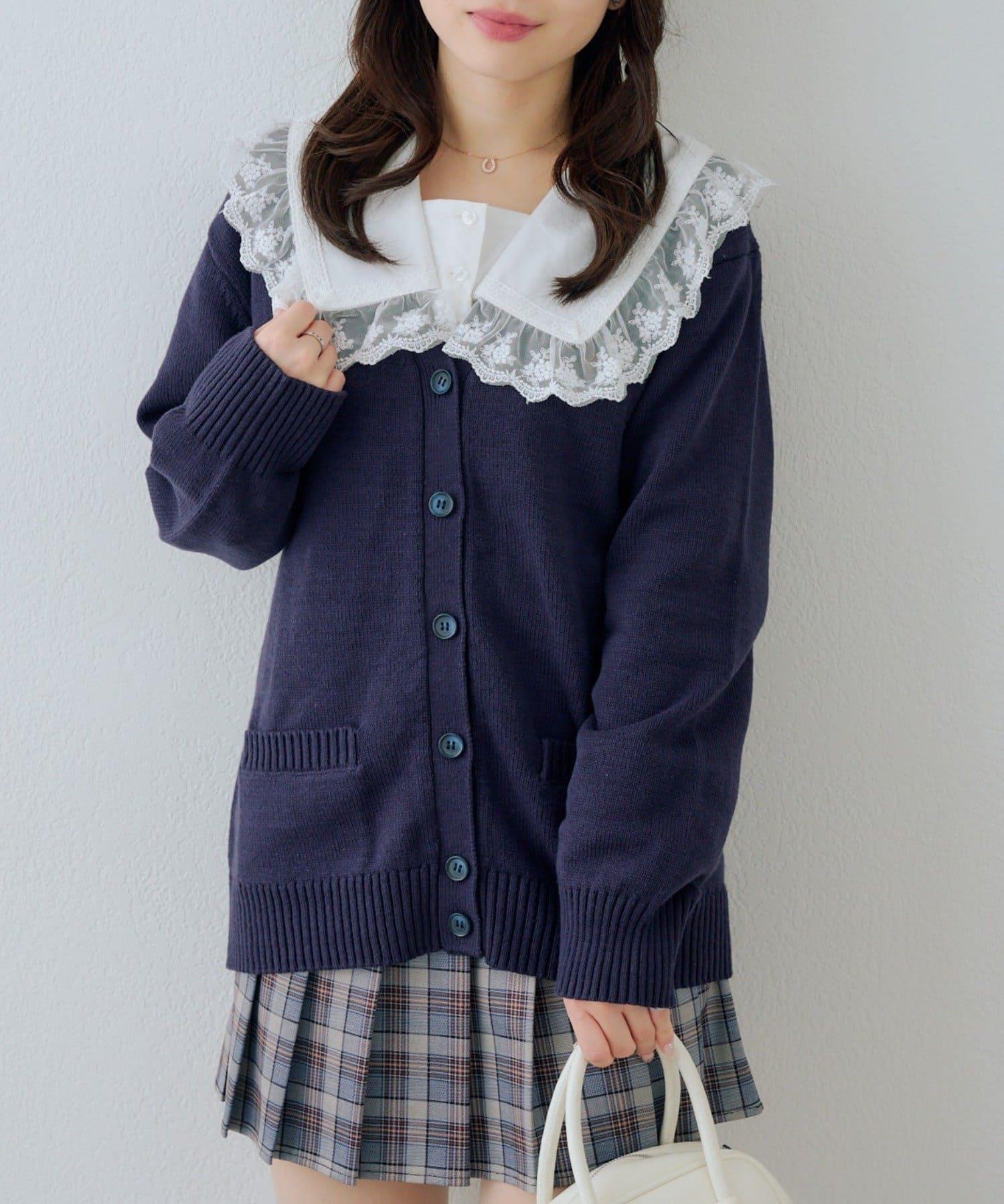 簡潔的開襟羊毛衫,👍適合搭配校服!