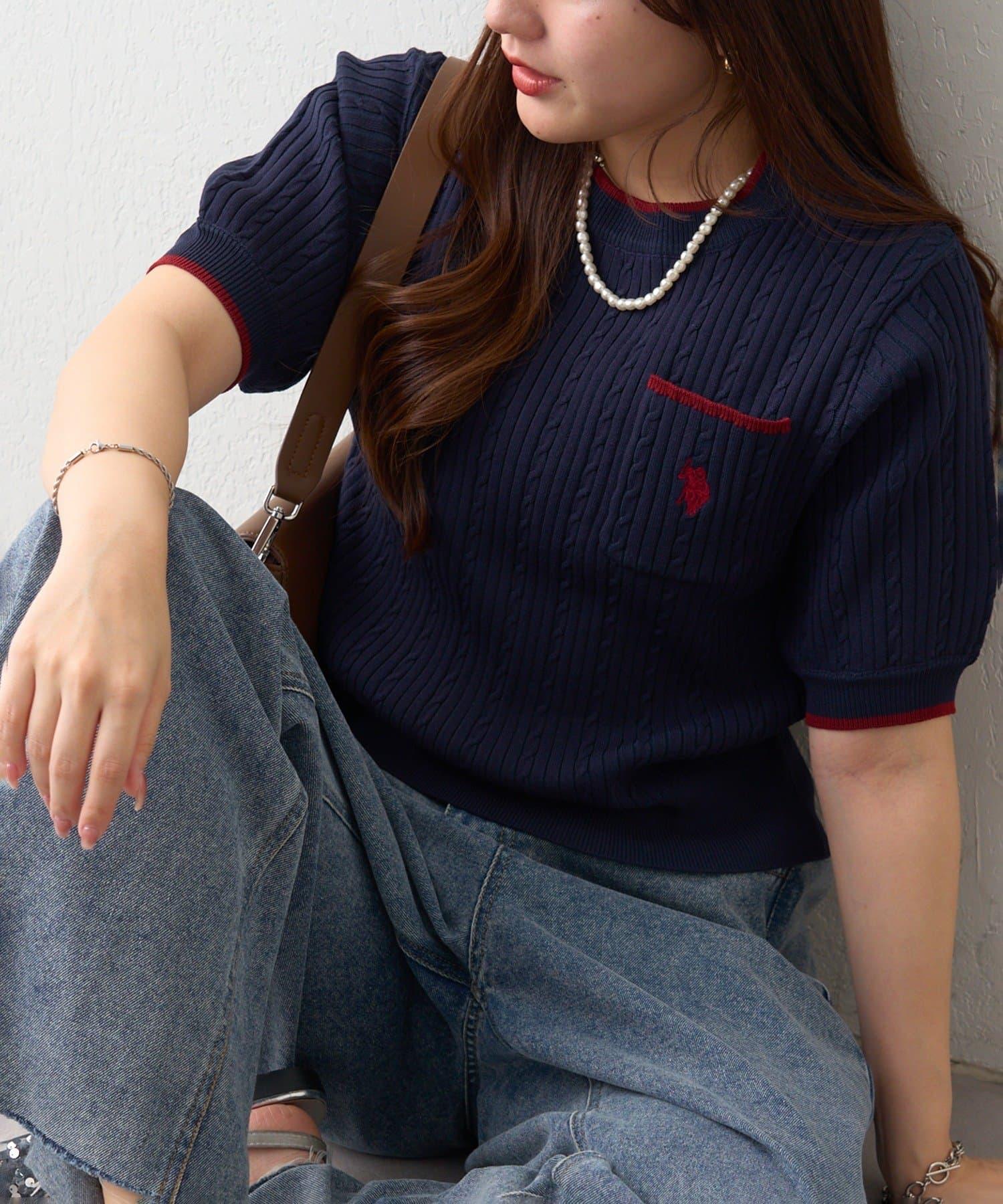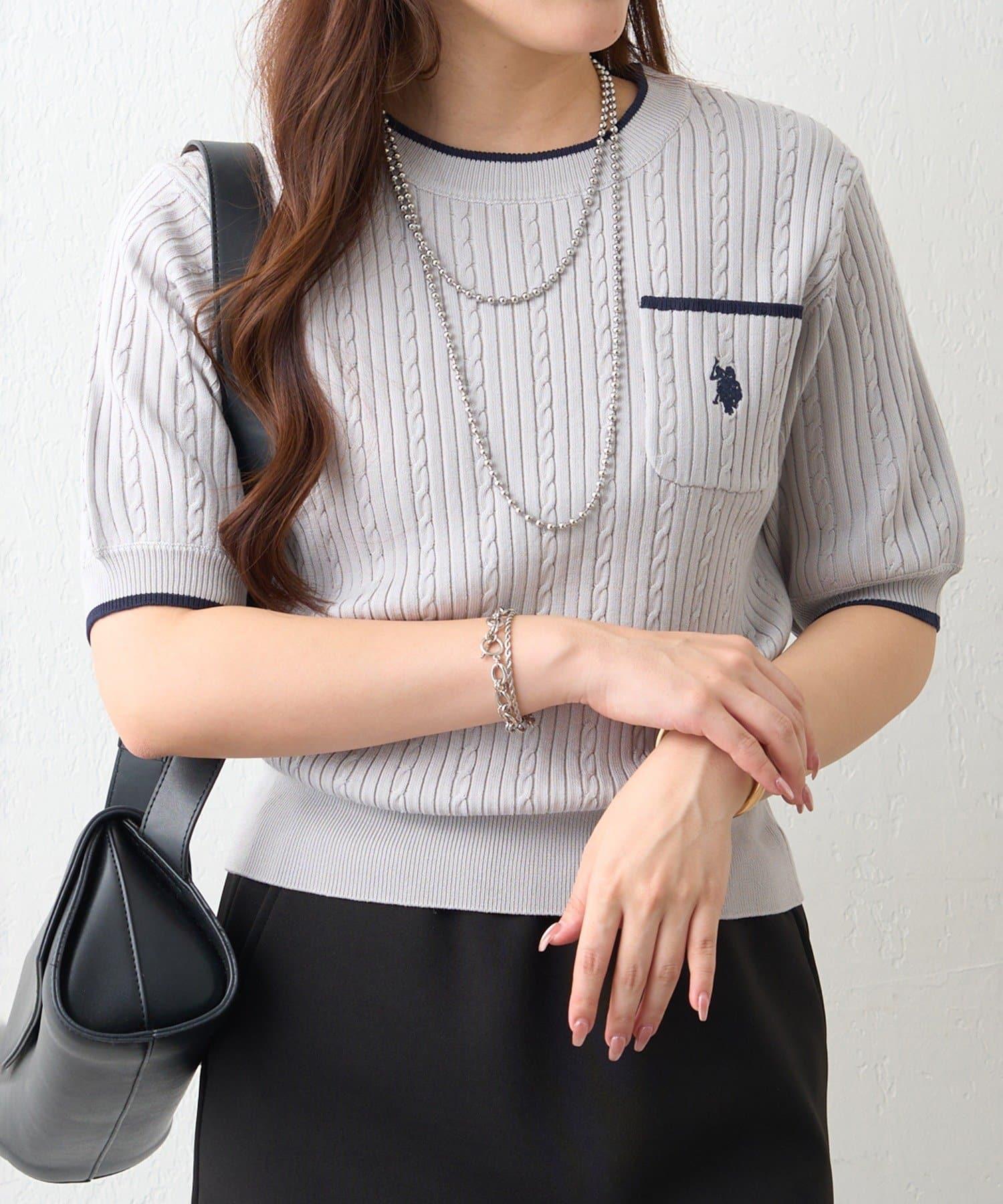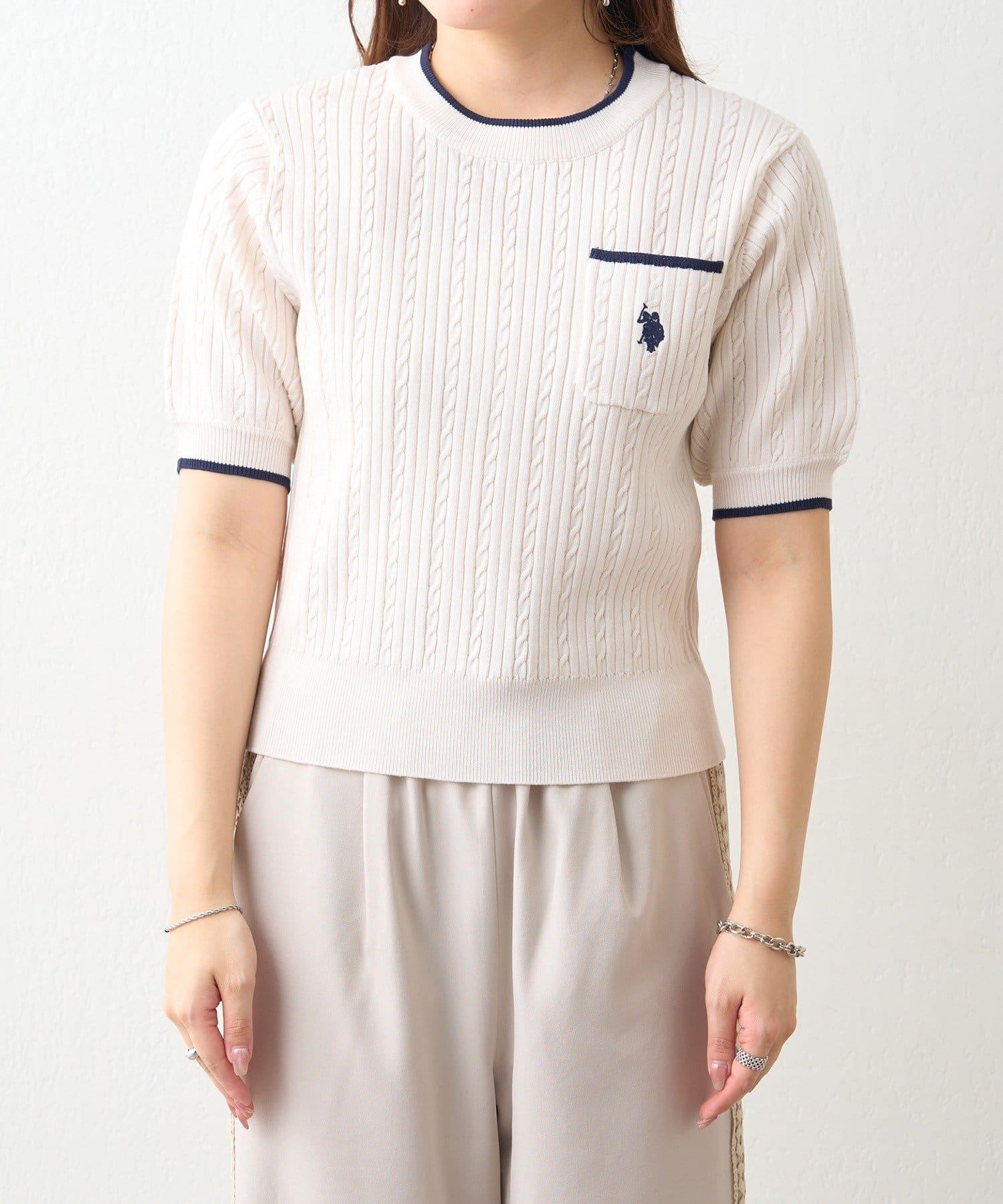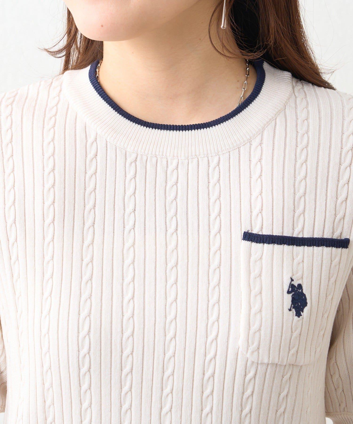 U.S.POLOASSN. 麻花紋口袋設計針織套頭衫