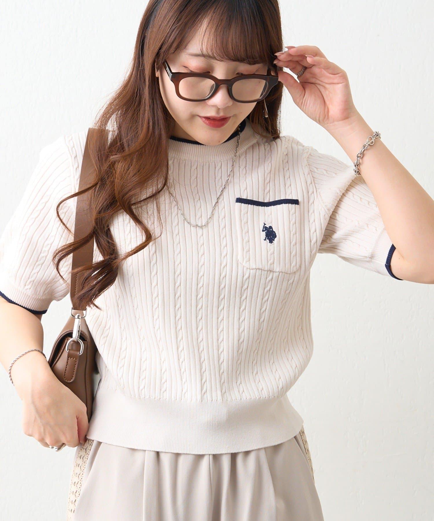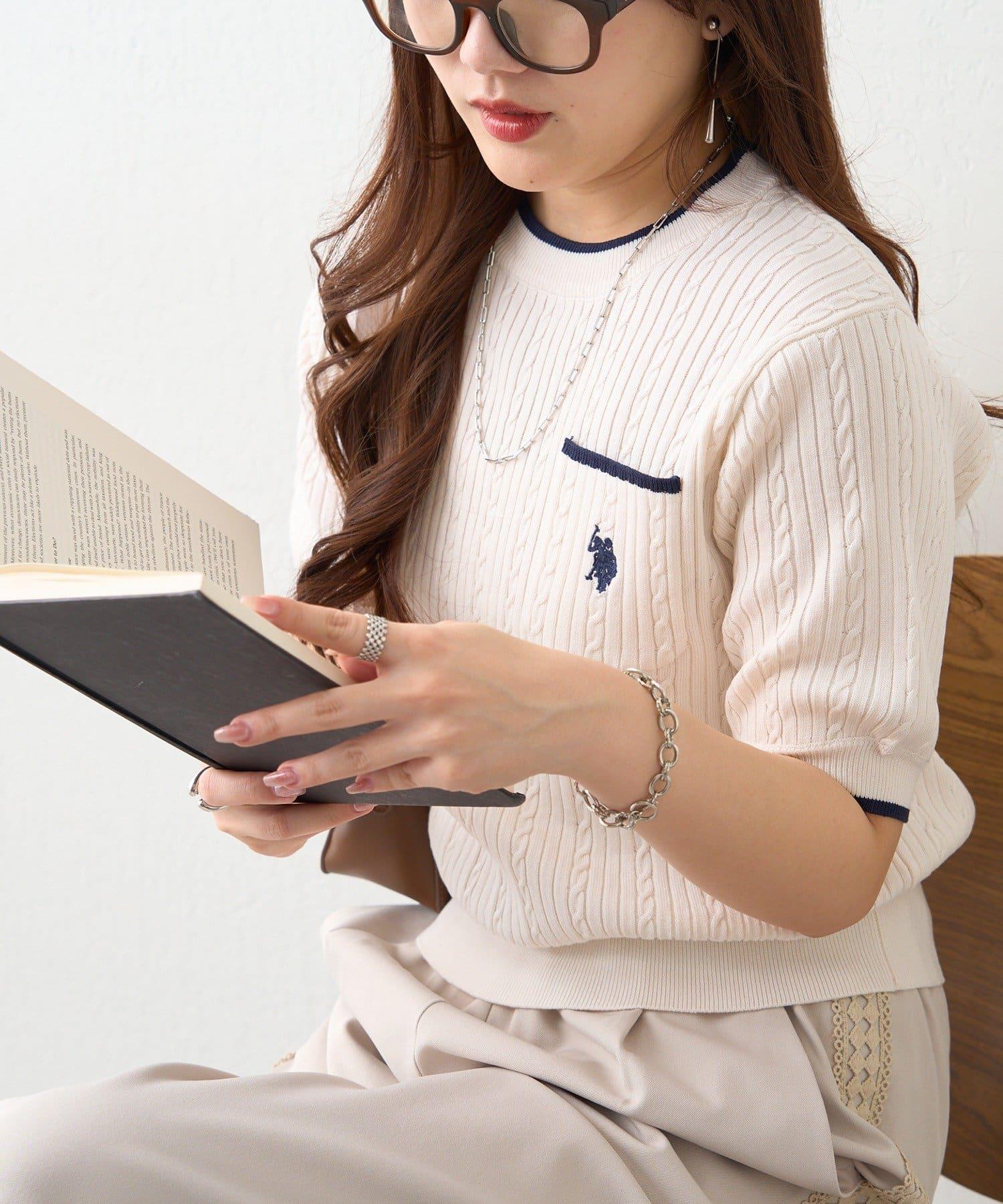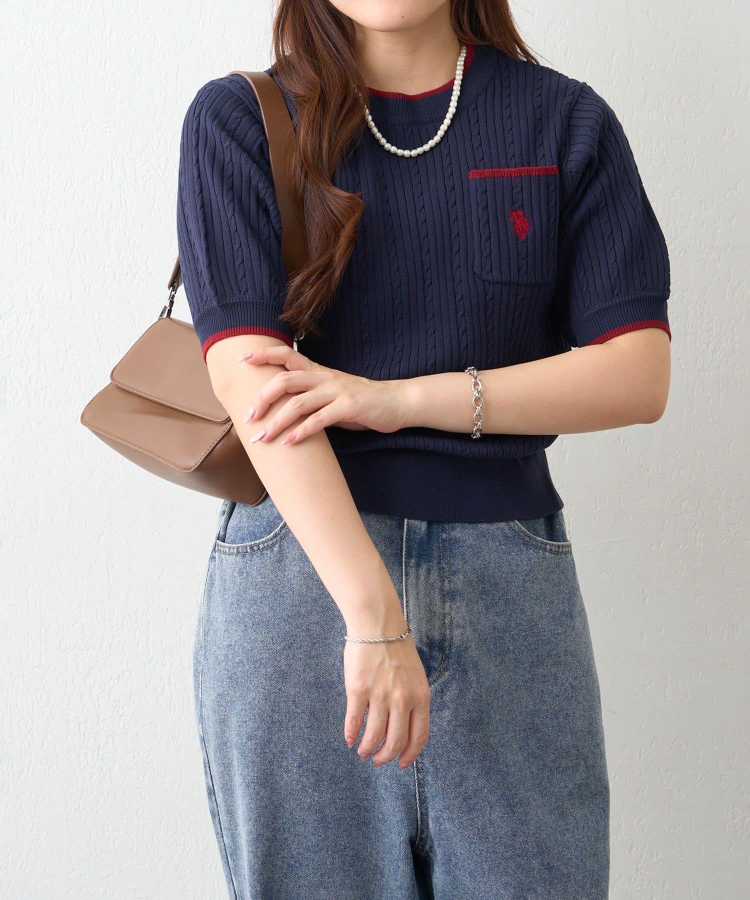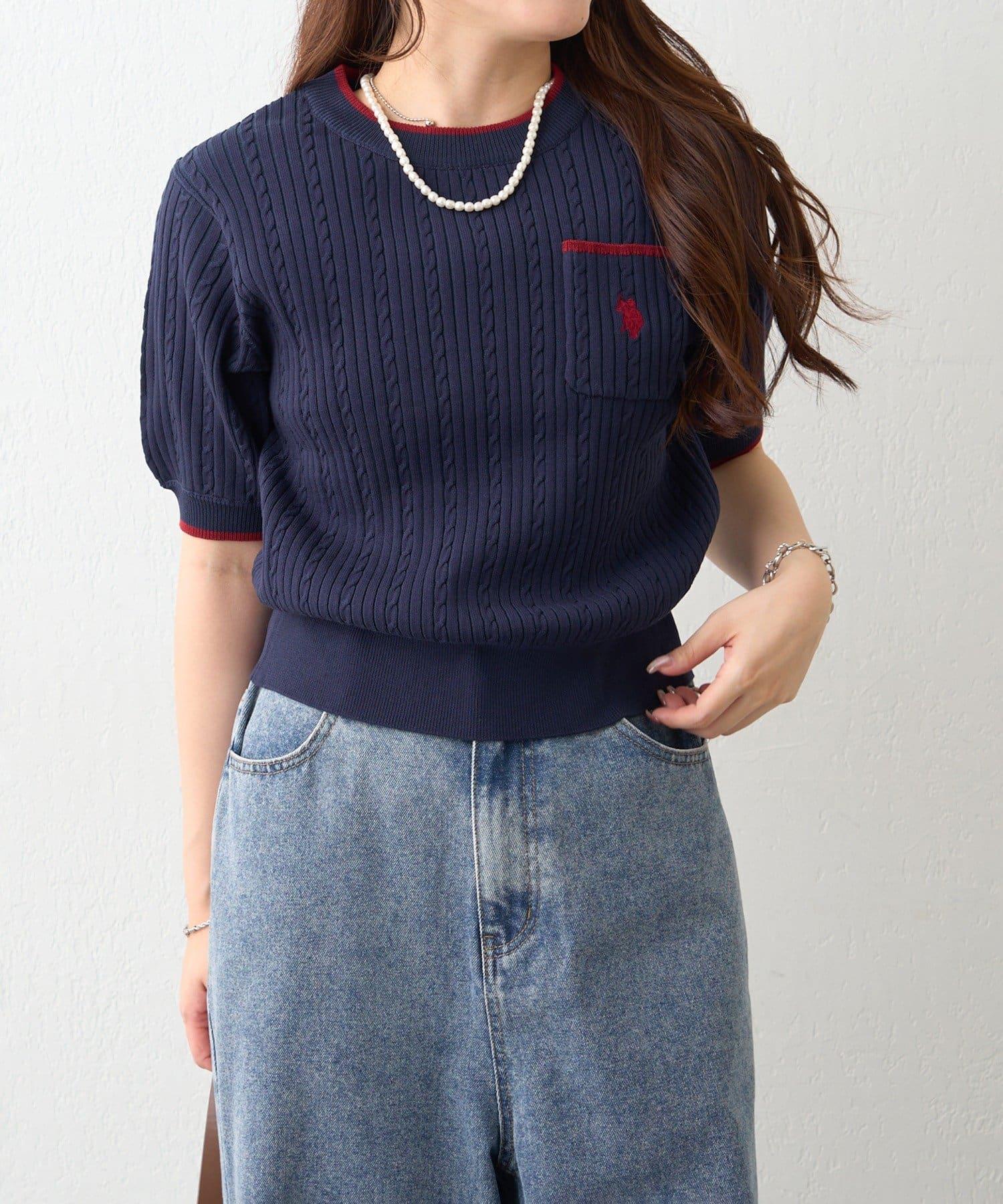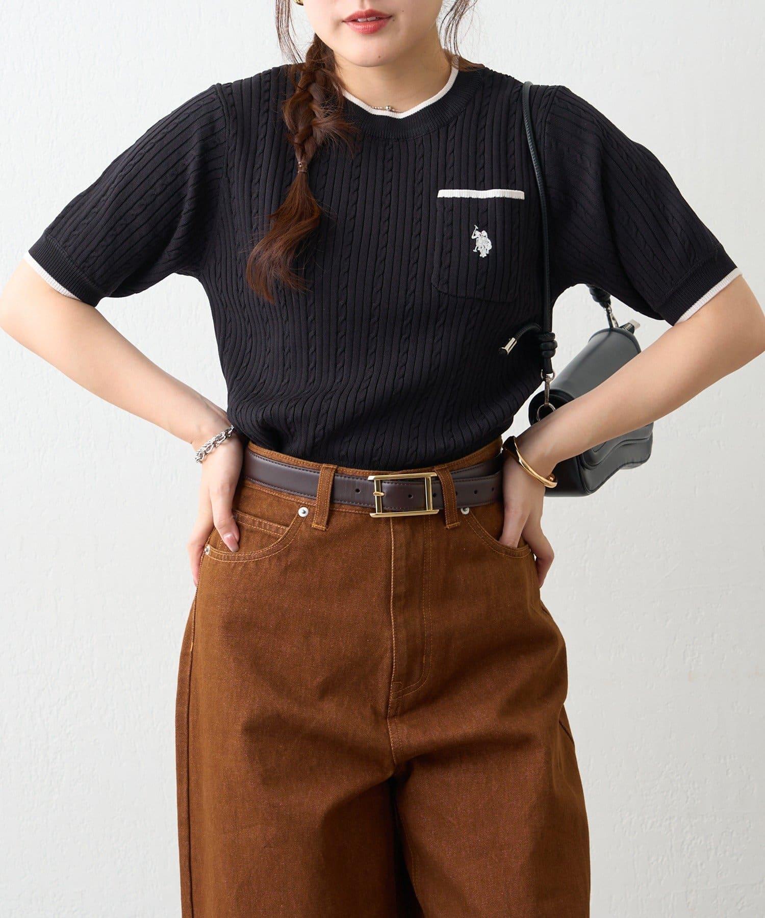 U.S.POLOASSN. 麻花紋口袋設計針織套頭衫