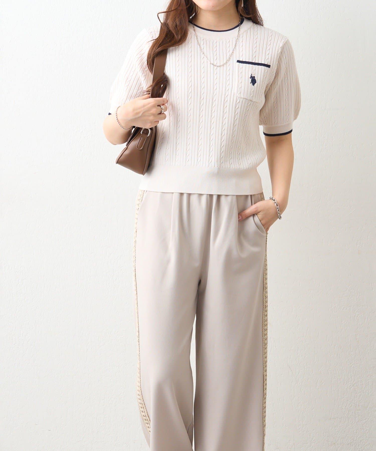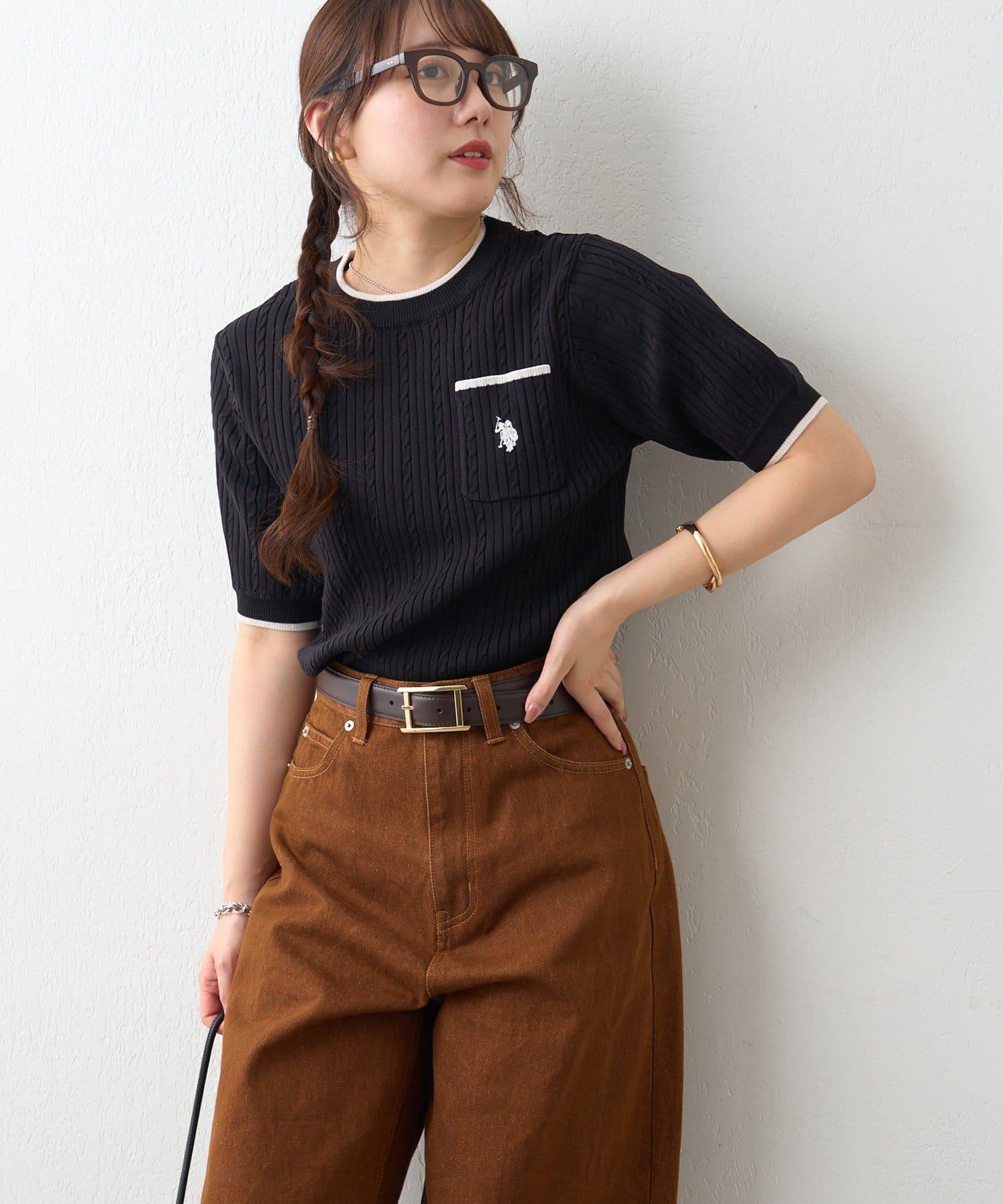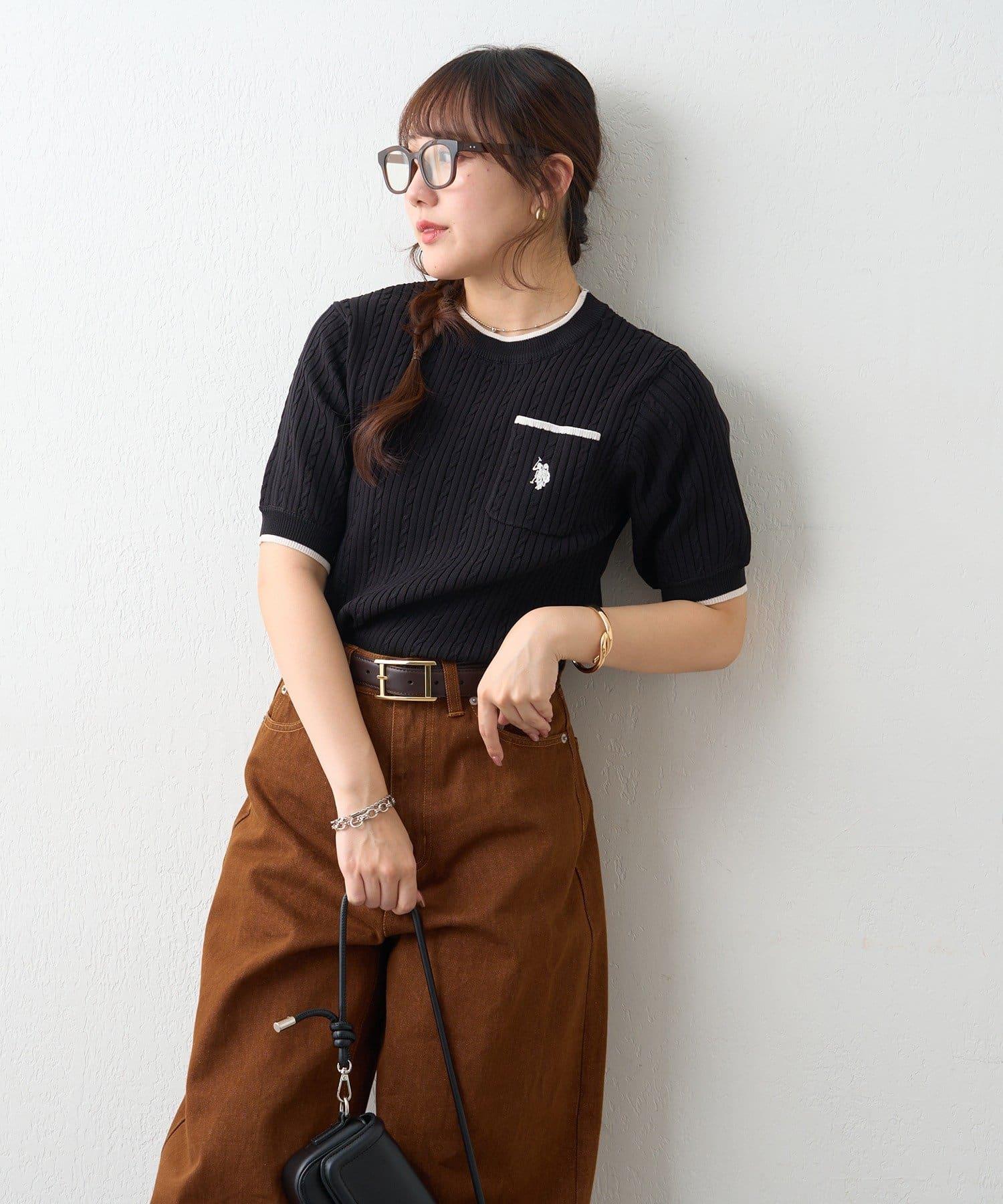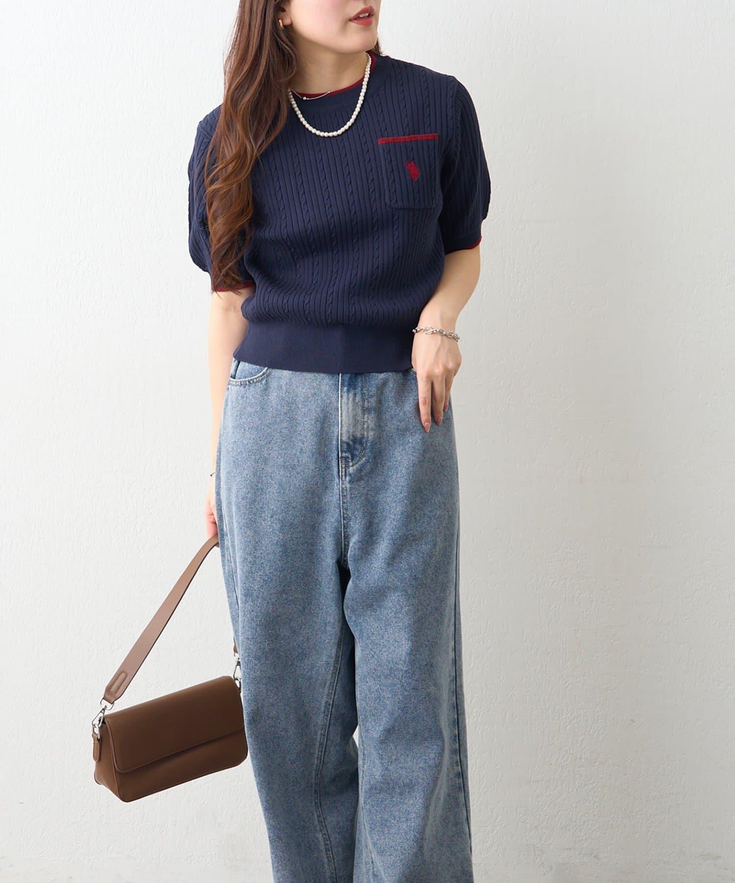 U.S.POLOASSN. 麻花紋口袋設計針織套頭衫
