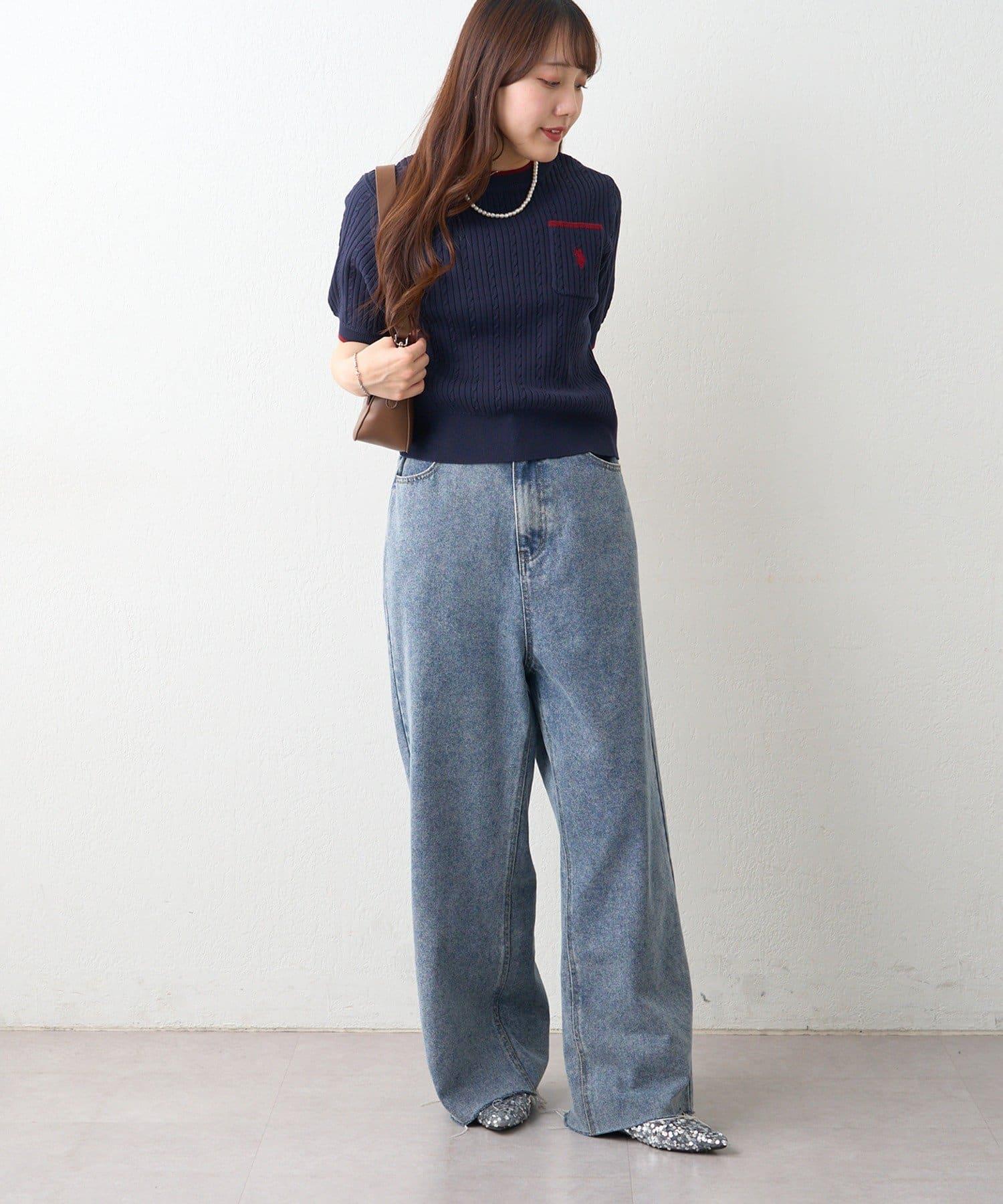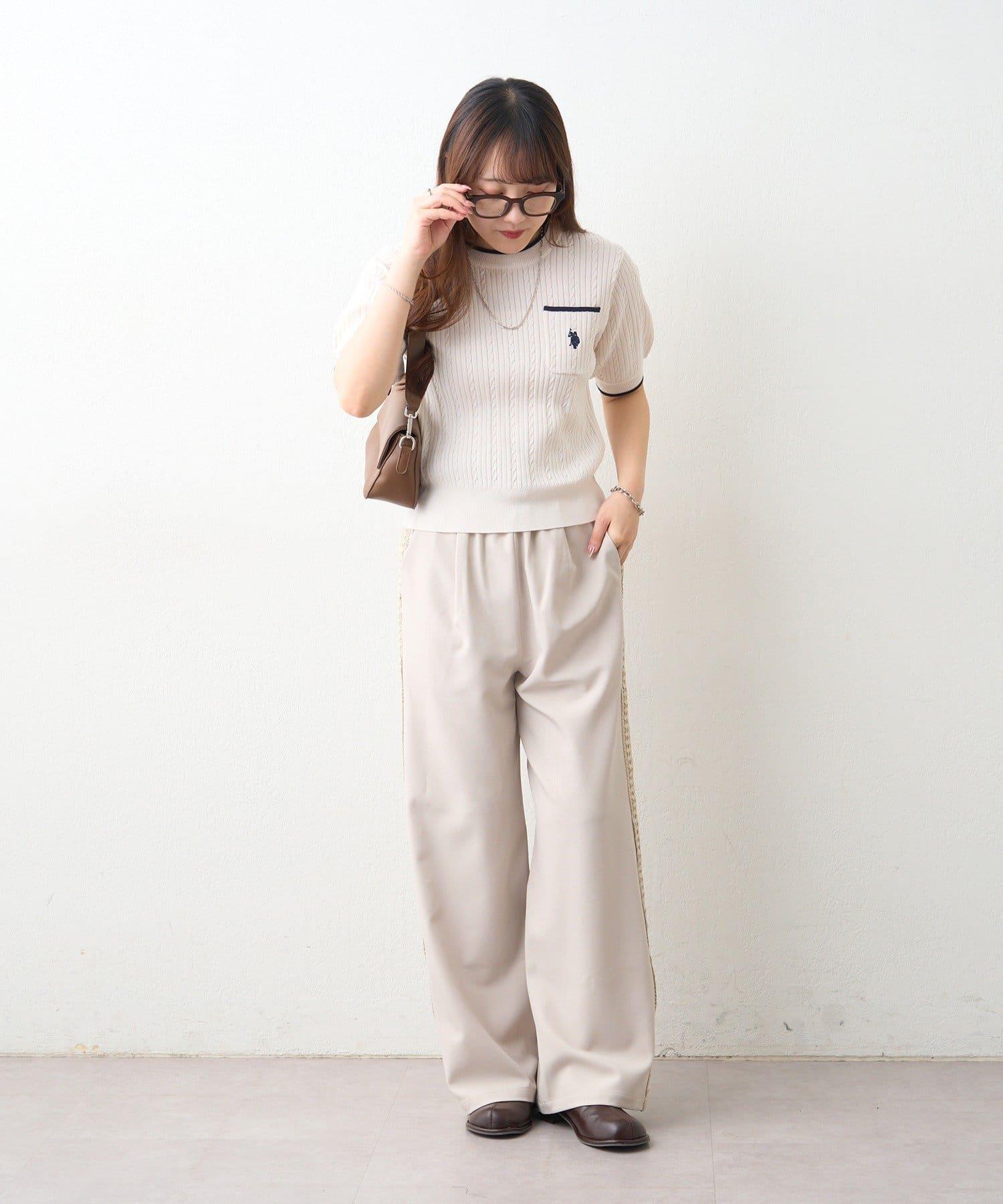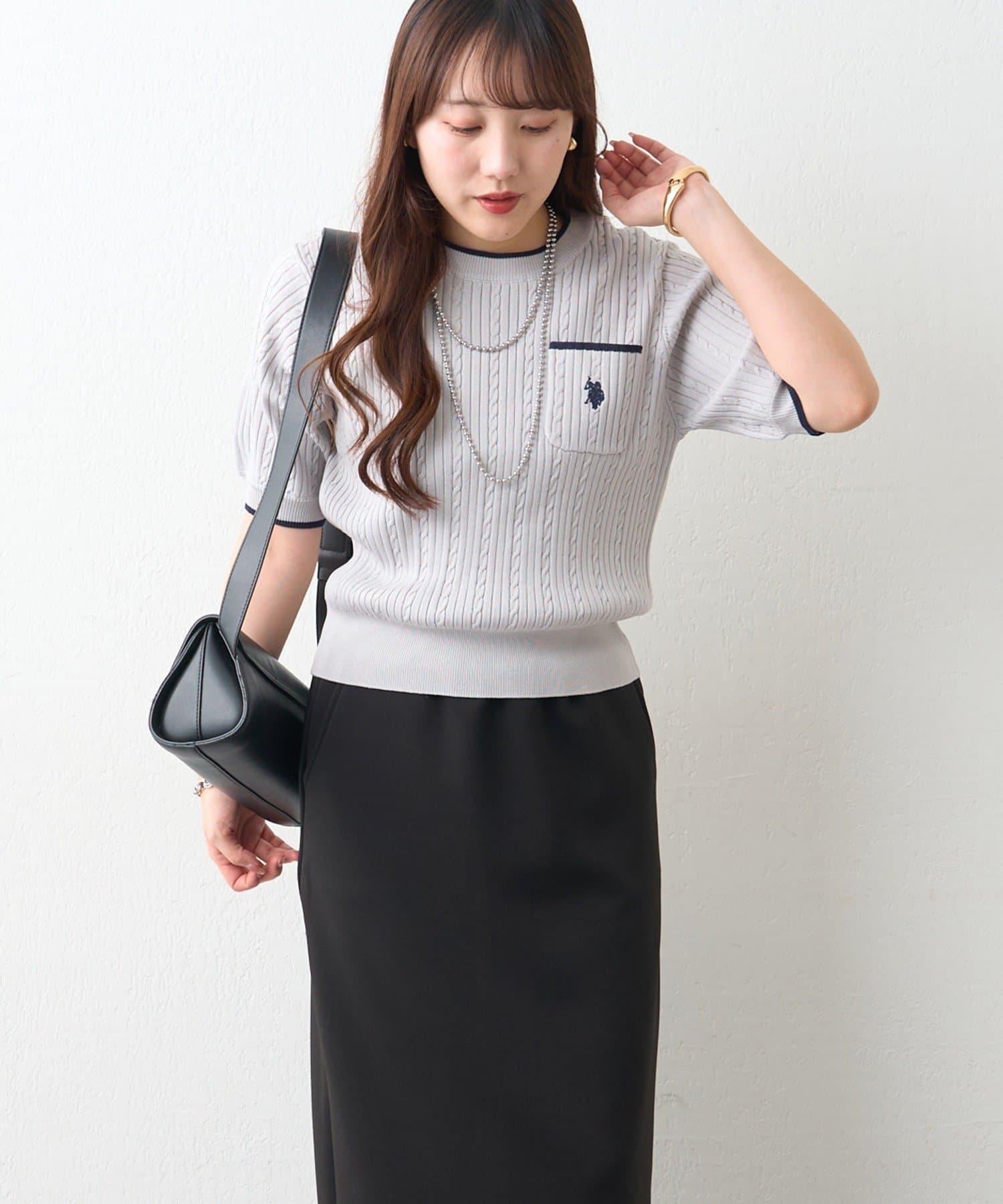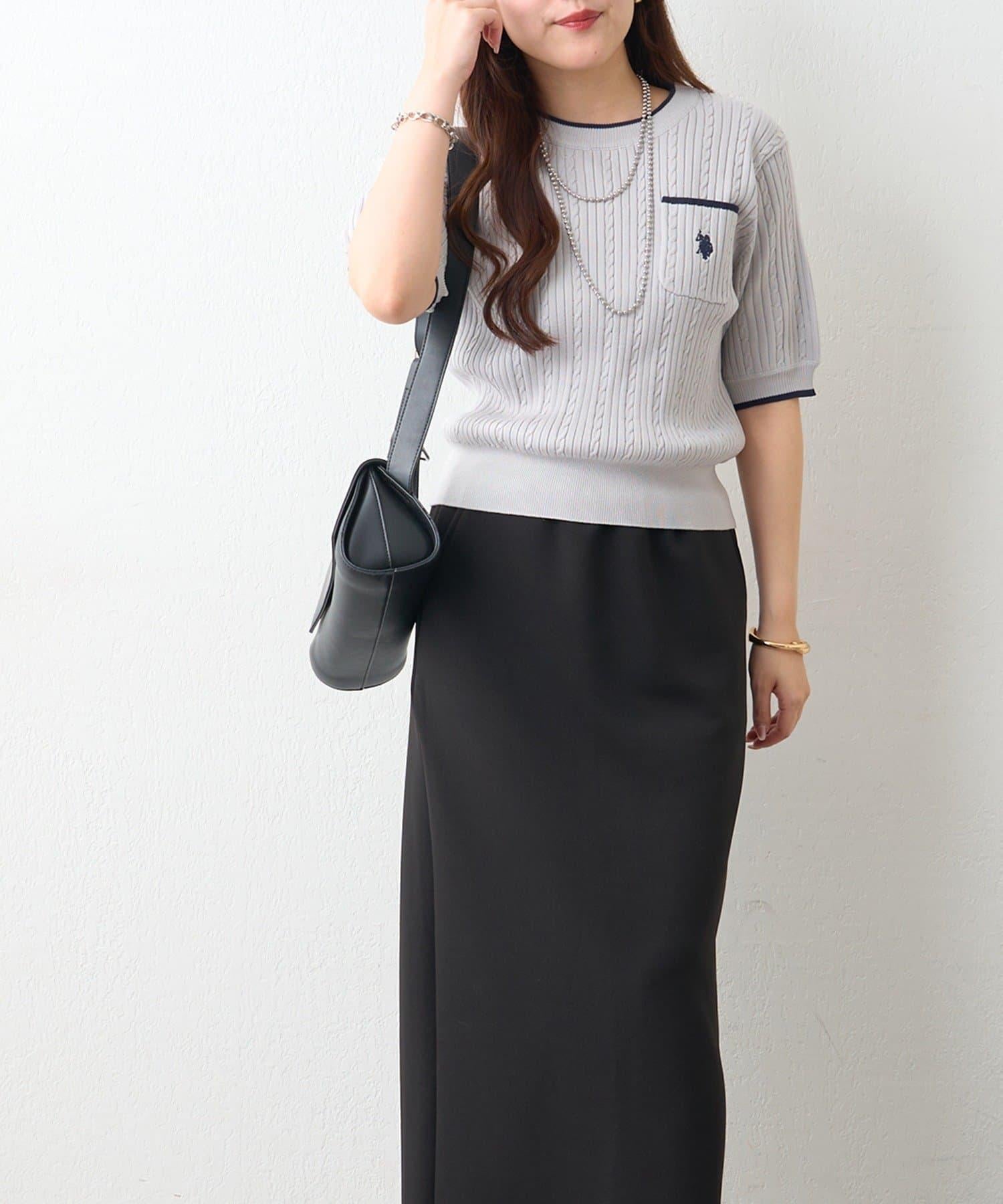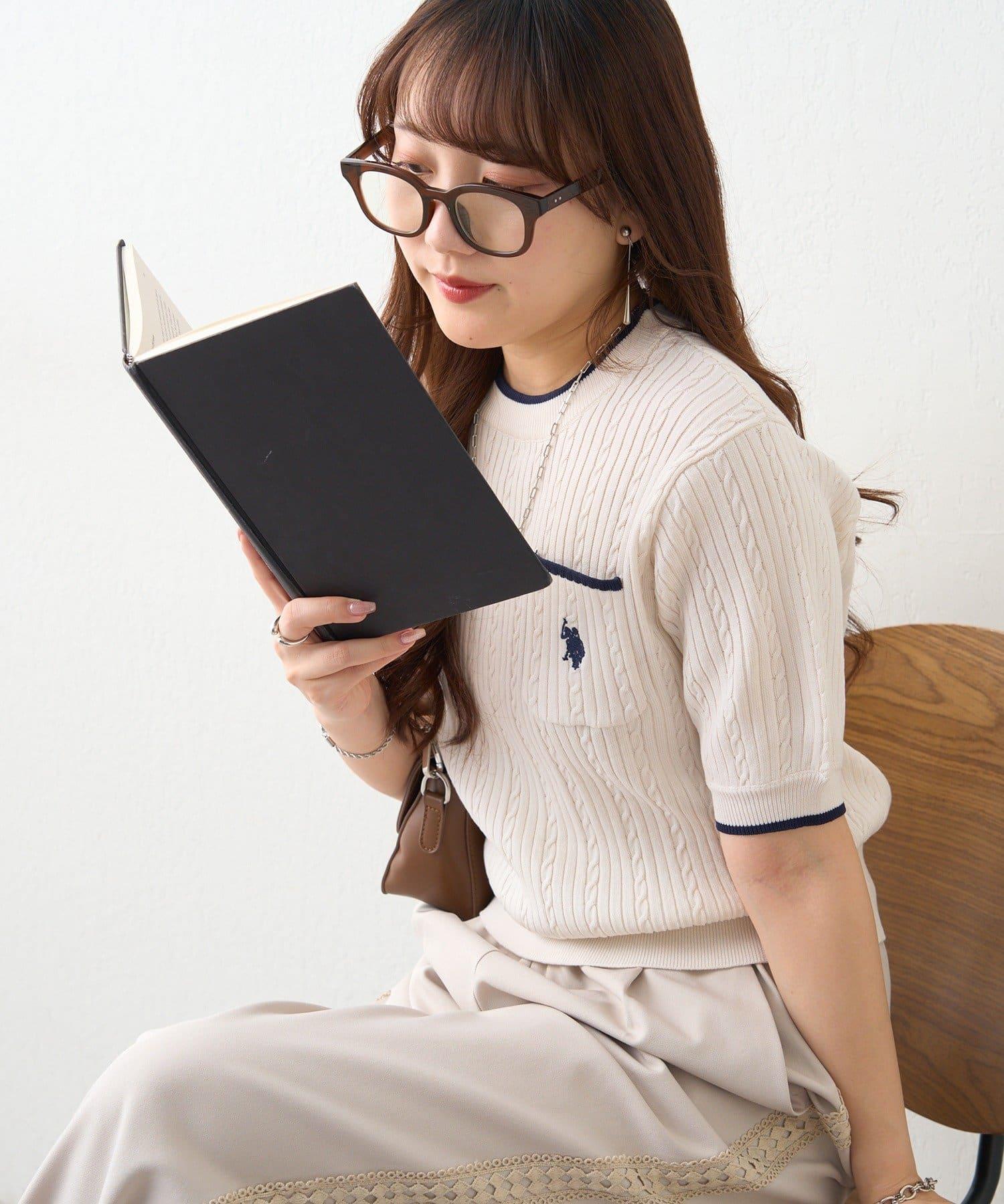U.S.POLOASSN. 麻花紋口袋設計針織套頭衫