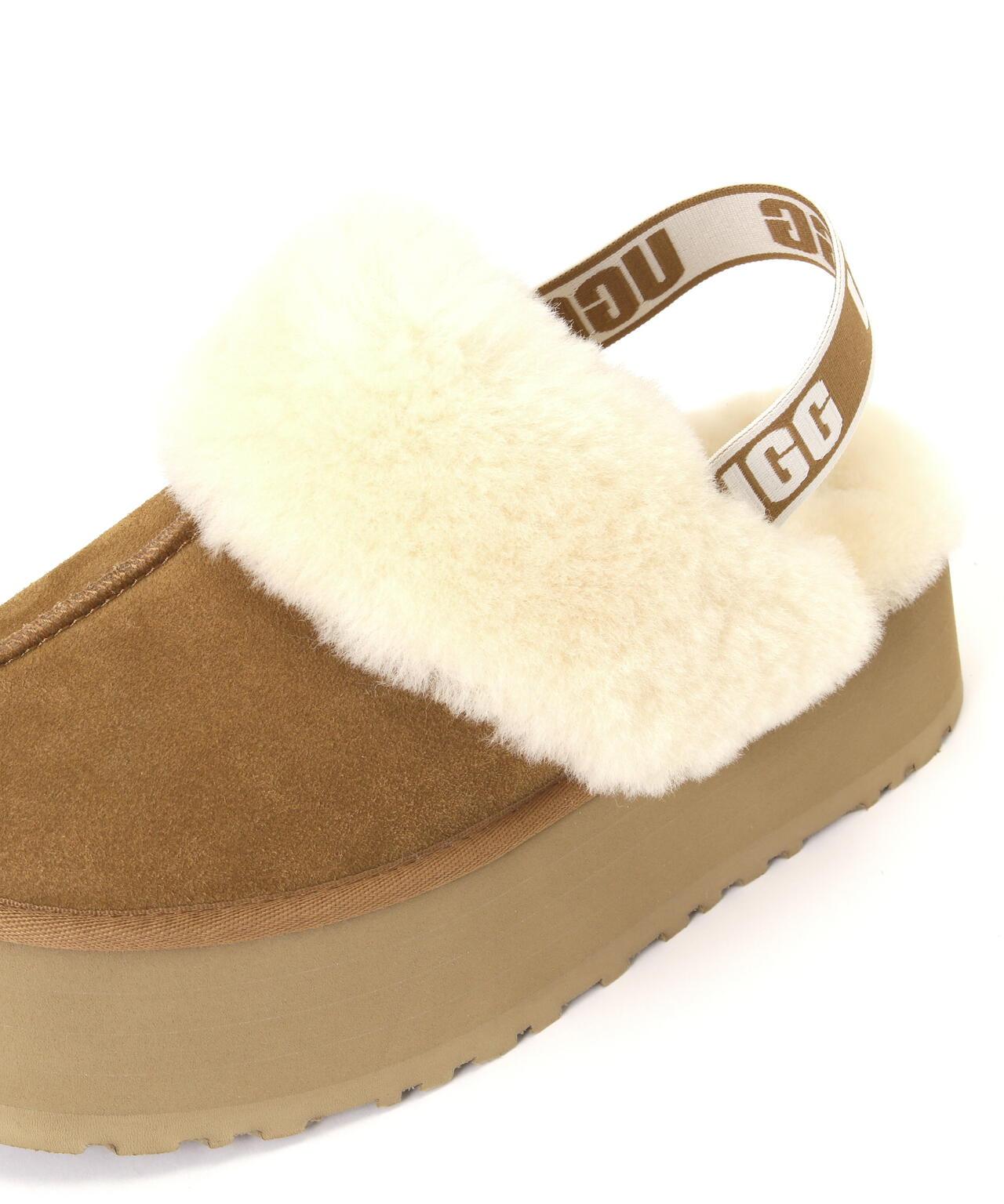 Funkette 涼鞋是 UGG 標誌性拖鞋 Scuffette 的復古升級版,採用多層平臺鞋底。這款涼鞋保留了原有的滑穿輪廓和柔軟的羊皮襯裡,同時增加了 UGG 標誌圖案的揹帶。它能牢牢固定腳部。該產品的外底由快速生長、可再生的甘蔗 EVA 材料或 UGG 的 Treadlite 製成。來自甘蔗的 EVA 是一種負責任的材料,通過使用甘蔗泡沫替代石油衍生的乙烯,有助於減少我們對化石燃料的依賴。[材質] - 鞋面:麂皮絨,麂皮絨,麂皮絨,麂皮絨,麂皮絨,麂皮絨,麂皮絨,麂皮絨,麂皮絨,麂皮絨,麂皮絨。