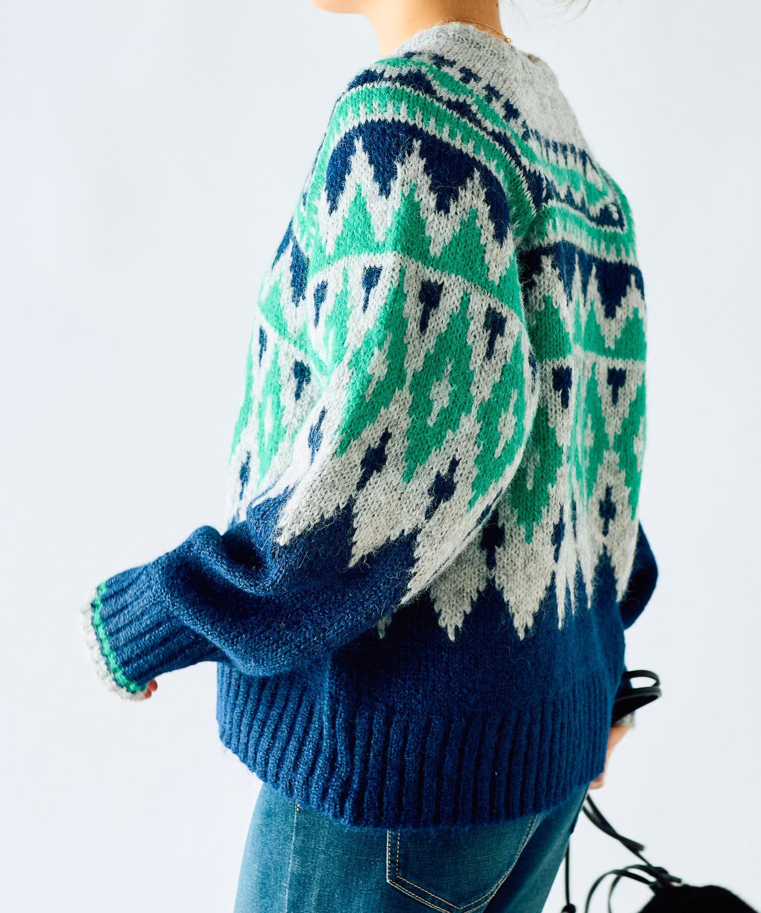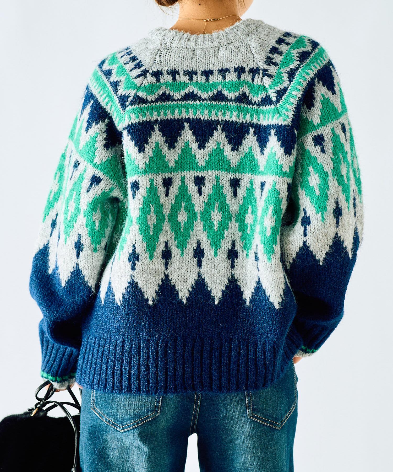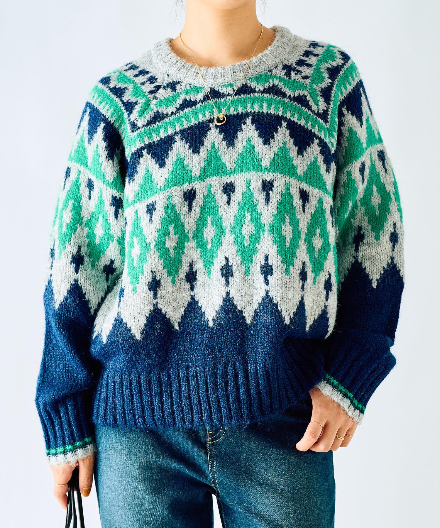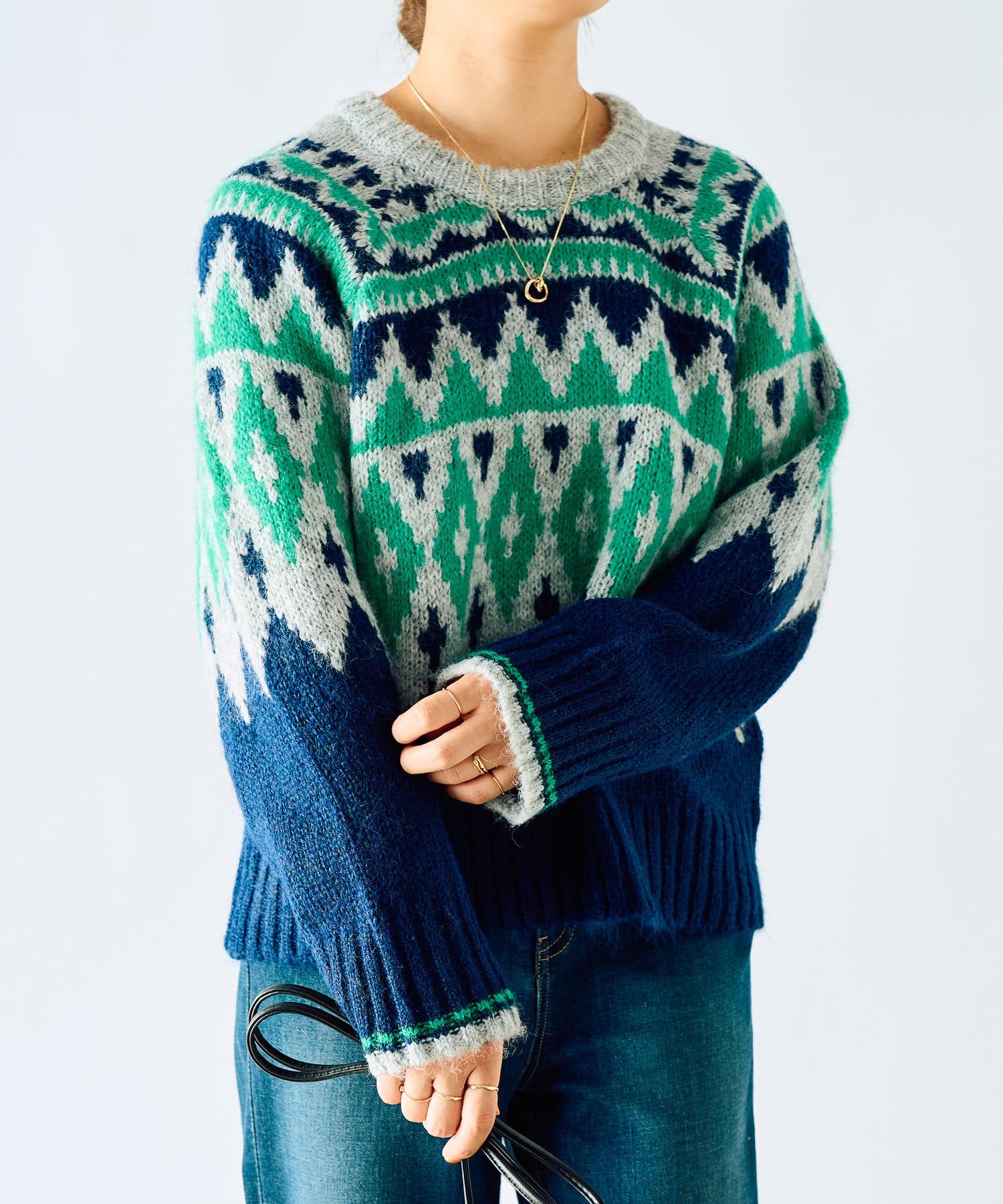 -即使作為大衣內搭也很好看的向心圖案針織衫。
