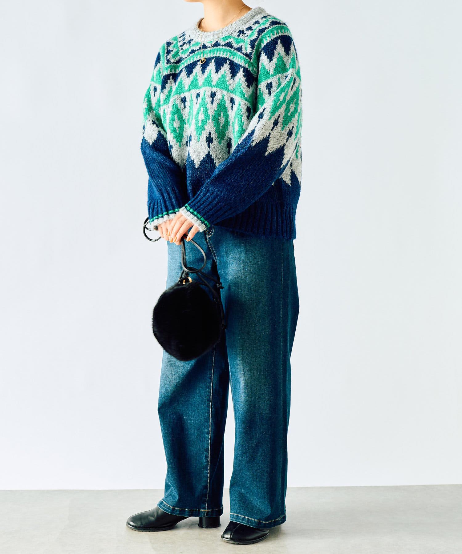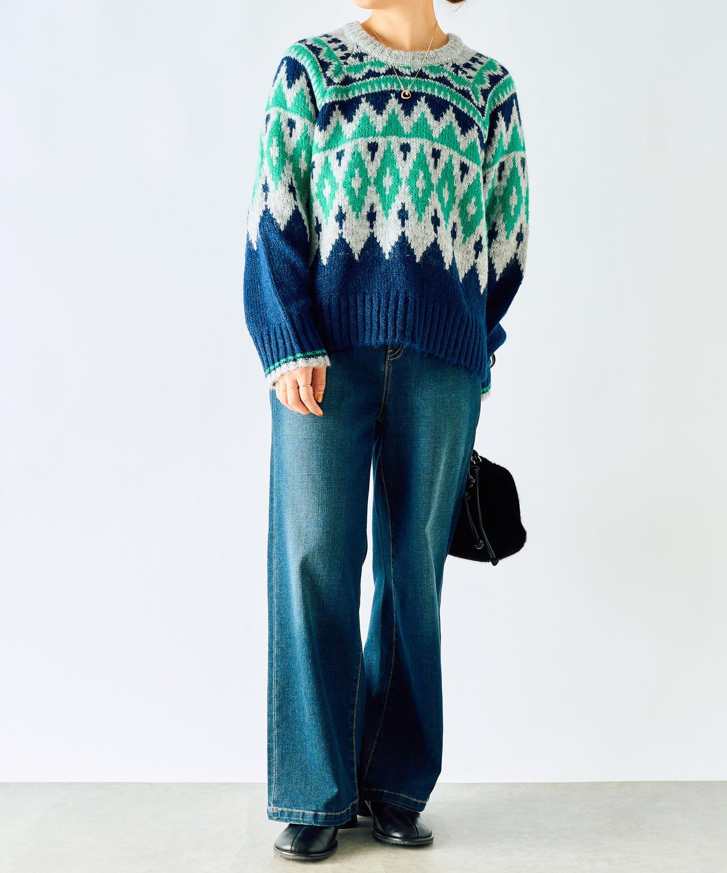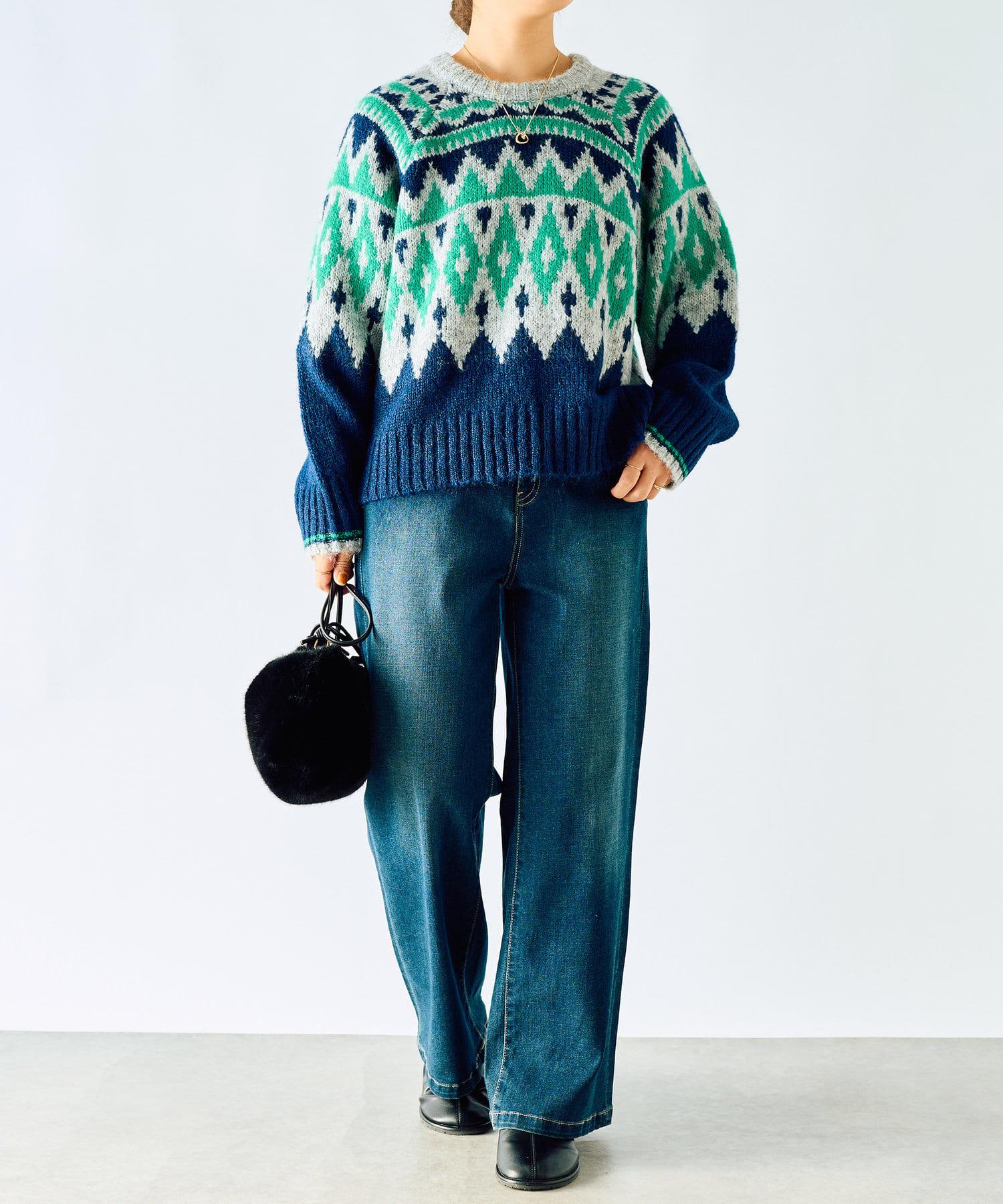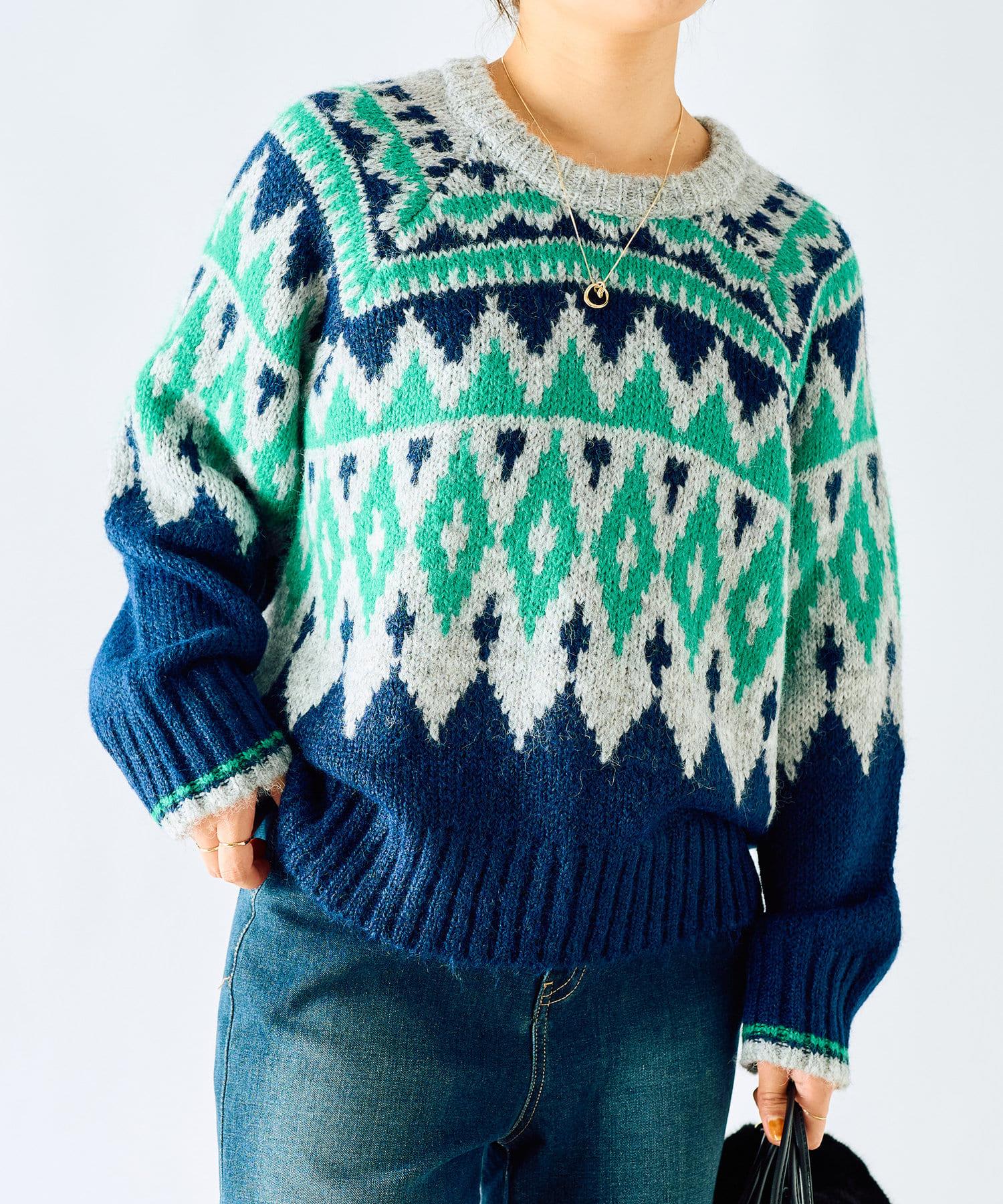 -即使作為大衣內搭也很好看的向心圖案針織衫。