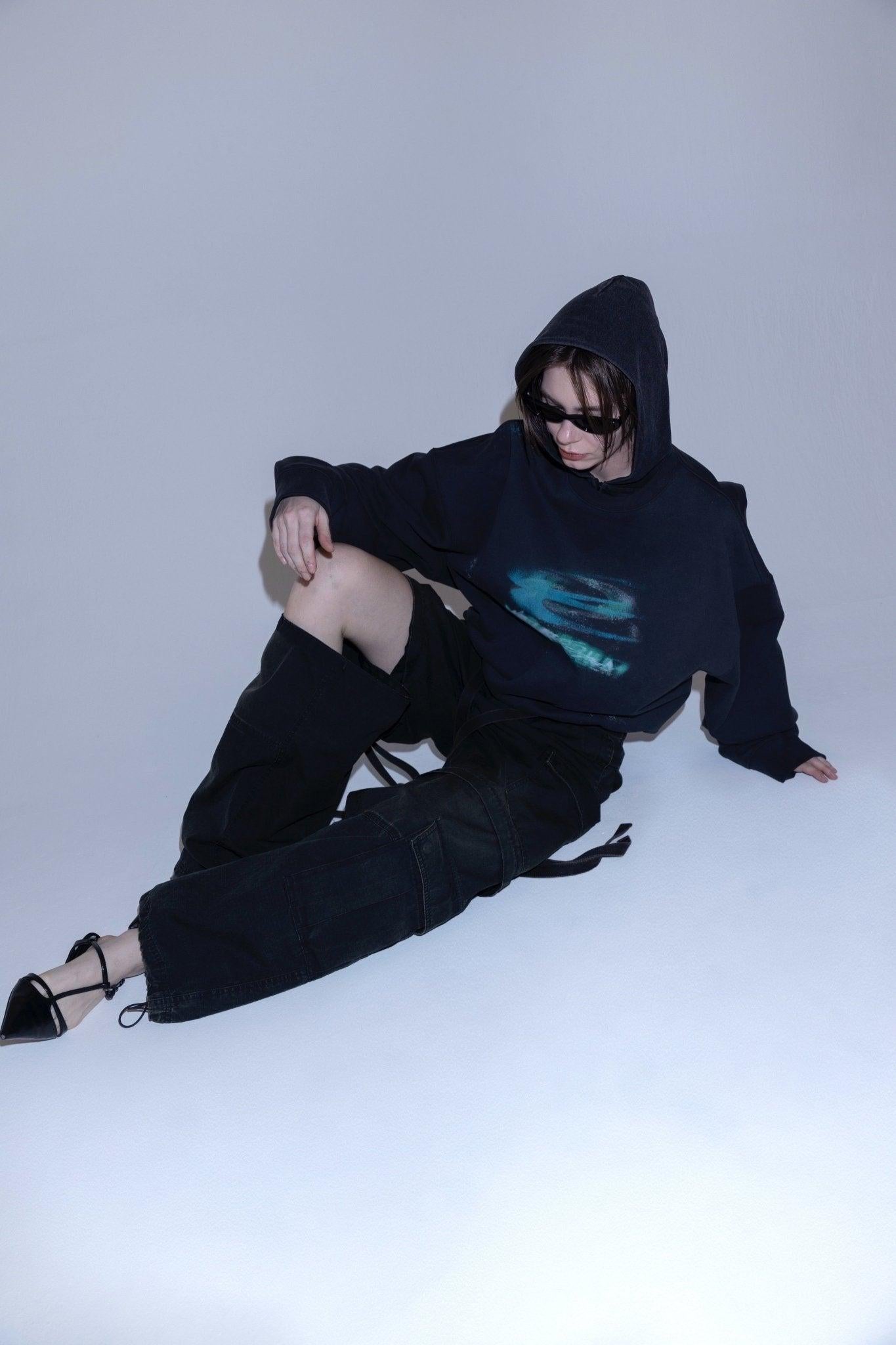 側面和腰部的繫帶隨動作搖擺,更添造型感。