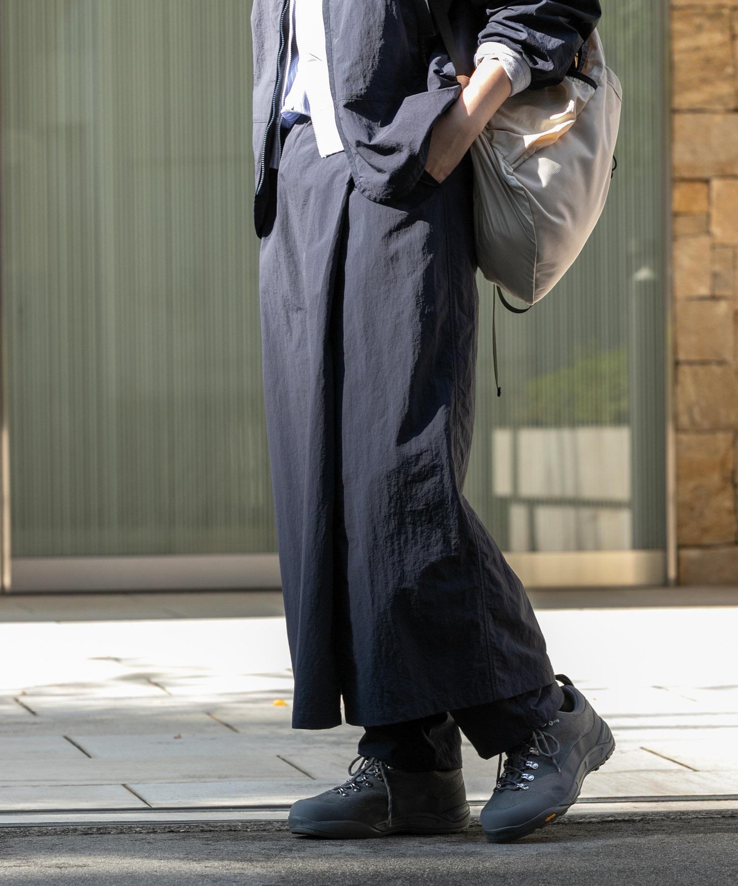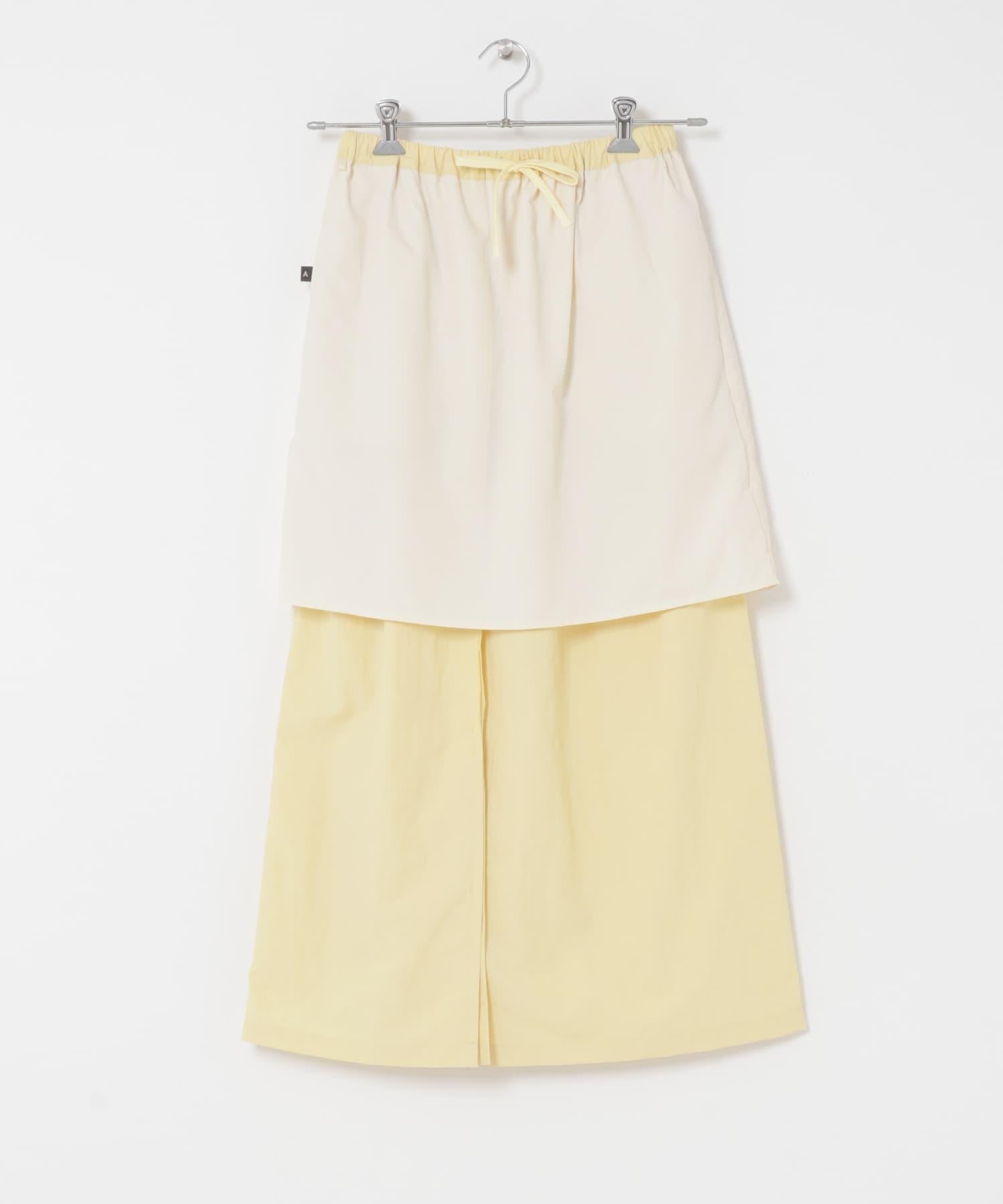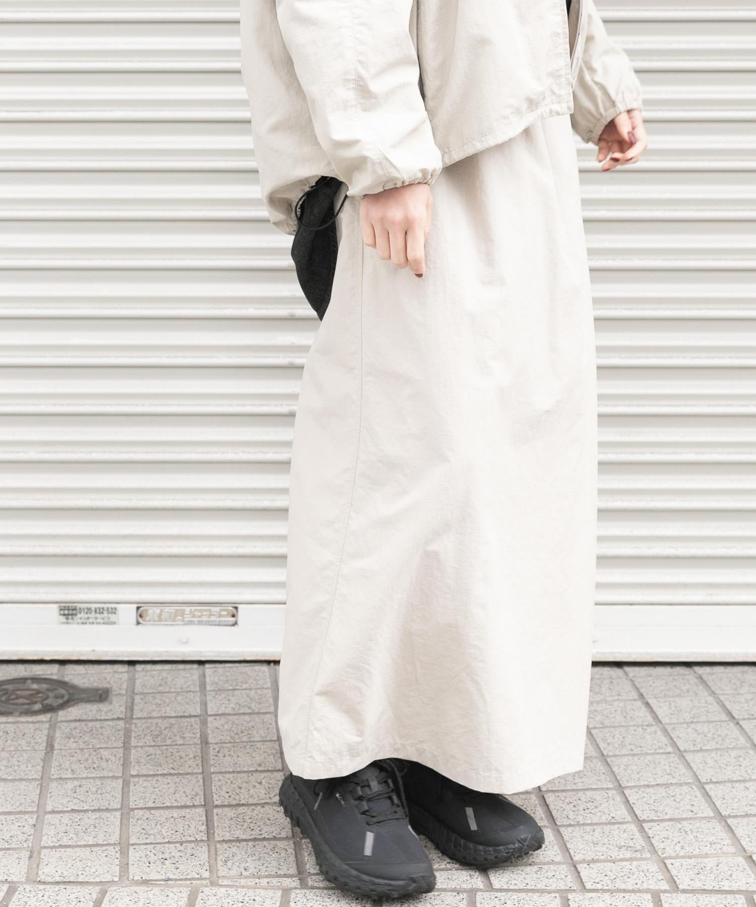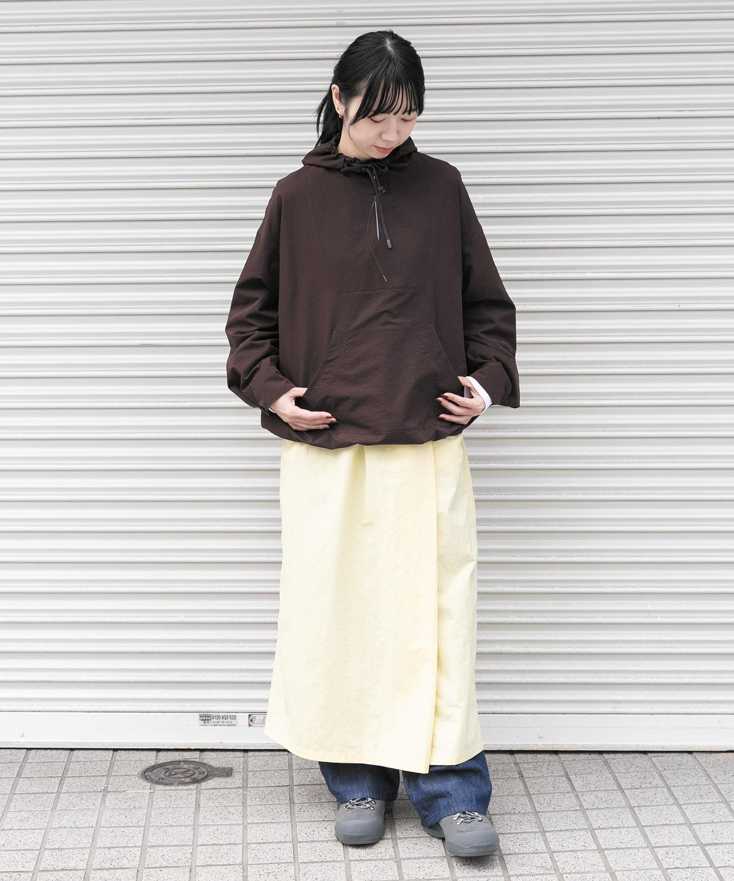 這款採用褶襉設計的裹身裙由尼龍 Tussah 製成,具有防水和防紫外線功能,乾爽的觸感帶來涼爽清爽的感覺。腰部可通過抽繩規格調節大小,褶襉後部有開衩,方便活動,口袋袋面料採用網眼戶外規格,是一款不僅可用於海濱活動場景,也可用於日常的簡約desa。這款簡單的 desa゙in 不僅可用於水邊活動場景,也可用於日常使用。此外,還建議與長褲或緊身褲搭配使用。