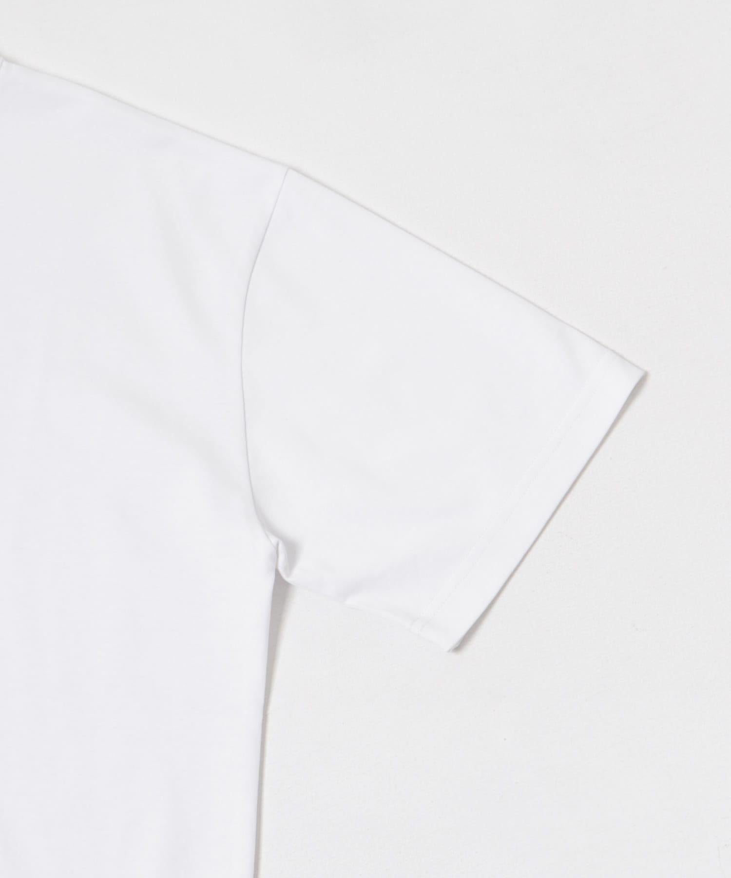 這是一款採用功能性面料製成的白色基本款 T 恤,既適合疊穿,也適合單穿。
