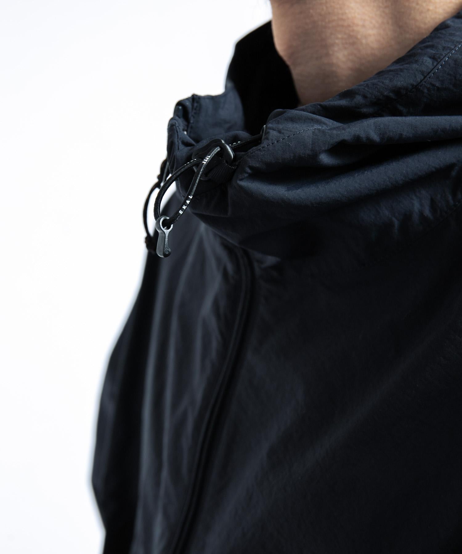 兜帽周圍和左右兩側下襬使用了帶有 EKAL 標誌的鬆緊紡錘,可以改變輪廓和調整合身度。