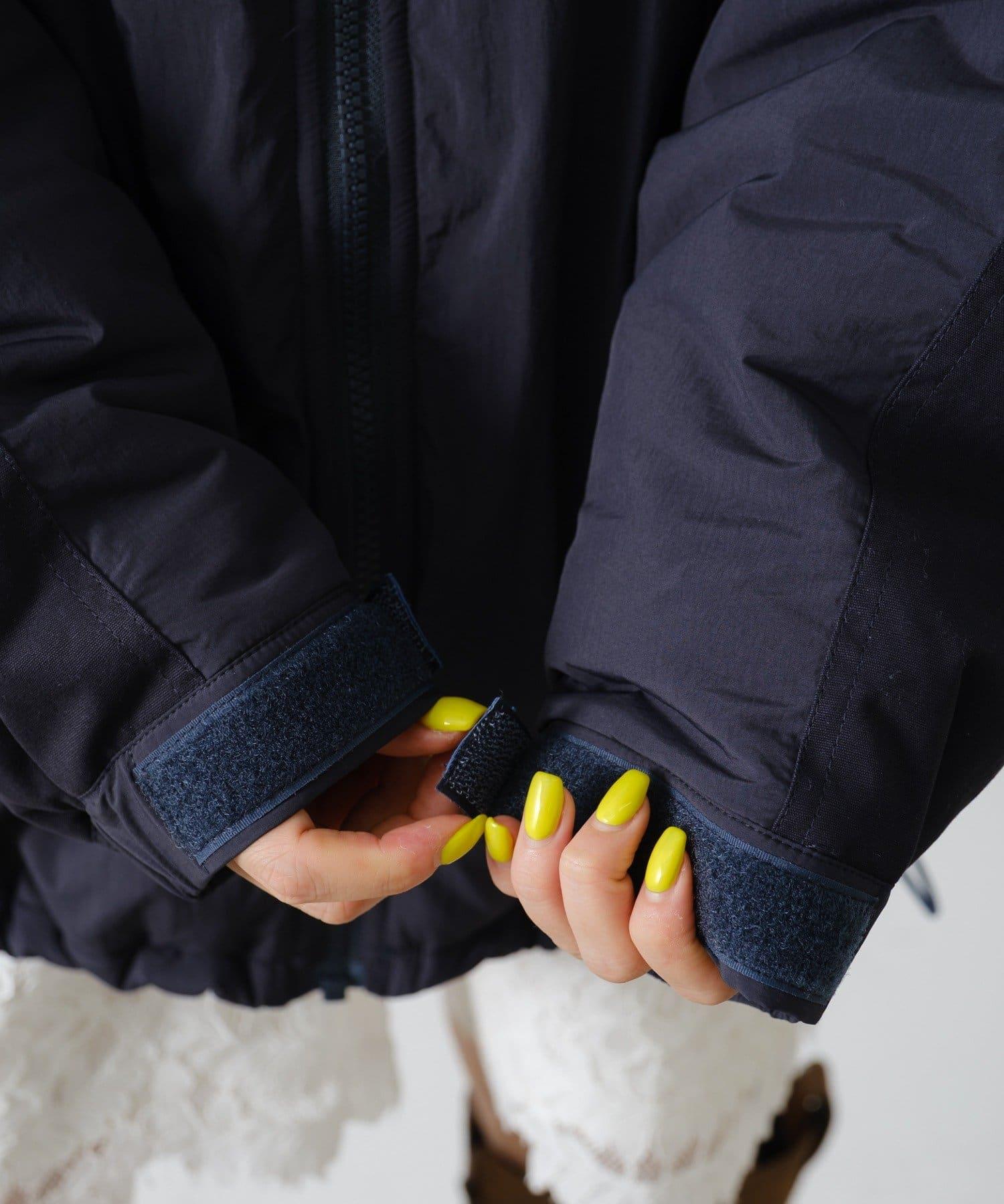風帽可通過領口處的尼龍搭扣收起,營造不同的氛圍。