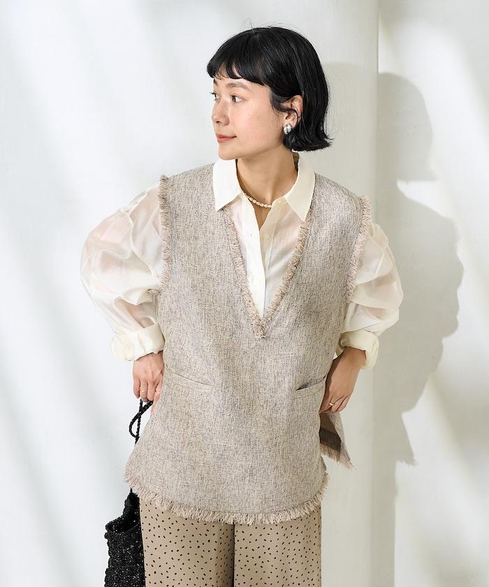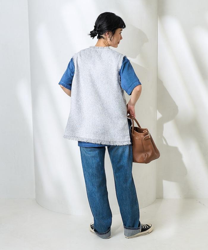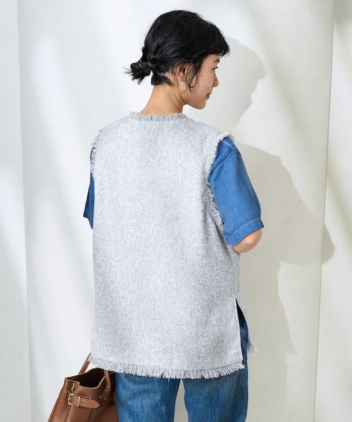 一款充滿春夏清新氣息的斜紋軟呢馬甲。