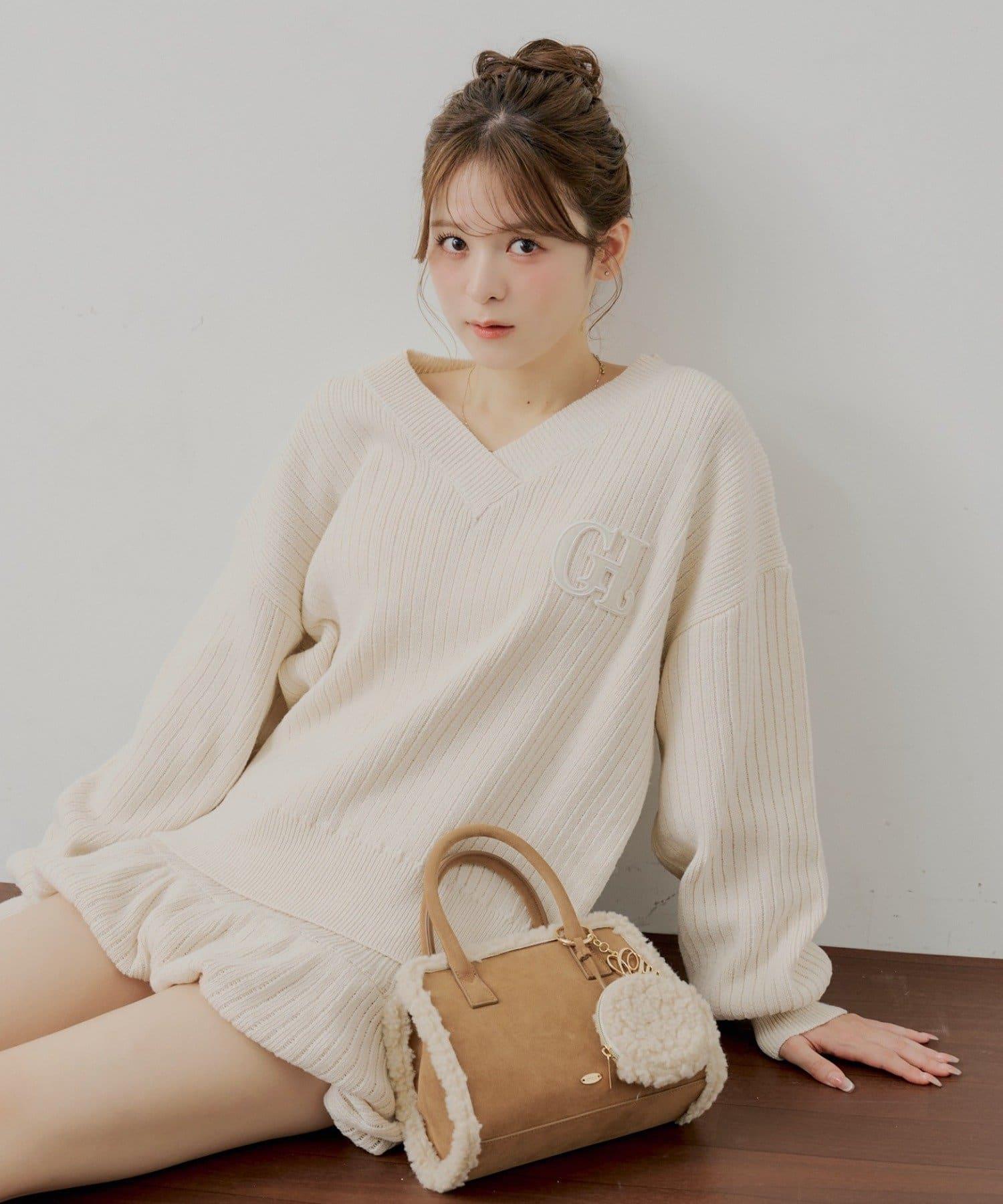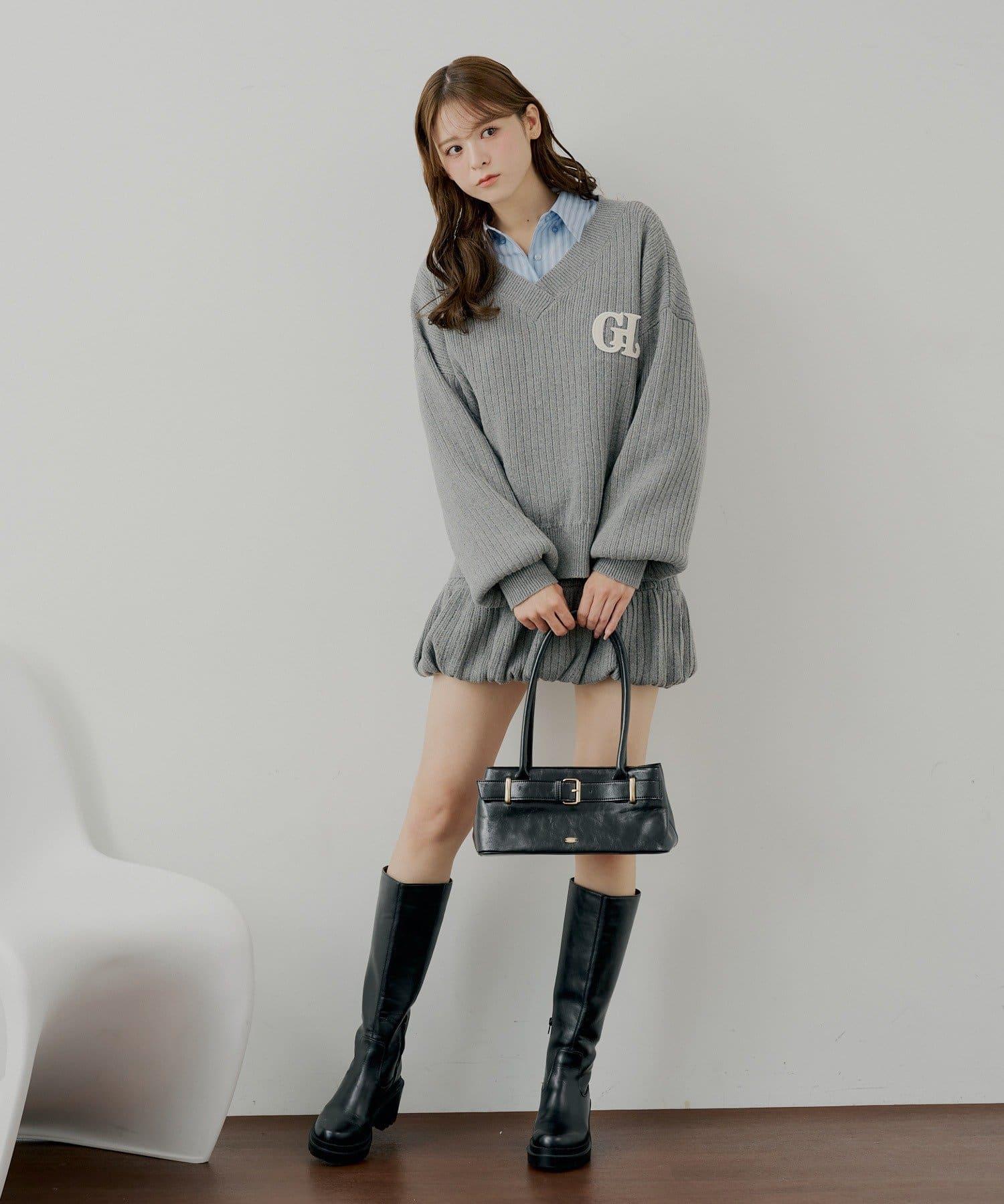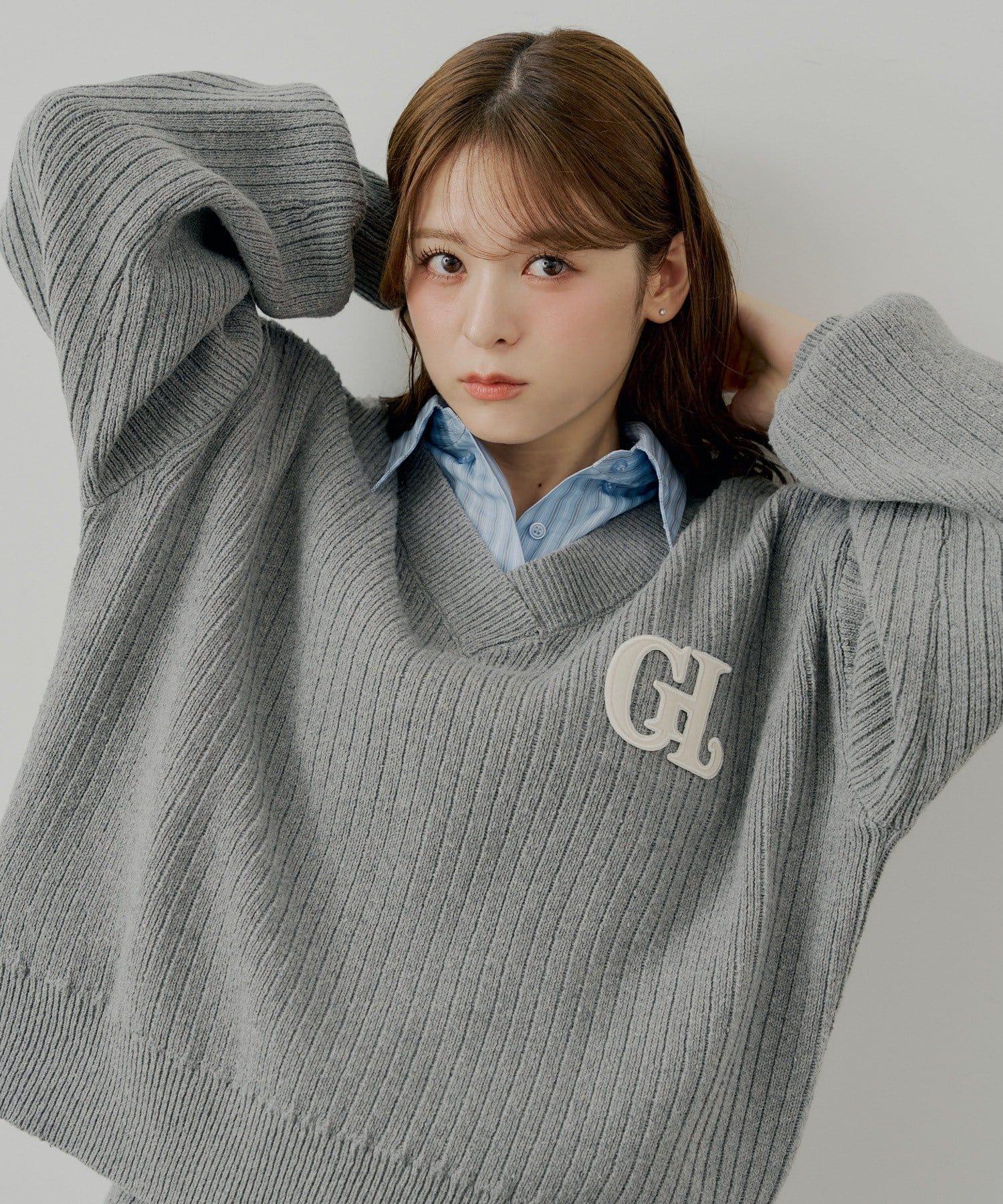 V 領設計使領口看起來更加簡潔,儘管廓形寬鬆,但仍是一款均衡的針織衫。