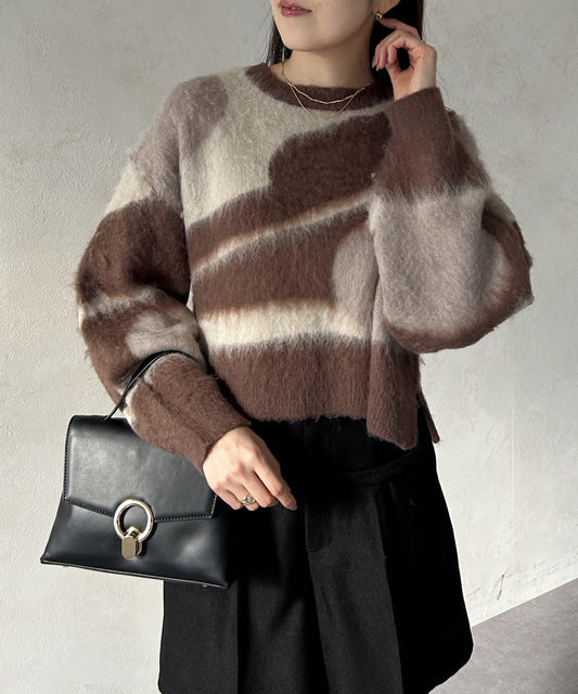 可愛的毛呢針織衫,結合蓬鬆質感和前衛的深 V 領設計。
