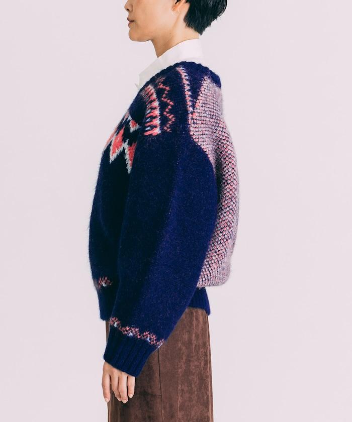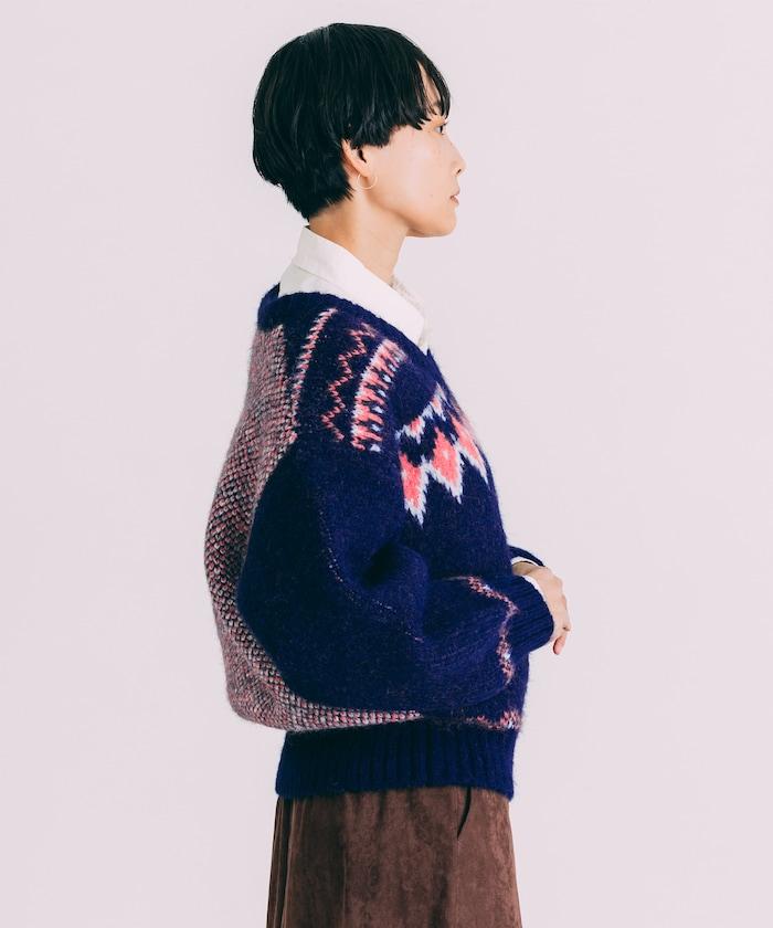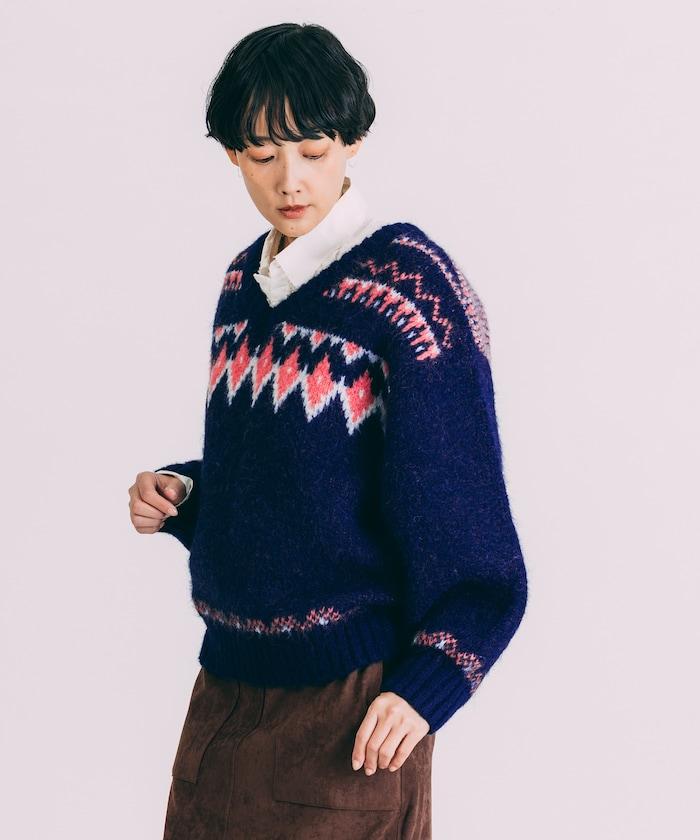 這款針織衫具有極高的設計品質,胸前和袖口有北歐圖案,背後有鳥眼圖案。
