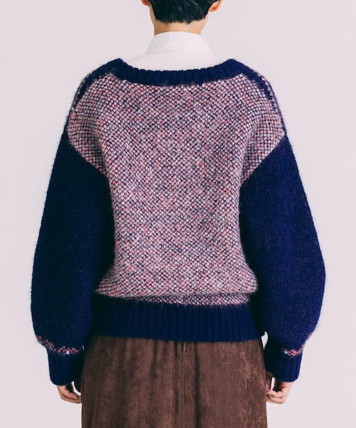 由於紗線的毛羽,圖案不會太明顯,穿起來整體感覺柔和。