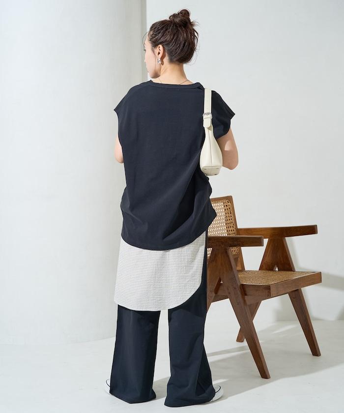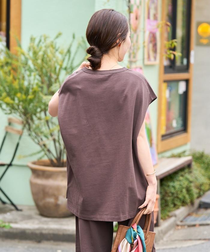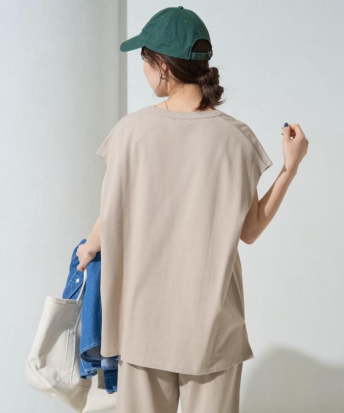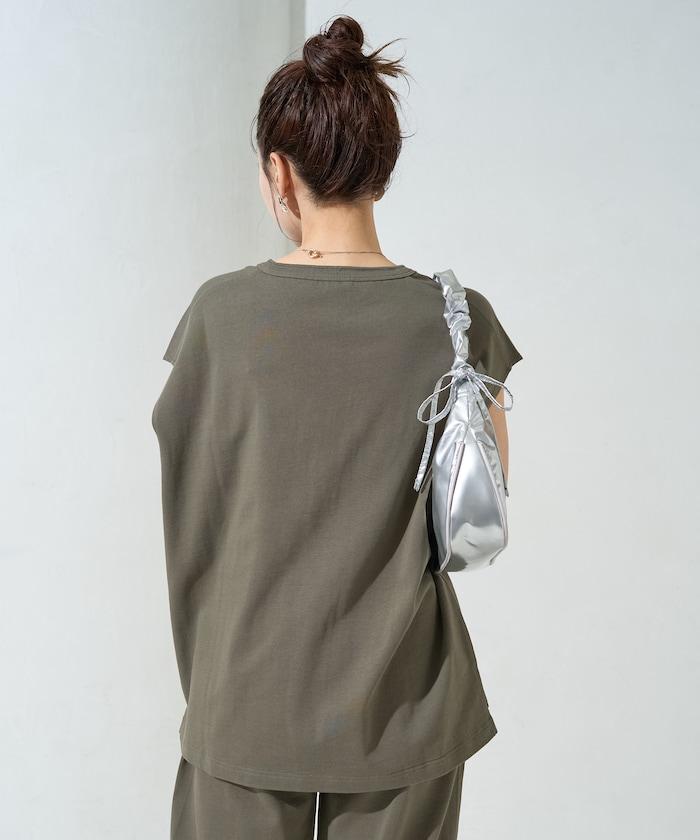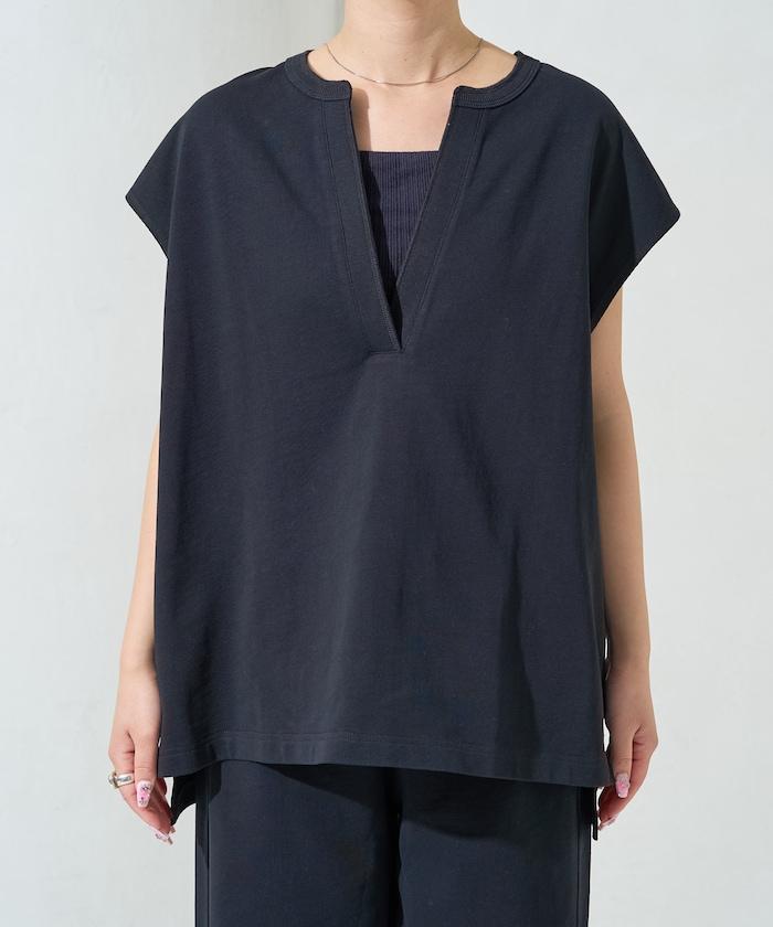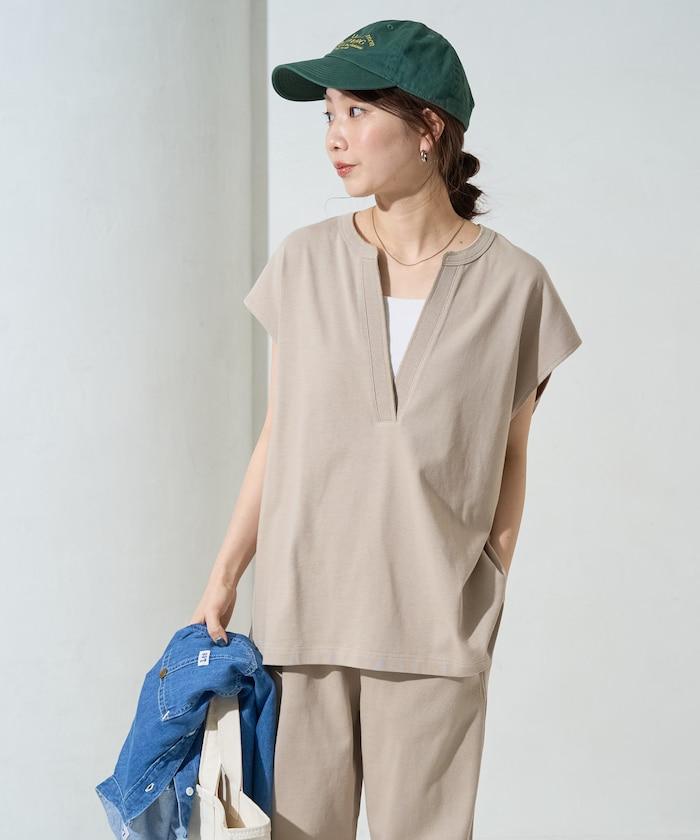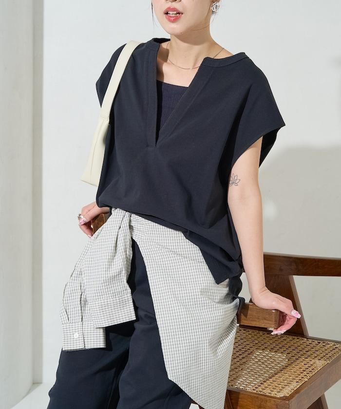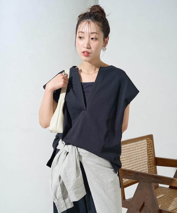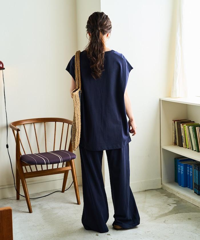 V領法式短袖褲裝套裝(T恤衫·休閒褲)