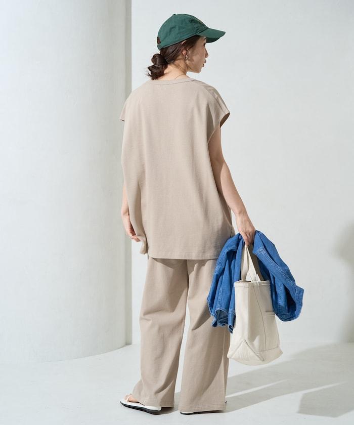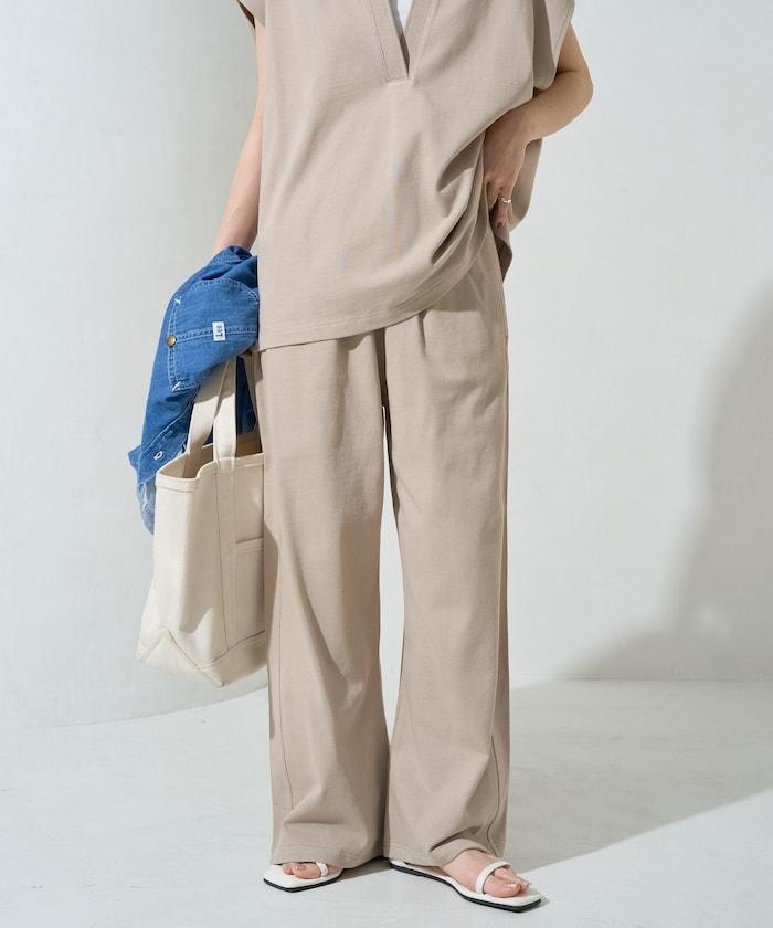 簡易的褲子配有鬆緊腰帶,給人輕鬆的感覺,也非常百搭。