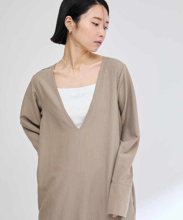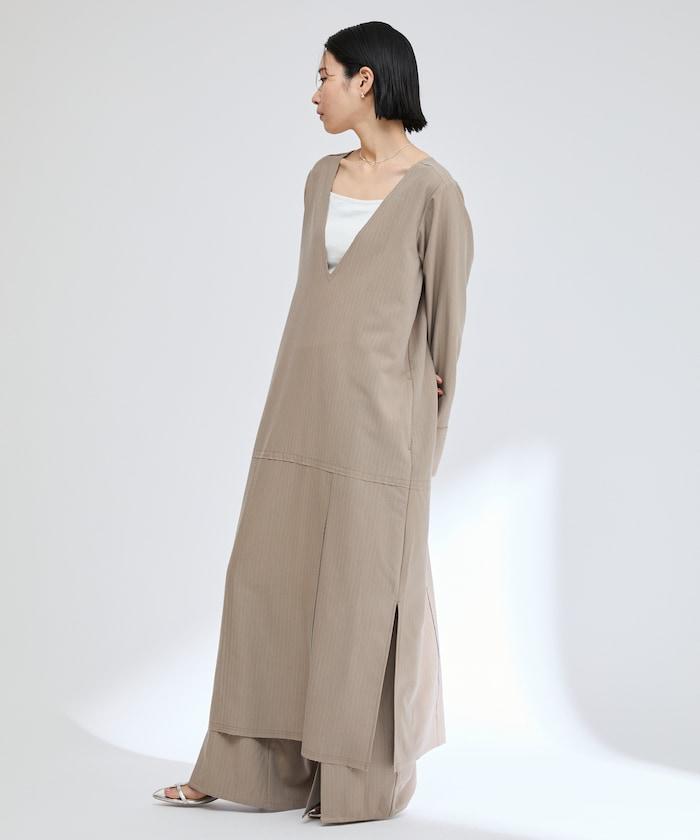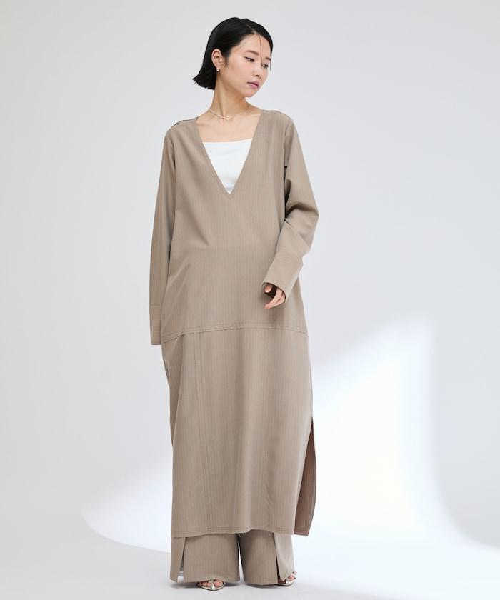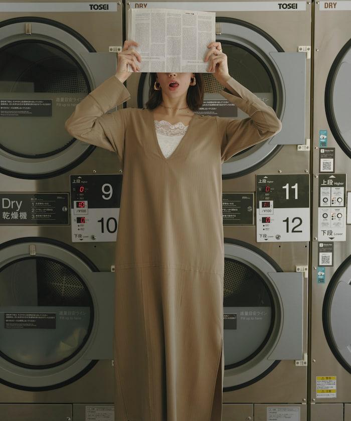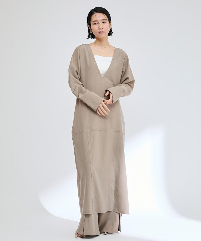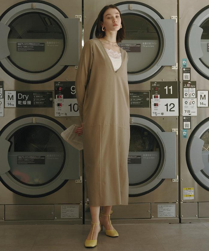 V 領連衣裙,採用 TR 面料,穿著滋潤舒適。
