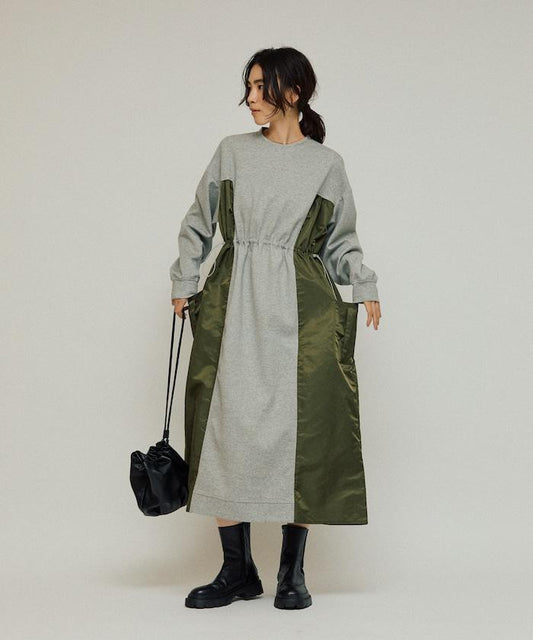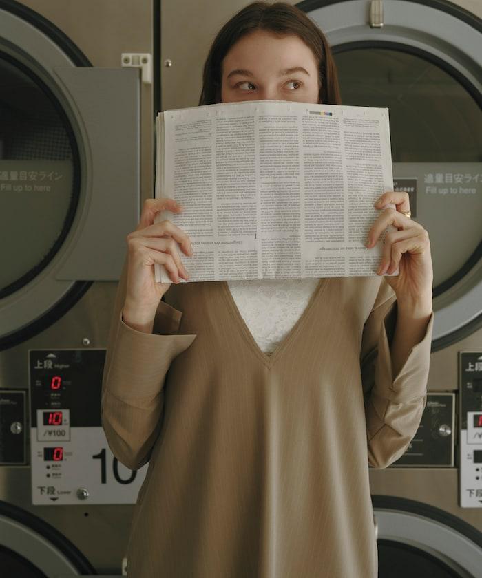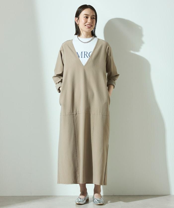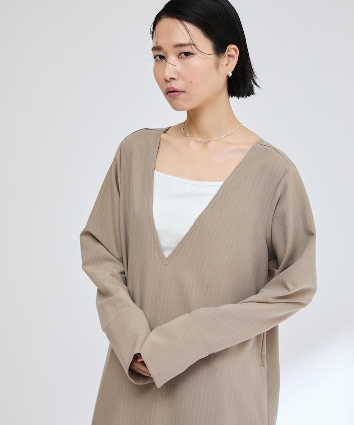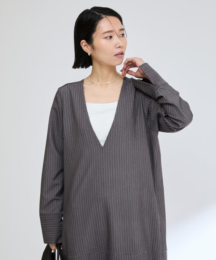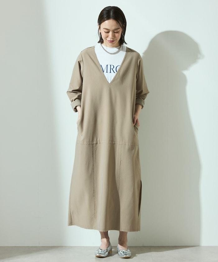V 領連衣裙,採用 TR 面料,穿著滋潤舒適。