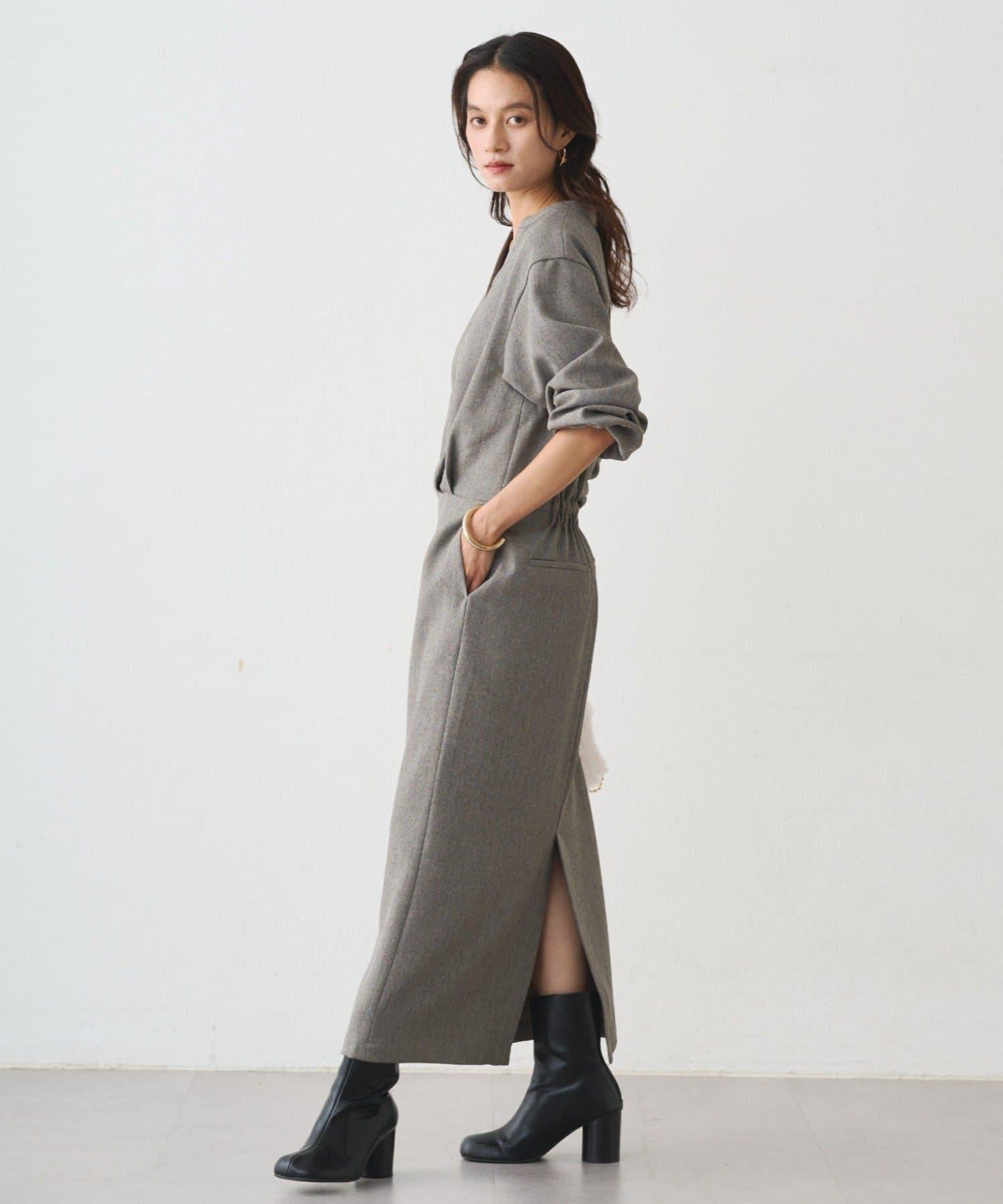 I 字裙襬和後背的鬆緊腰帶讓人看起來更加纖細。