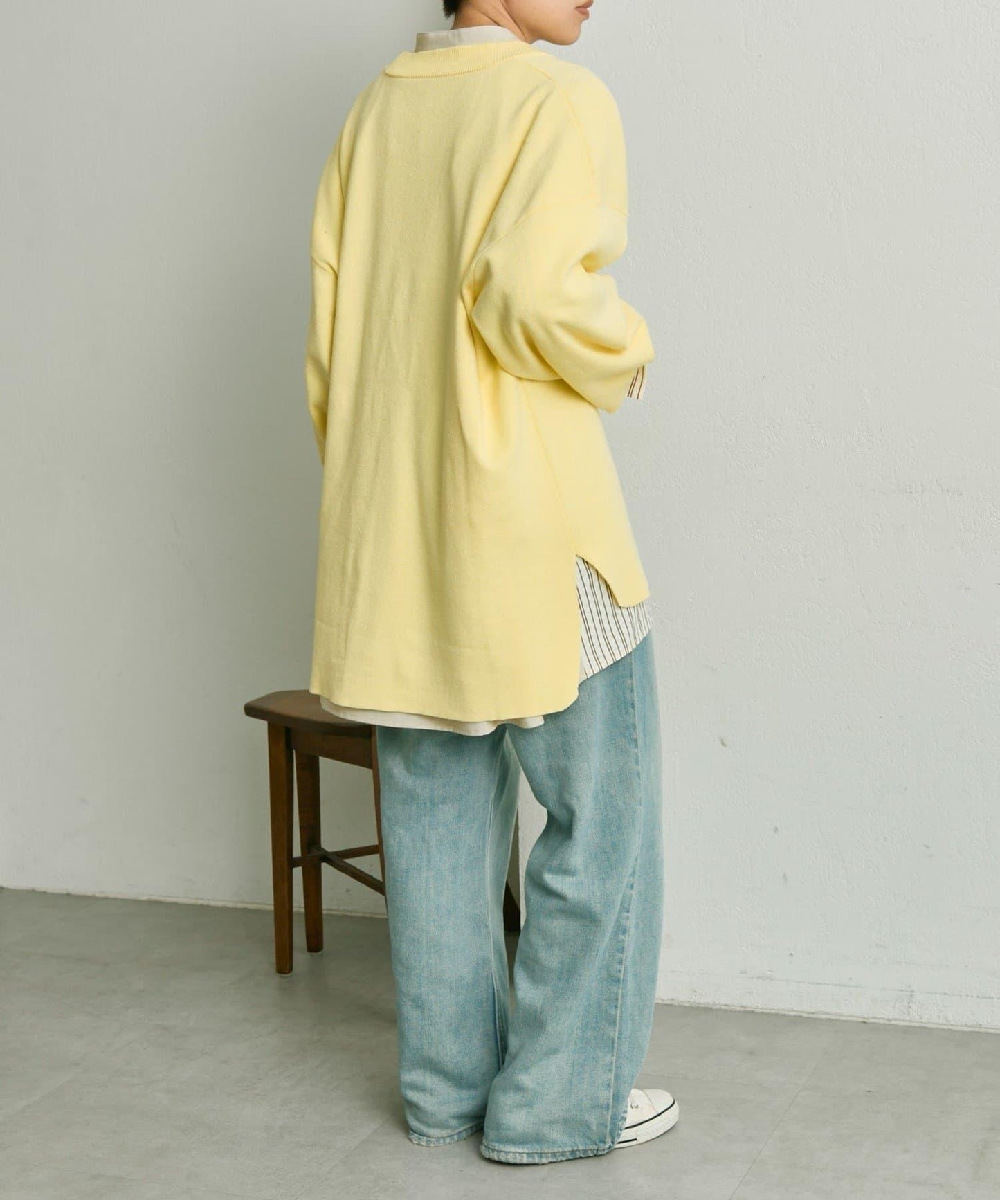 前後不同的衣身長度便於收攏,增添寬鬆感。