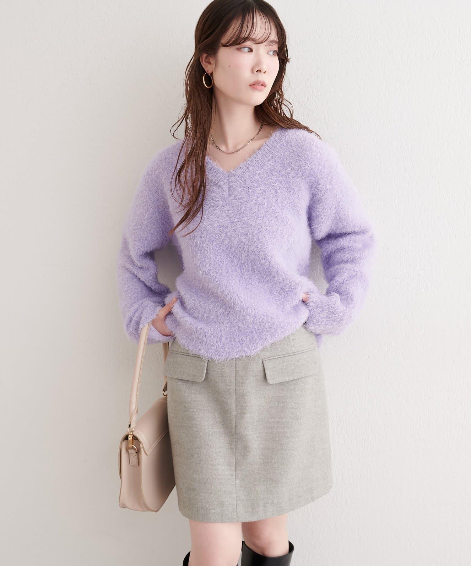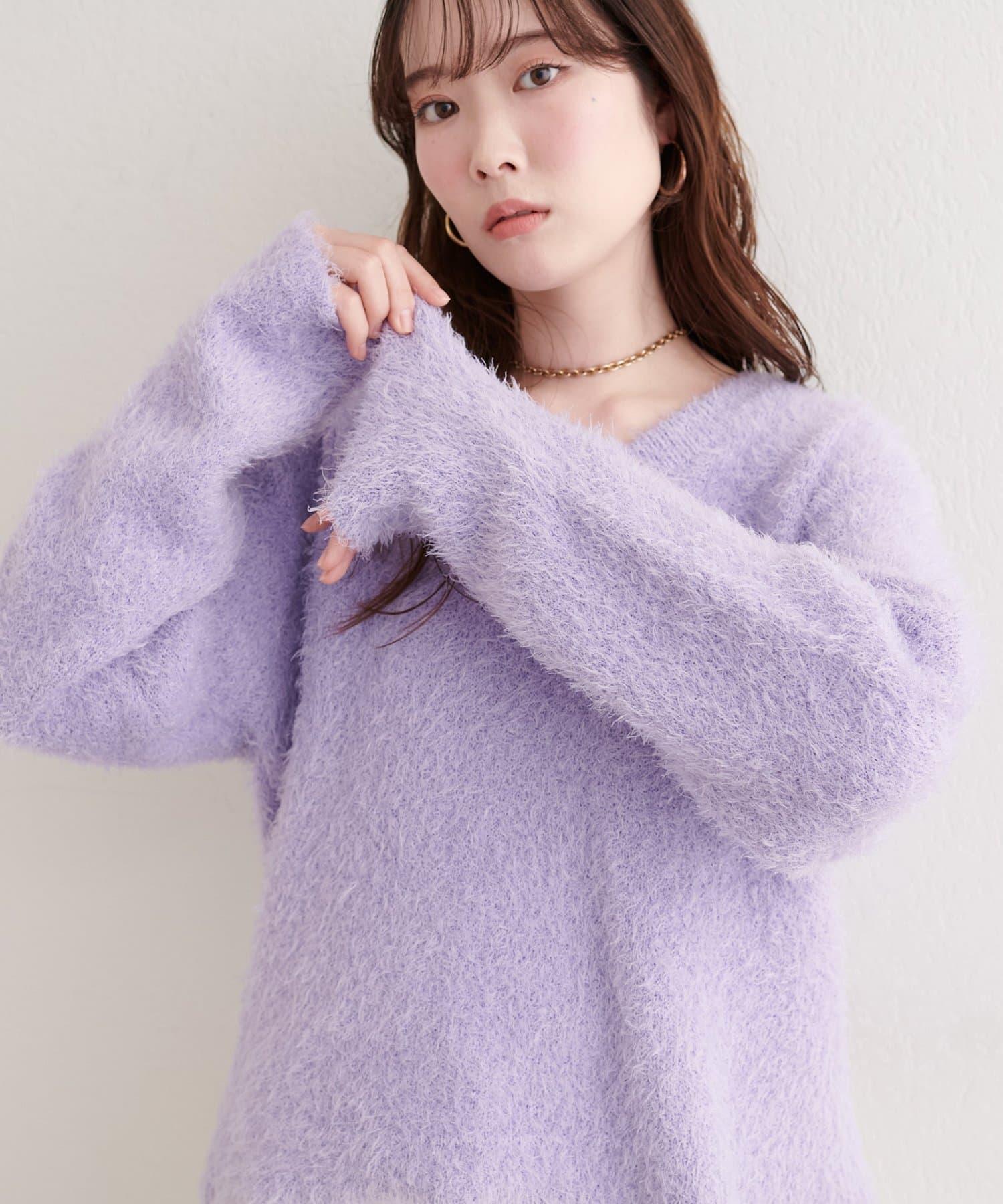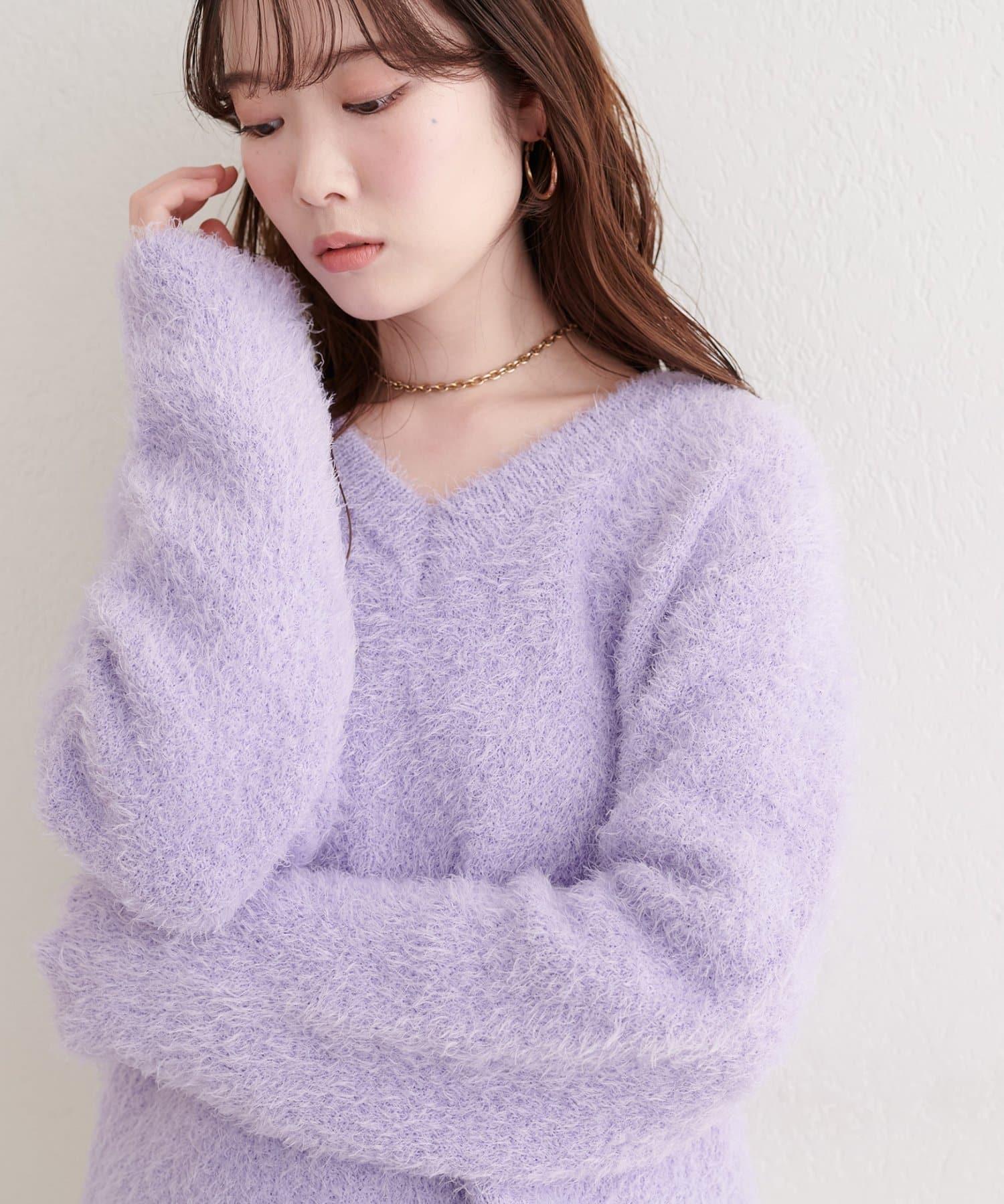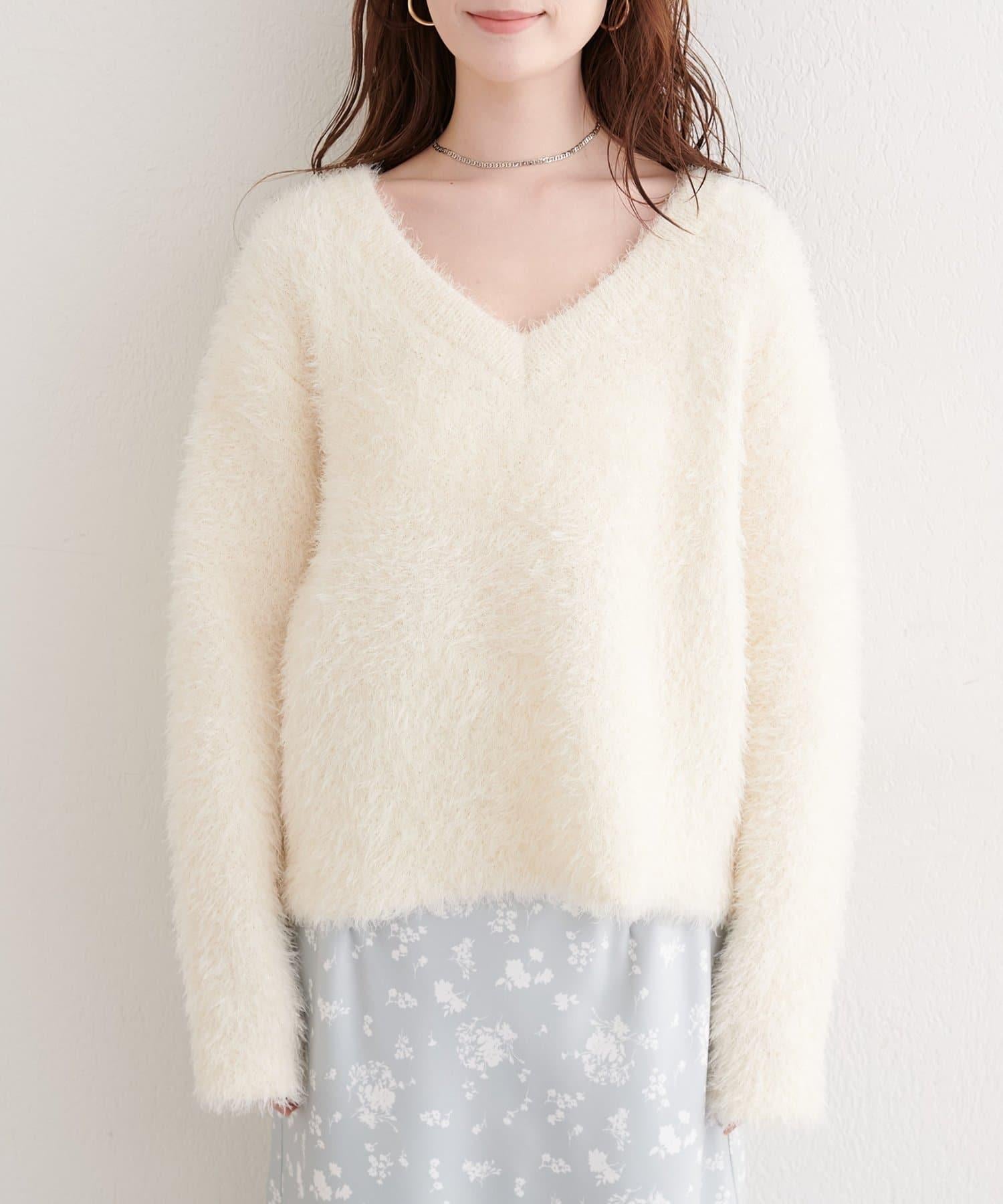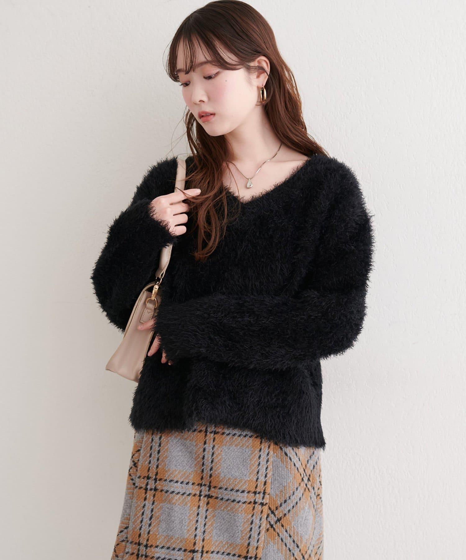V領長毛針織套頭衫
