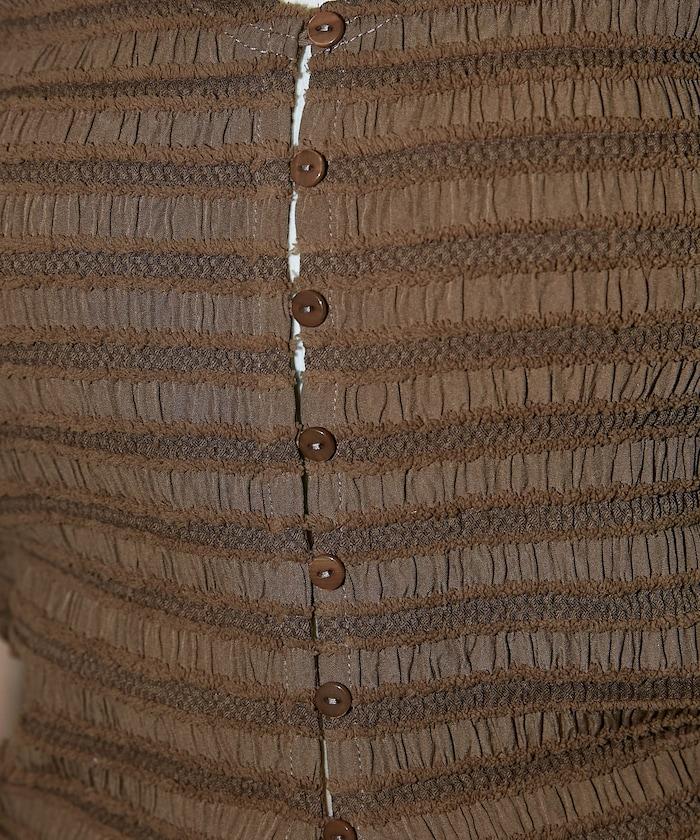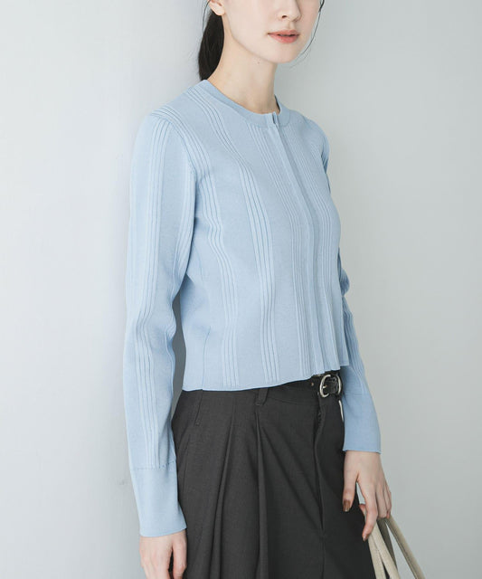 廓形緊湊的開襟羊毛衫,採用富有表現力的短邊面料。