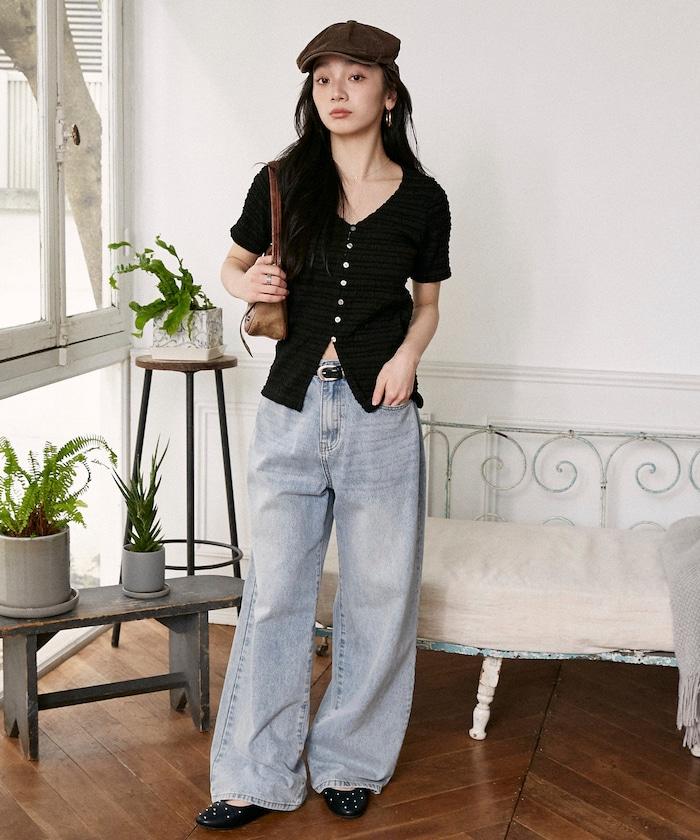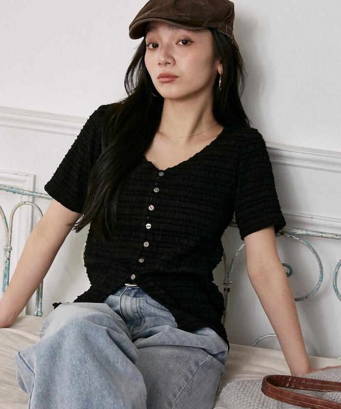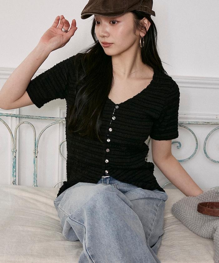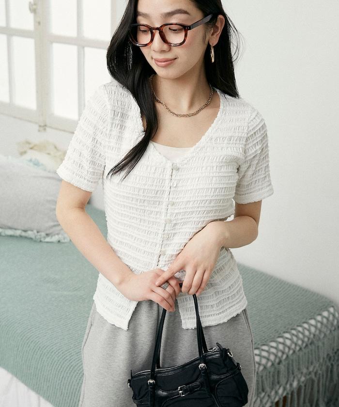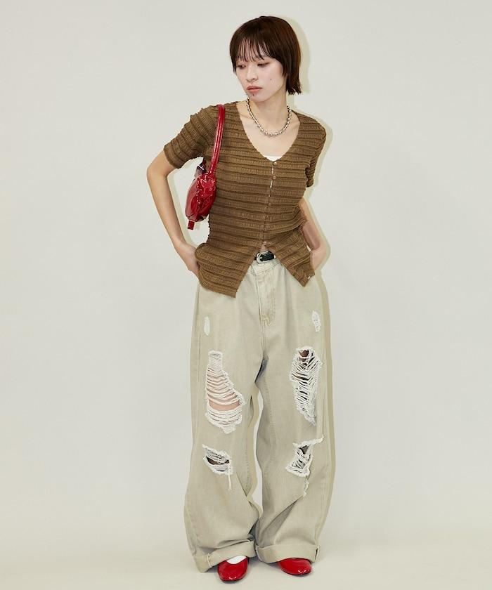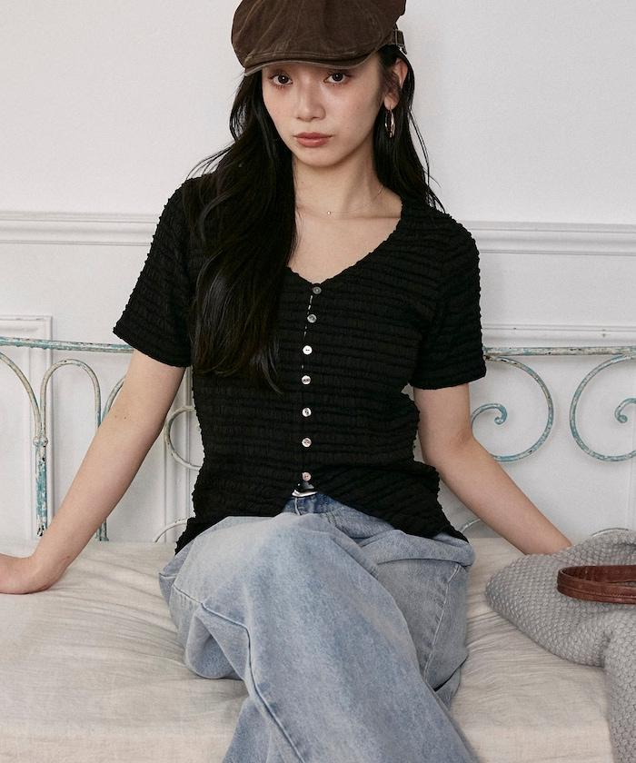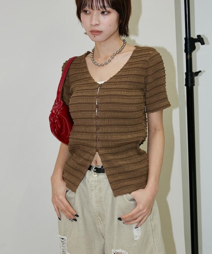 V領 半袖 針織開衫