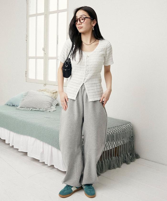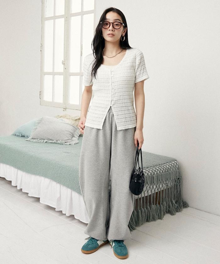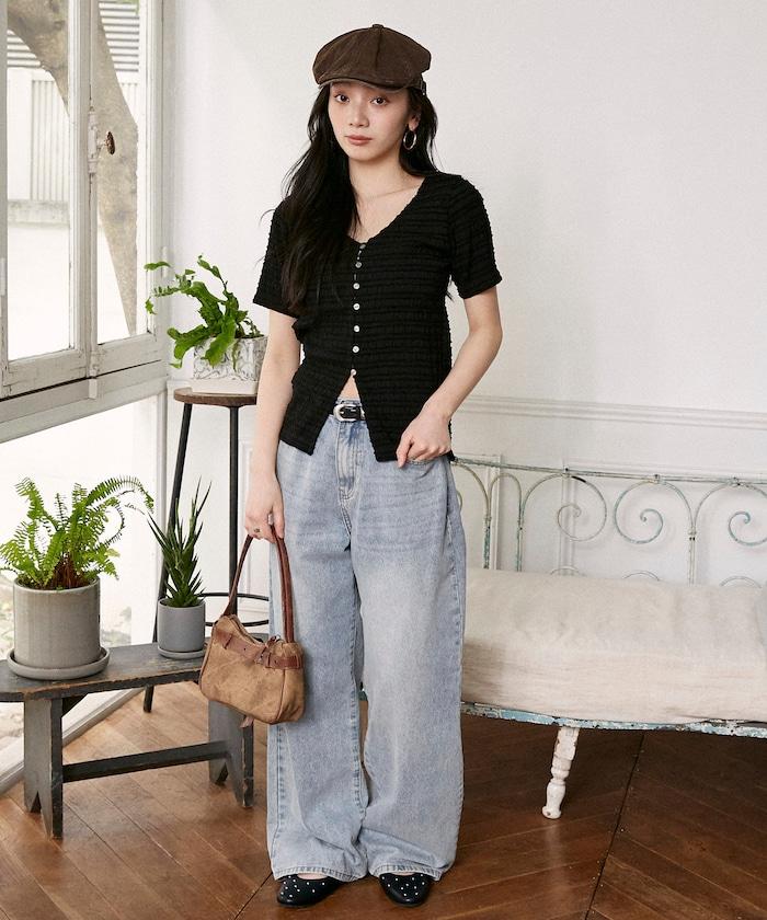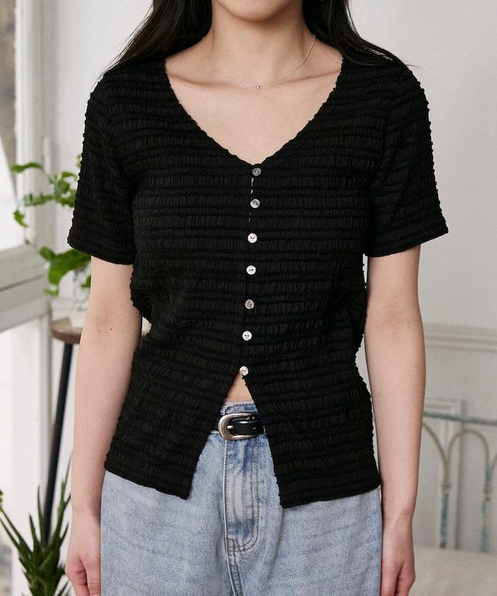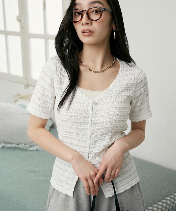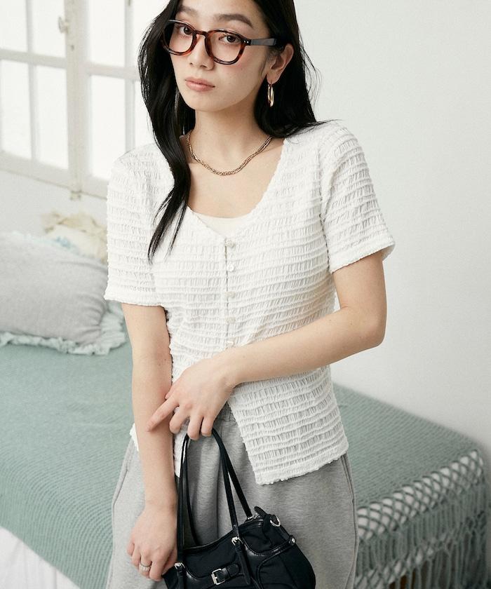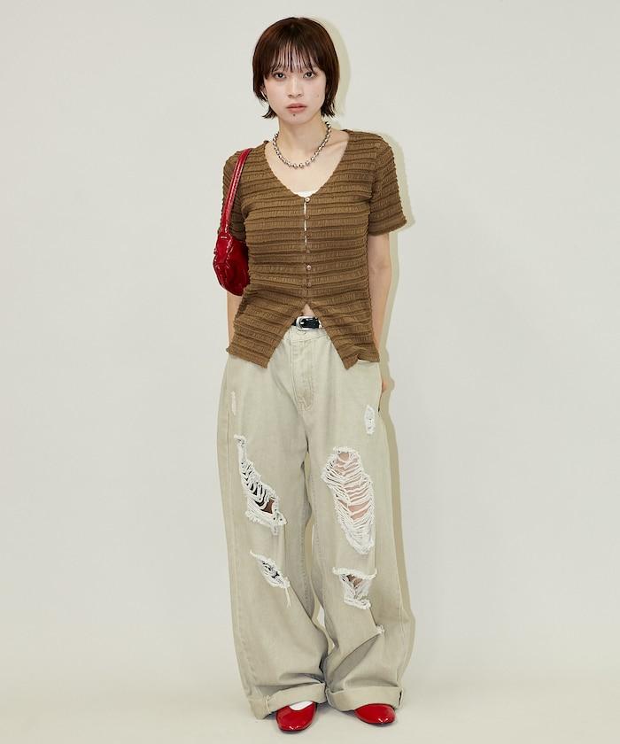 V領 半袖 針織開衫