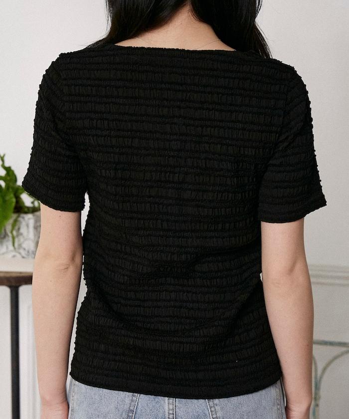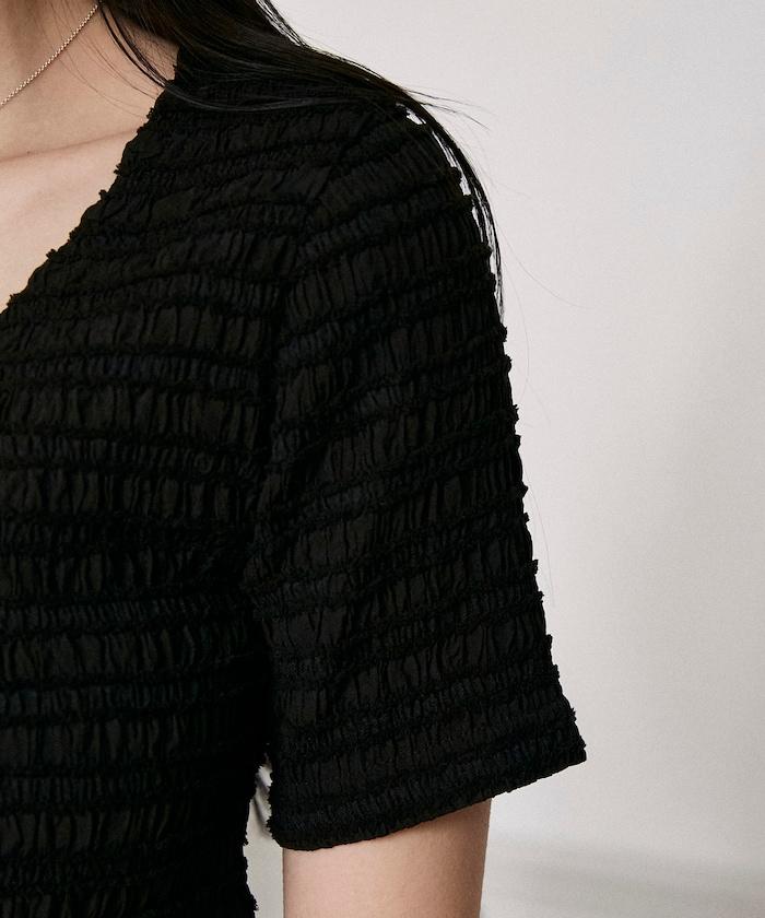 簡潔的 V 領設計帶來美麗的肩部線條。
