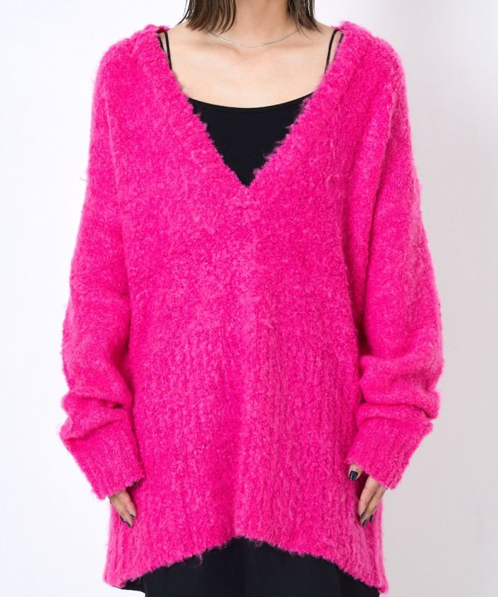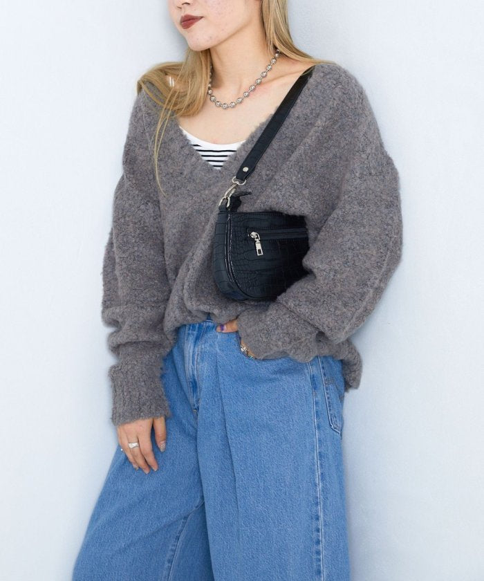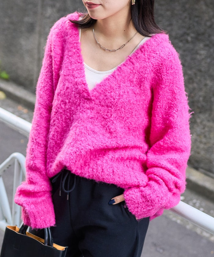 可愛的毛圈針織衫,結合了蓬鬆的質感和前衛的深 V 領設計。