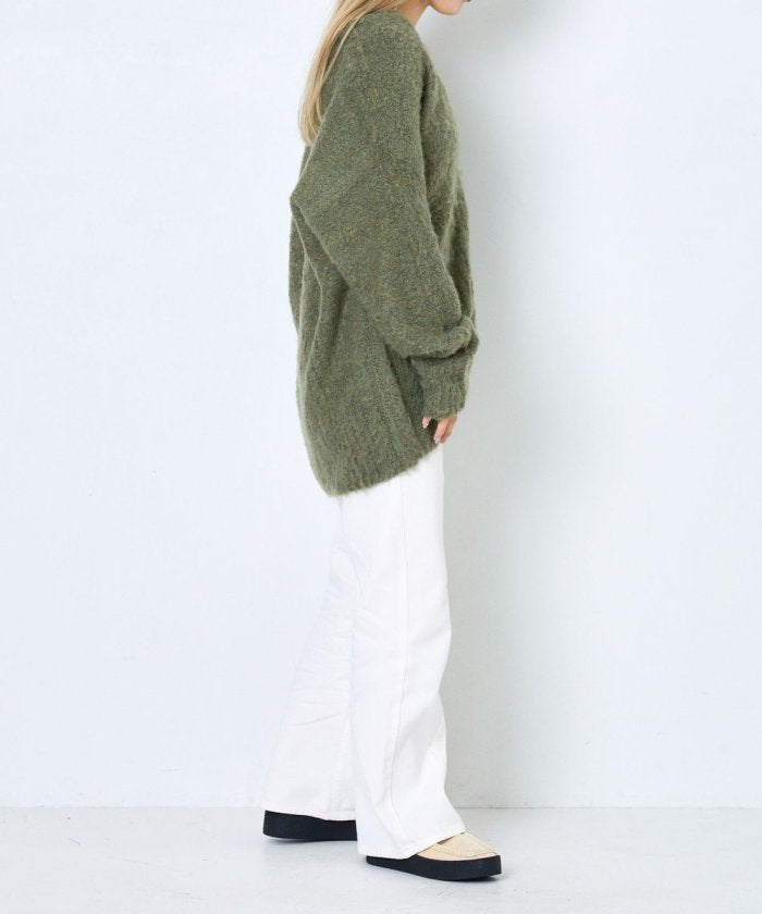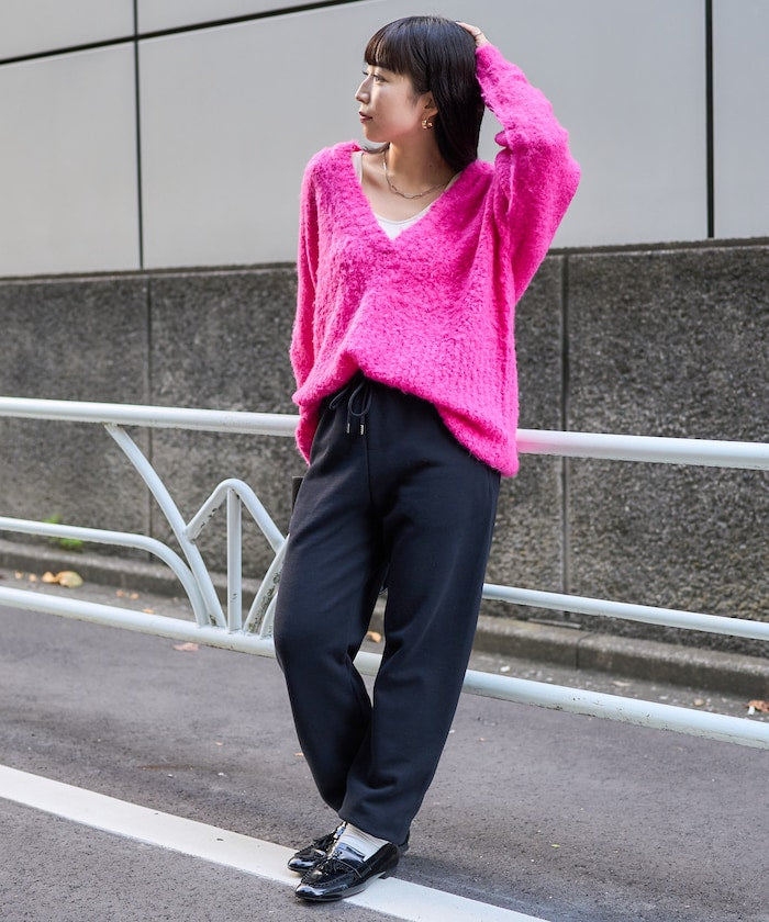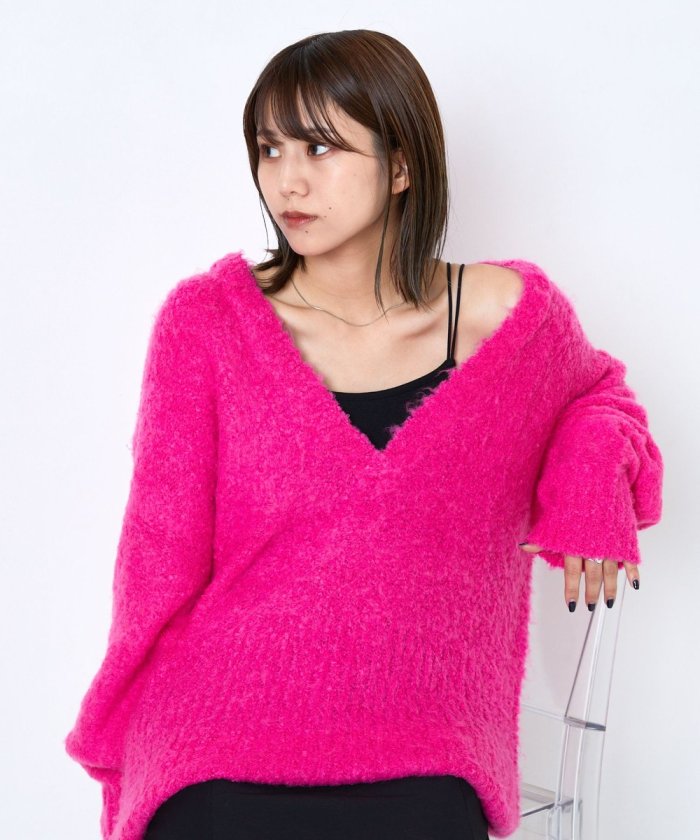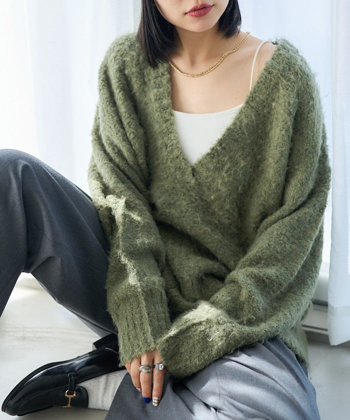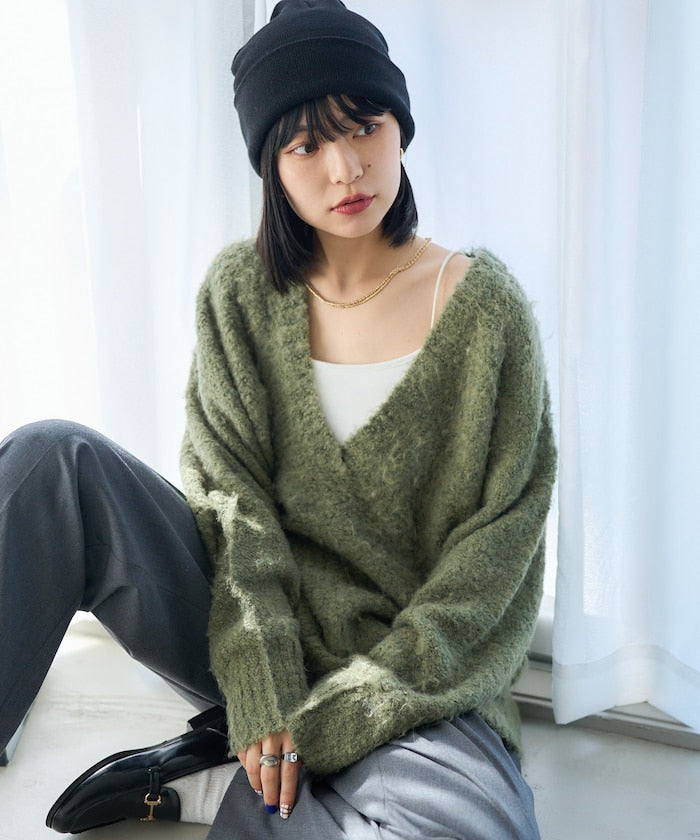 可愛的毛呢針織衫,結合蓬鬆質感和前衛的深 V 領設計。