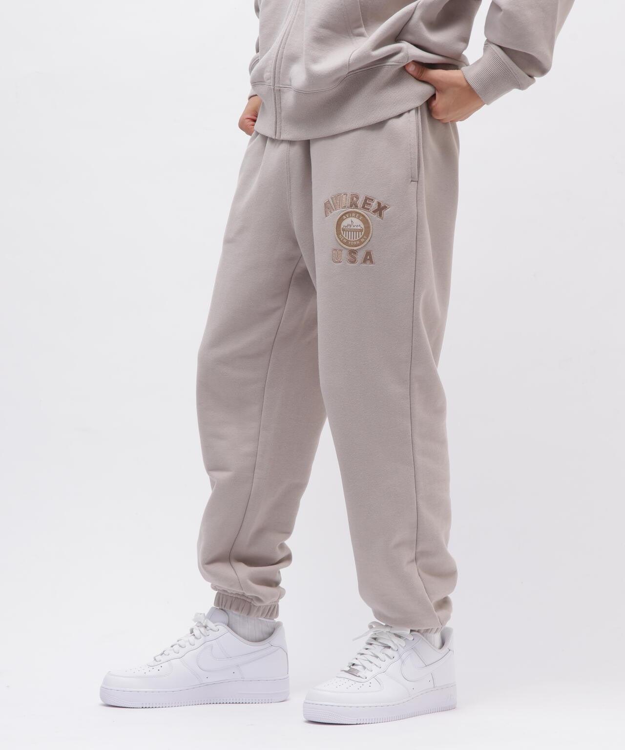 VARSITY LOGO SWEAT PANTS NYC<產品細節> - 標準厚度運動褲 - 反面使用起絨運動面料 - 商標採用與身體顏色相近的顏色 - 曼哈頓城市景觀圖案的貼布設計 - 米色,薩克斯色,黑炭色 - 三種顏色可供選擇:米色,薩克斯色,黑炭色、米色、薩克斯色和炭灰色三種配色 - 勻稱的剪裁