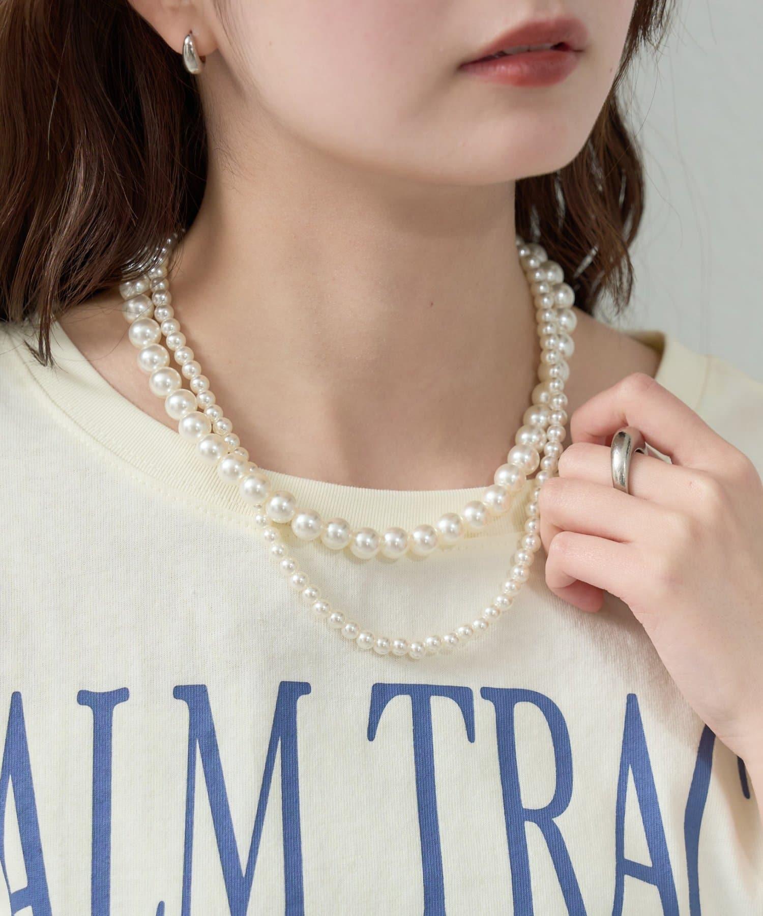 W 型珍珠項鍊,大小珍珠營造出層次感
