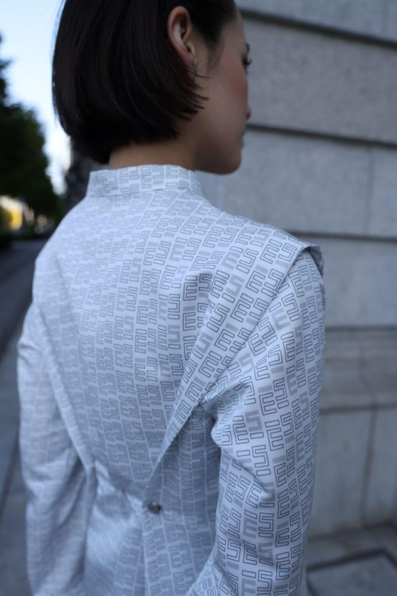 MIX 獨創了 ESIÓ 的字母圖案,並將其印製在面料上。 這是一款具有本季典型風格的連衣裙。 黑色配以銀色紐扣,顯得格外突出。