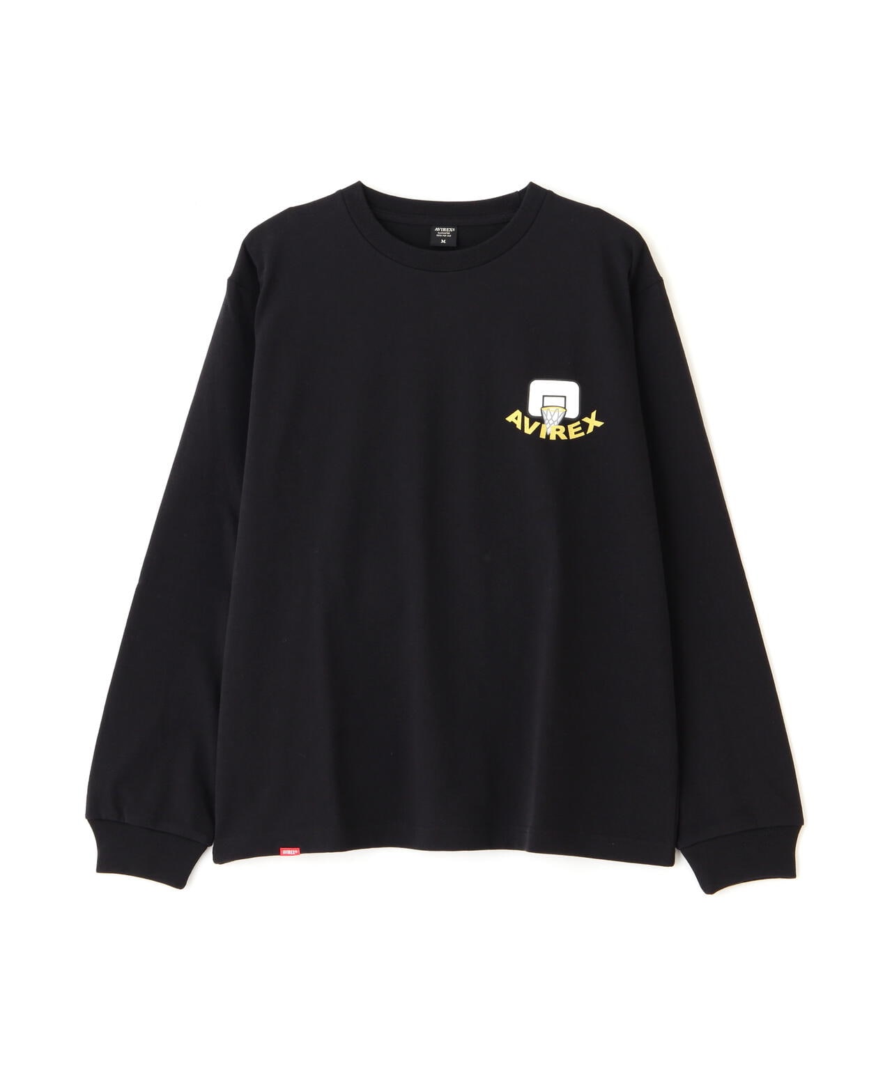 產品細節 - 長袖T恤,純棉針織面料 - 左胸前有品牌標識和籃球門 - 後幅圖案為標準品牌標識、籃球門和可愛的籃球熊 - 右下襬有笙名。常規版型,黑色、白色和棕色。