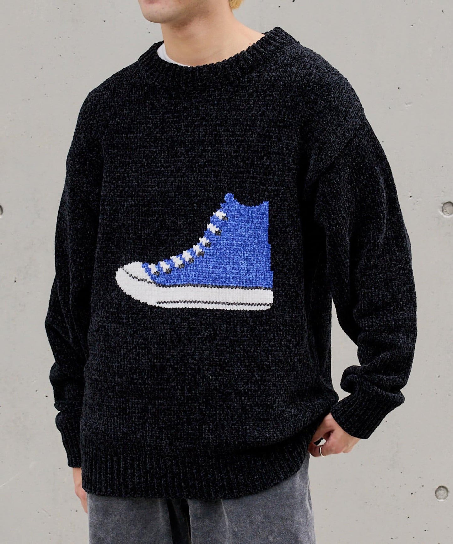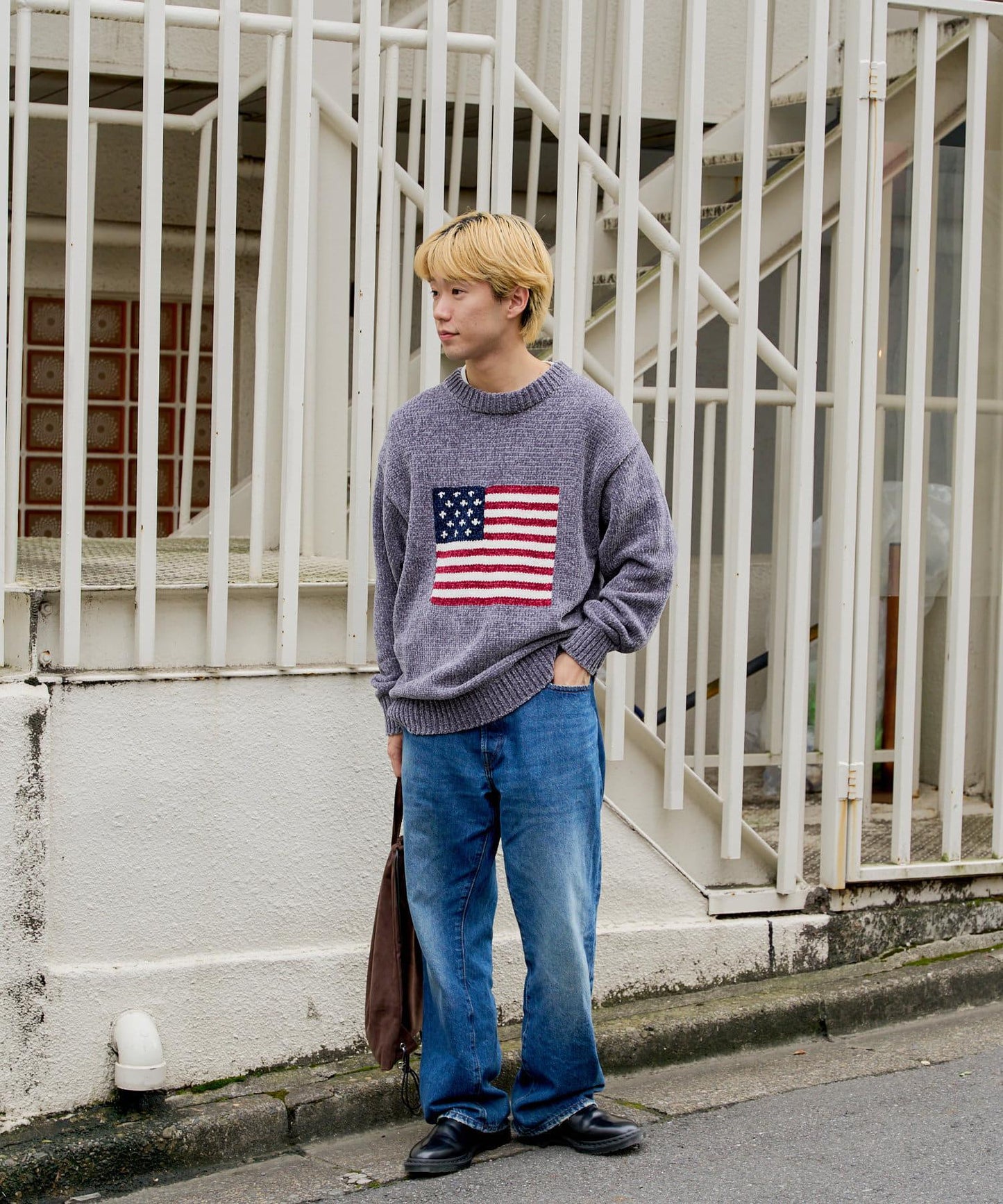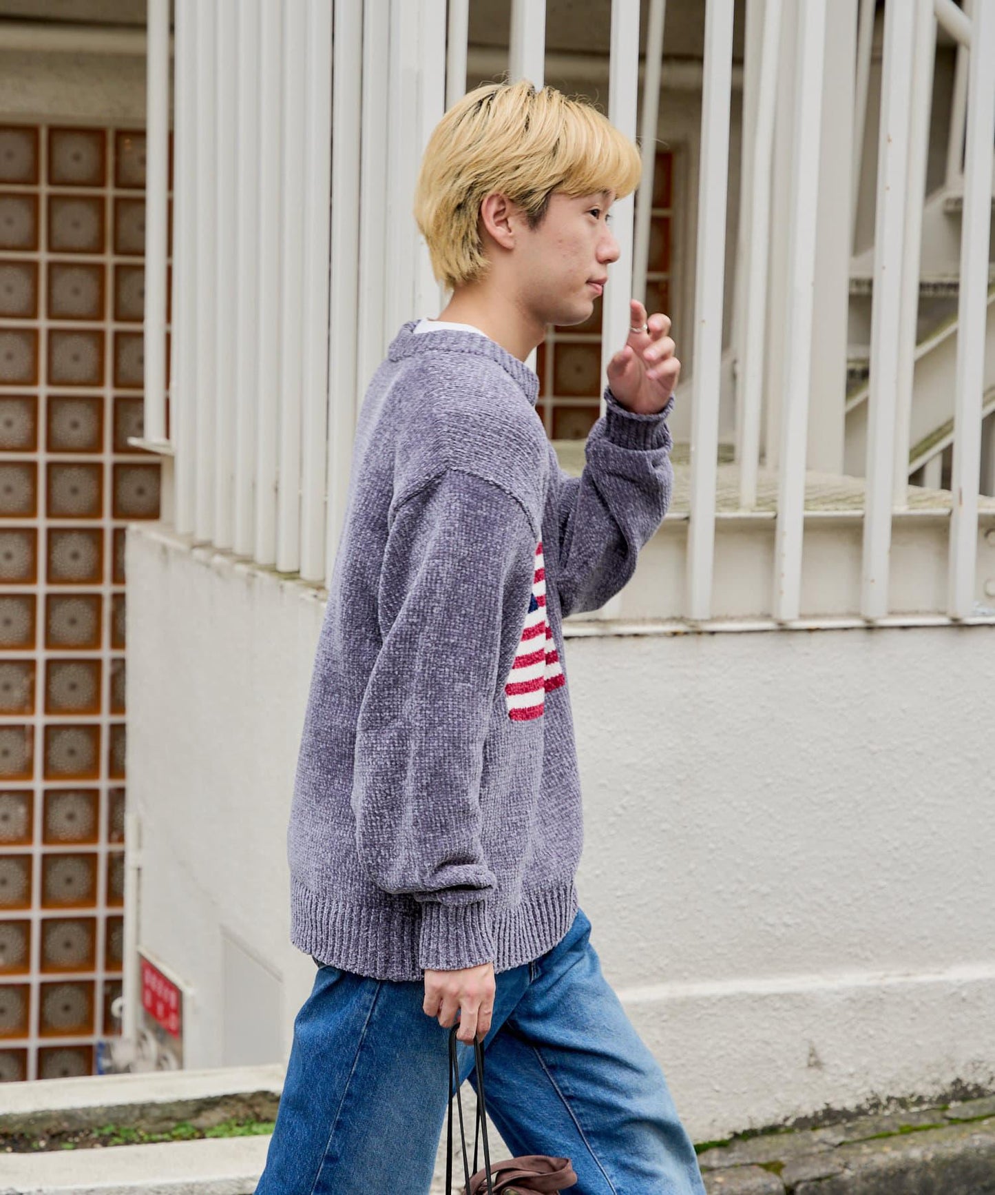 寬鬆的剪裁採用了復古針織衫上的單點徽標。