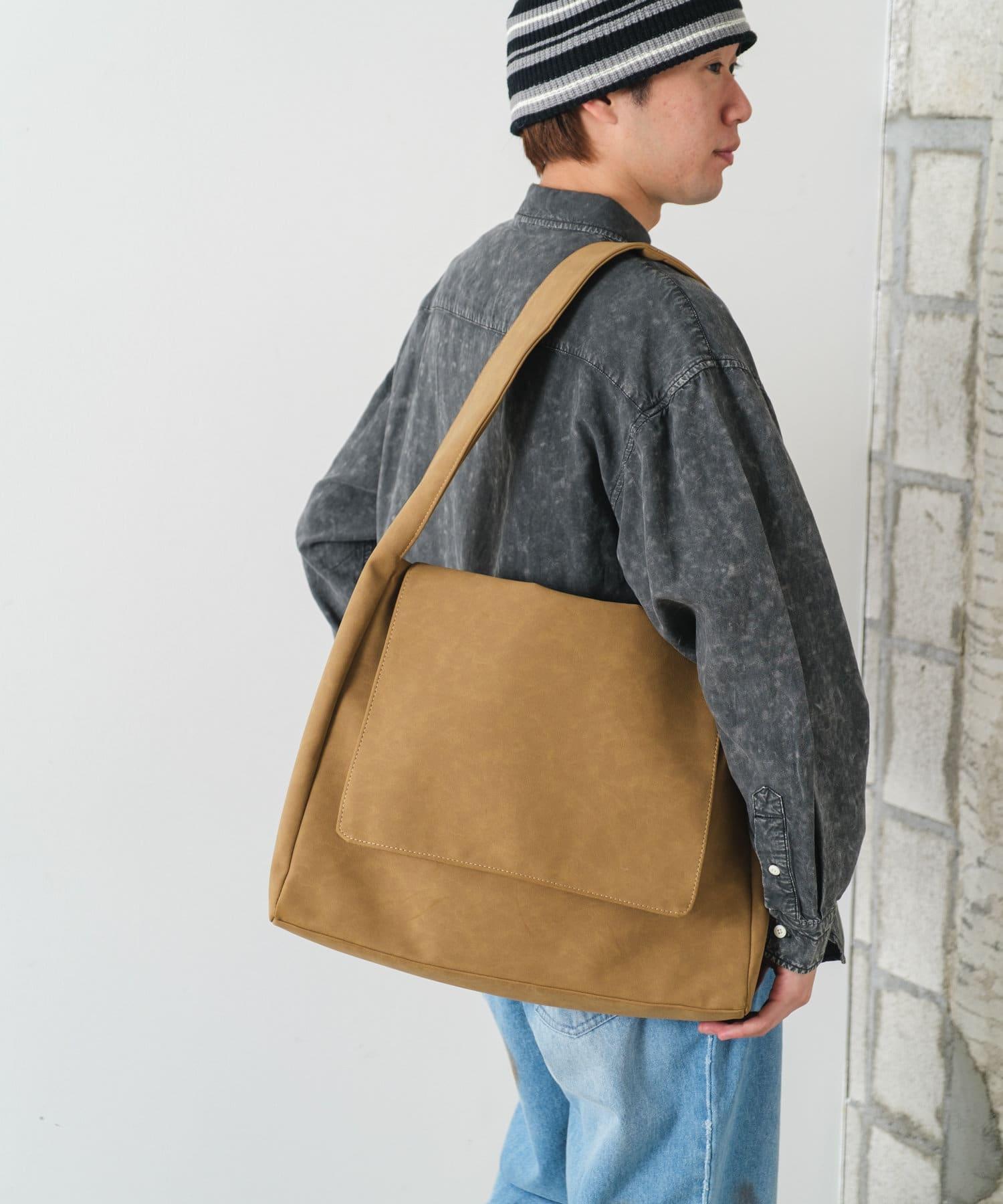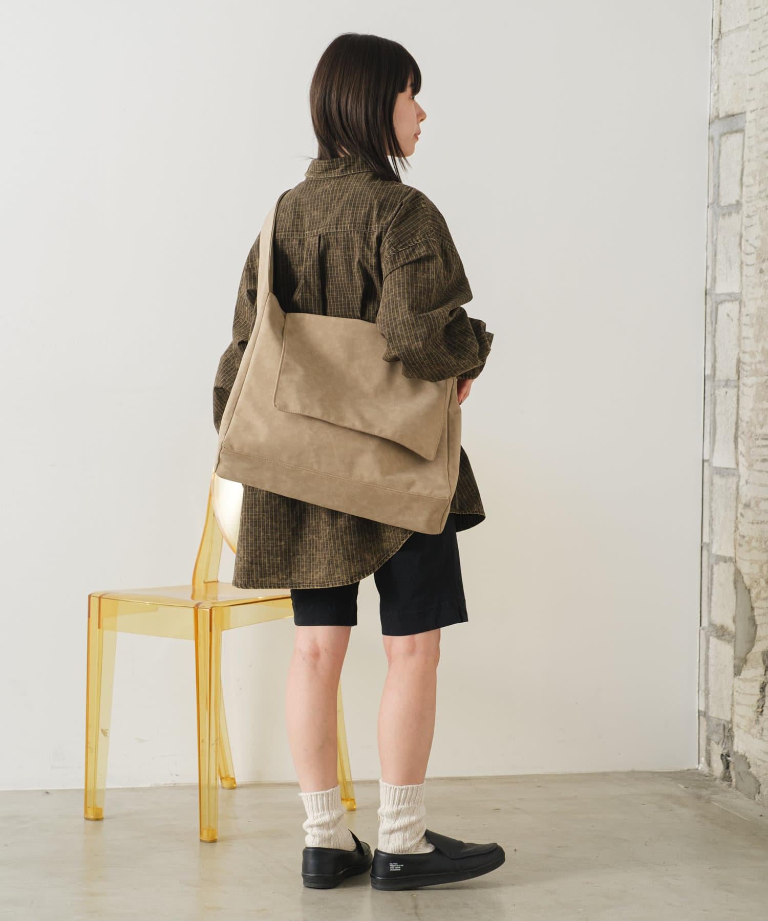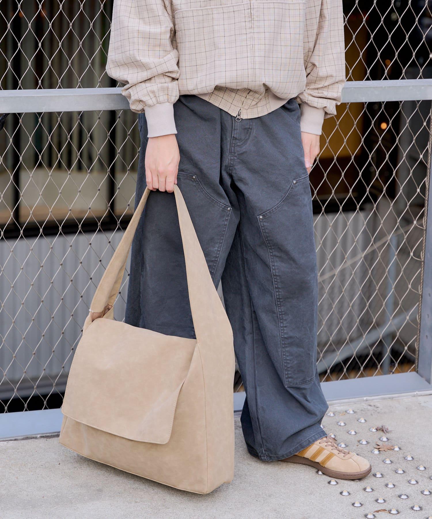 這是一款新聞紙袋,採用厚度適中的素食麂皮面料,以送報員使用的袋子為樣本。