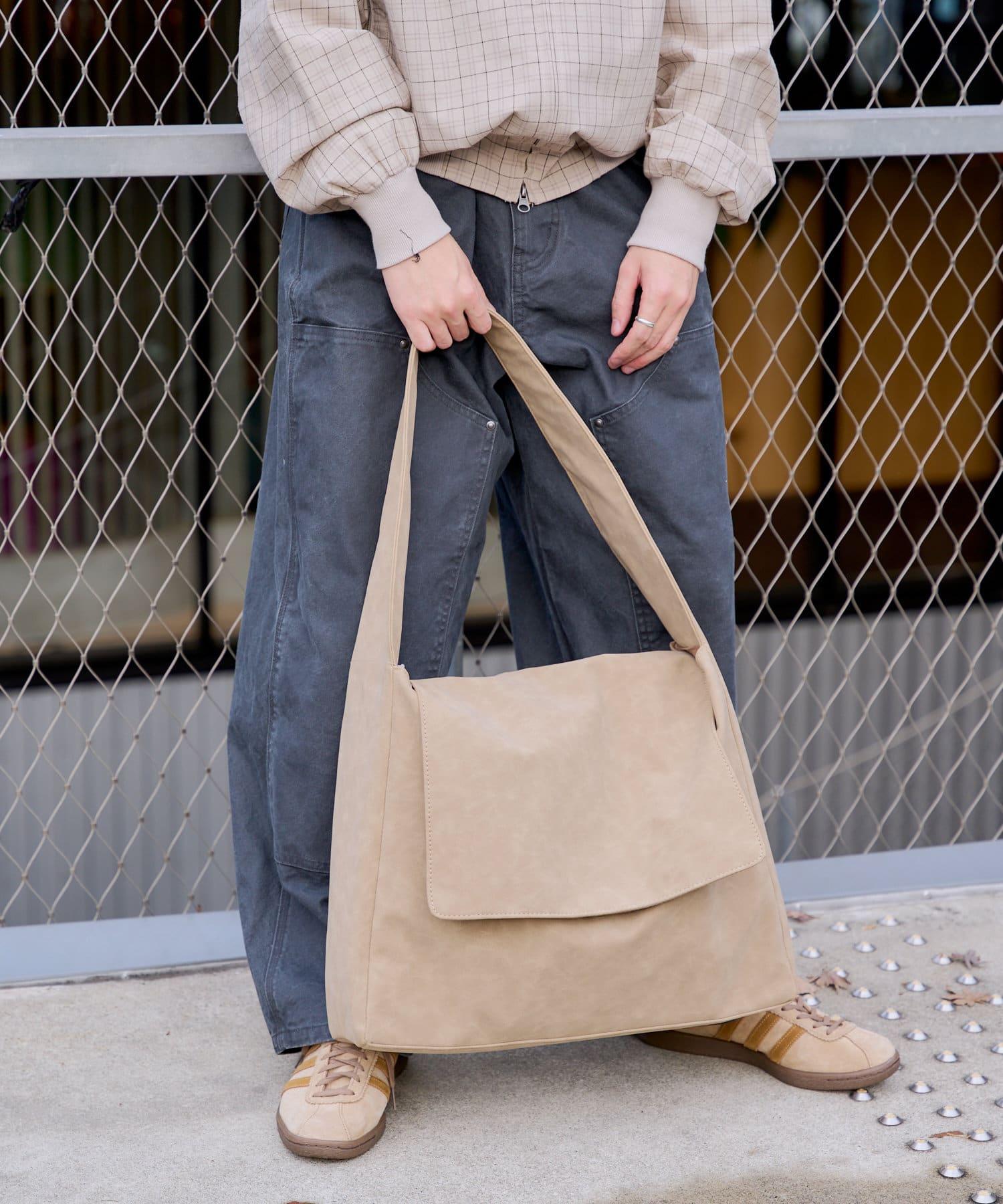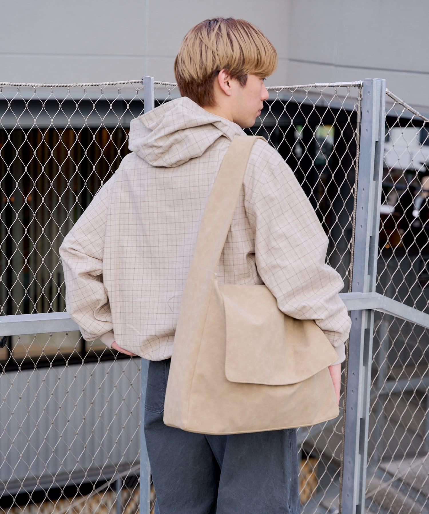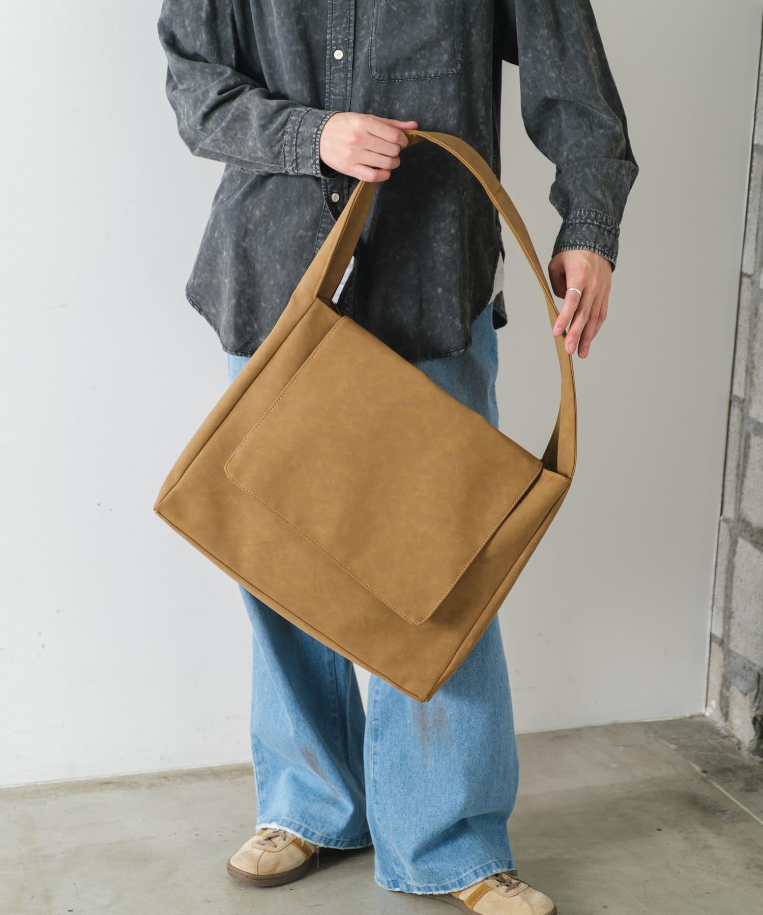 這是一款新聞紙袋,採用厚度適中的素食麂皮面料,以送報員使用的袋子為樣本。