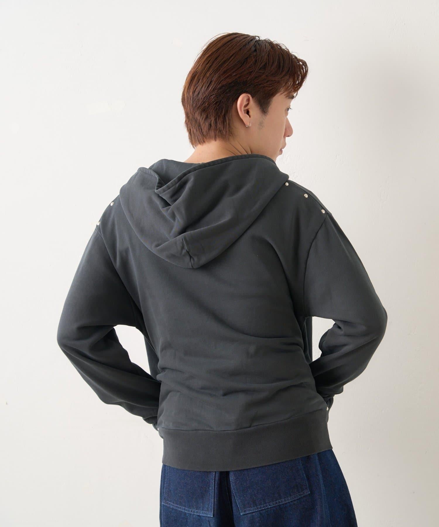 【WHIMSIC/2尺碼可選】水洗染色鉚釘衛衣拉鍊連帽衫