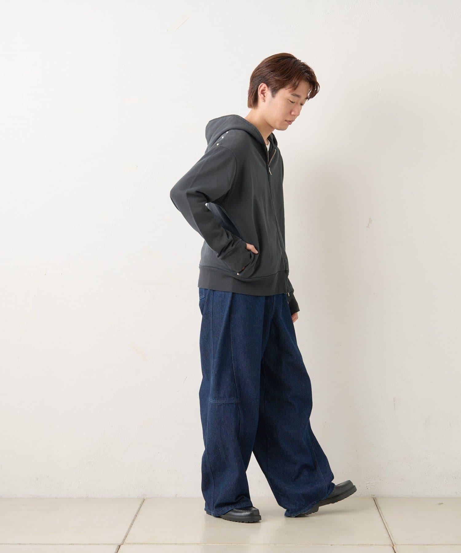 中性] 顏料染色鉚釘汗漬拉鍊派克大衣