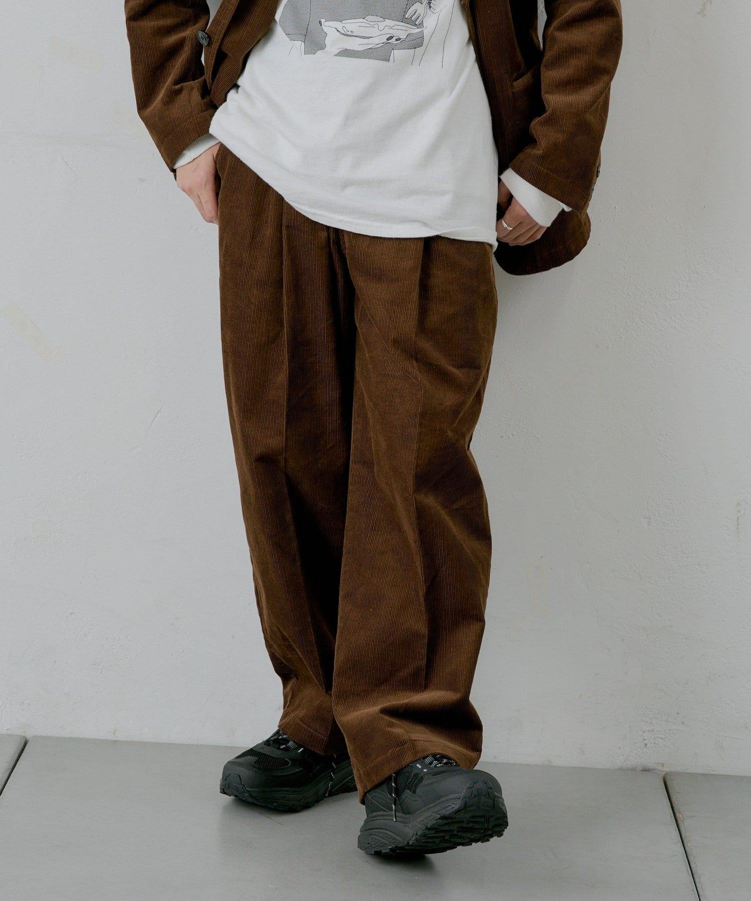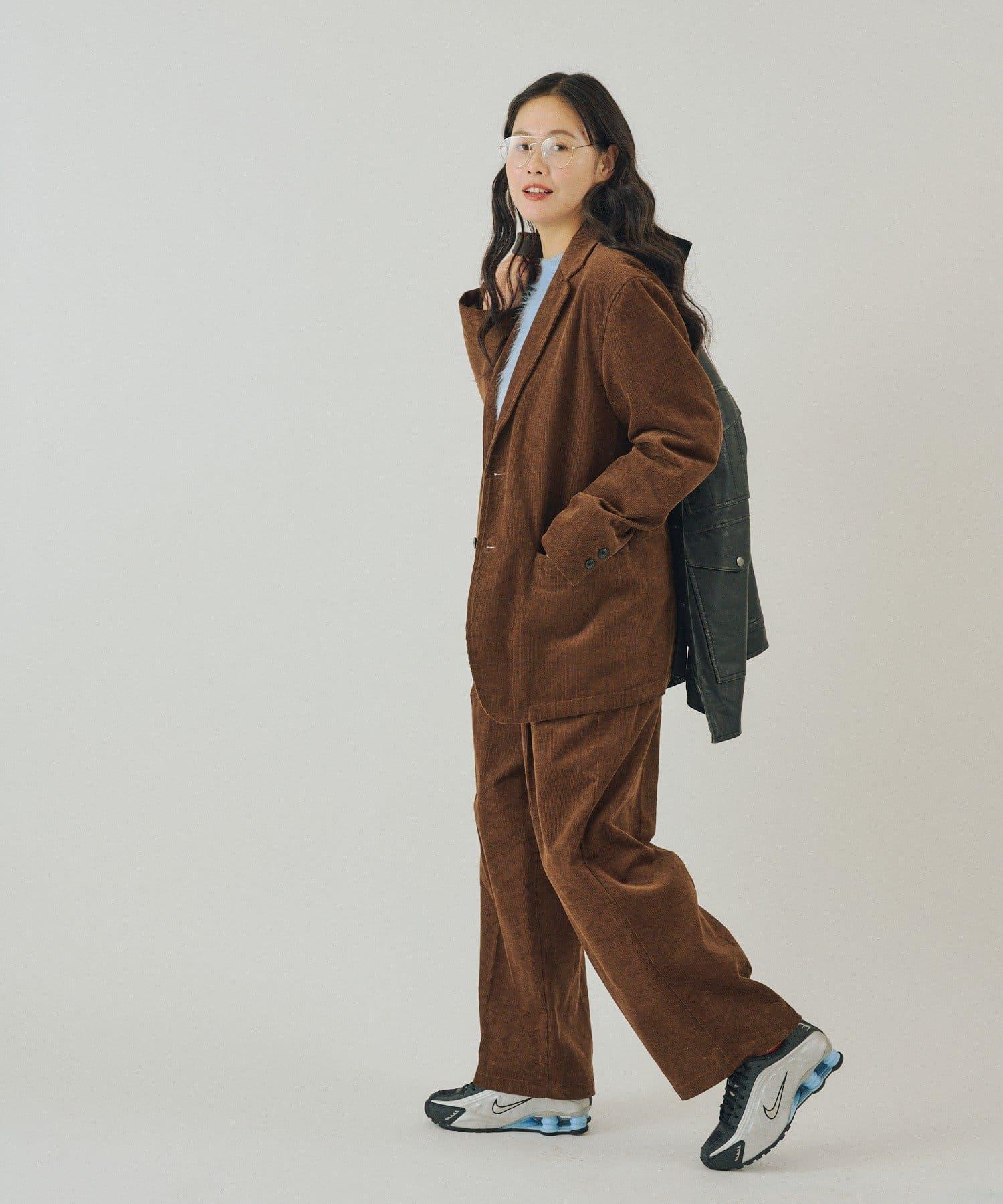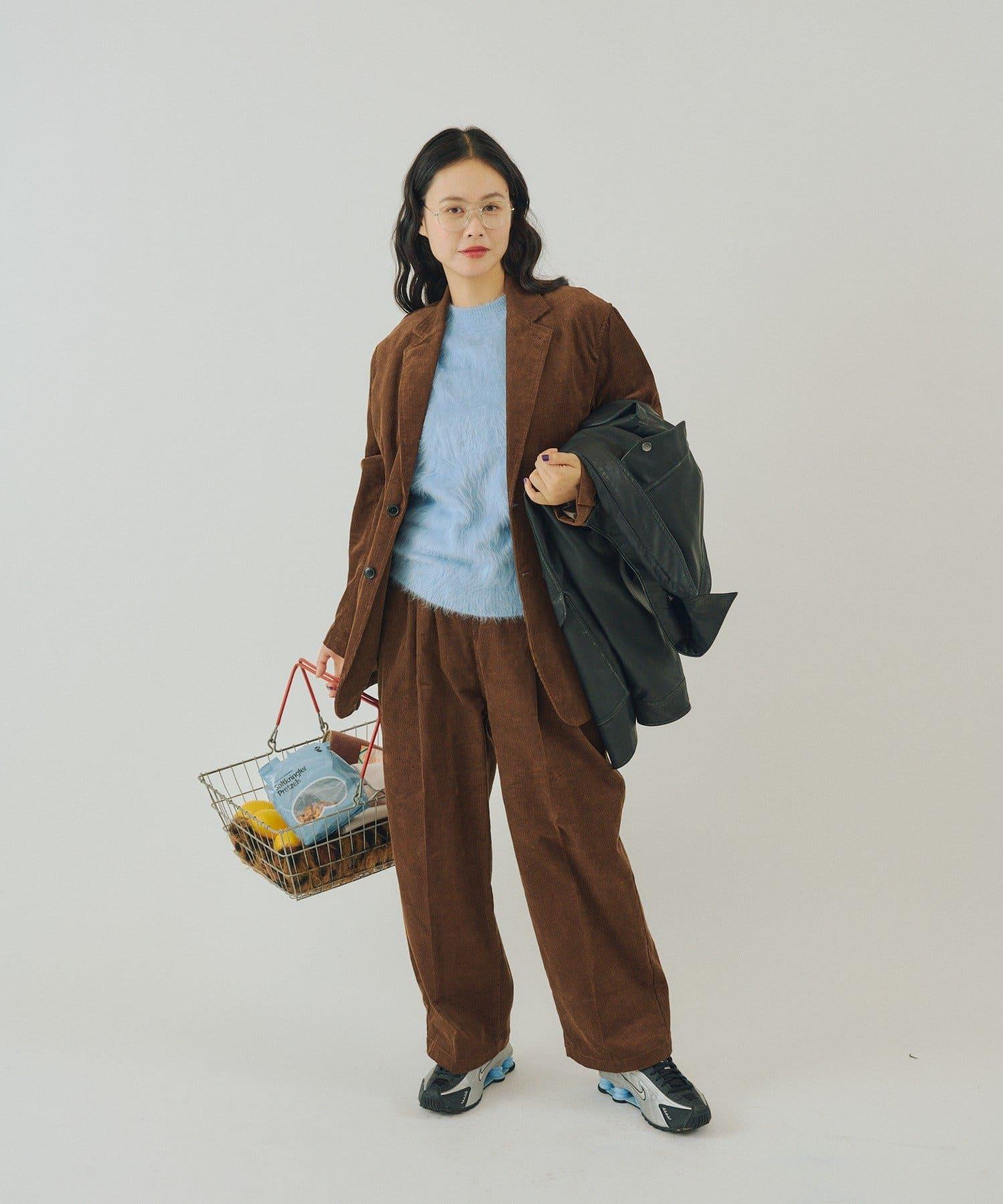 這款長褲採用粗稜燈芯絨面料製成,具有很強的存在感,光澤度適中,很有季節感。