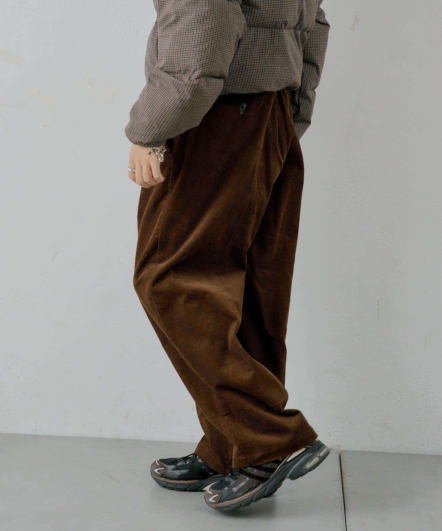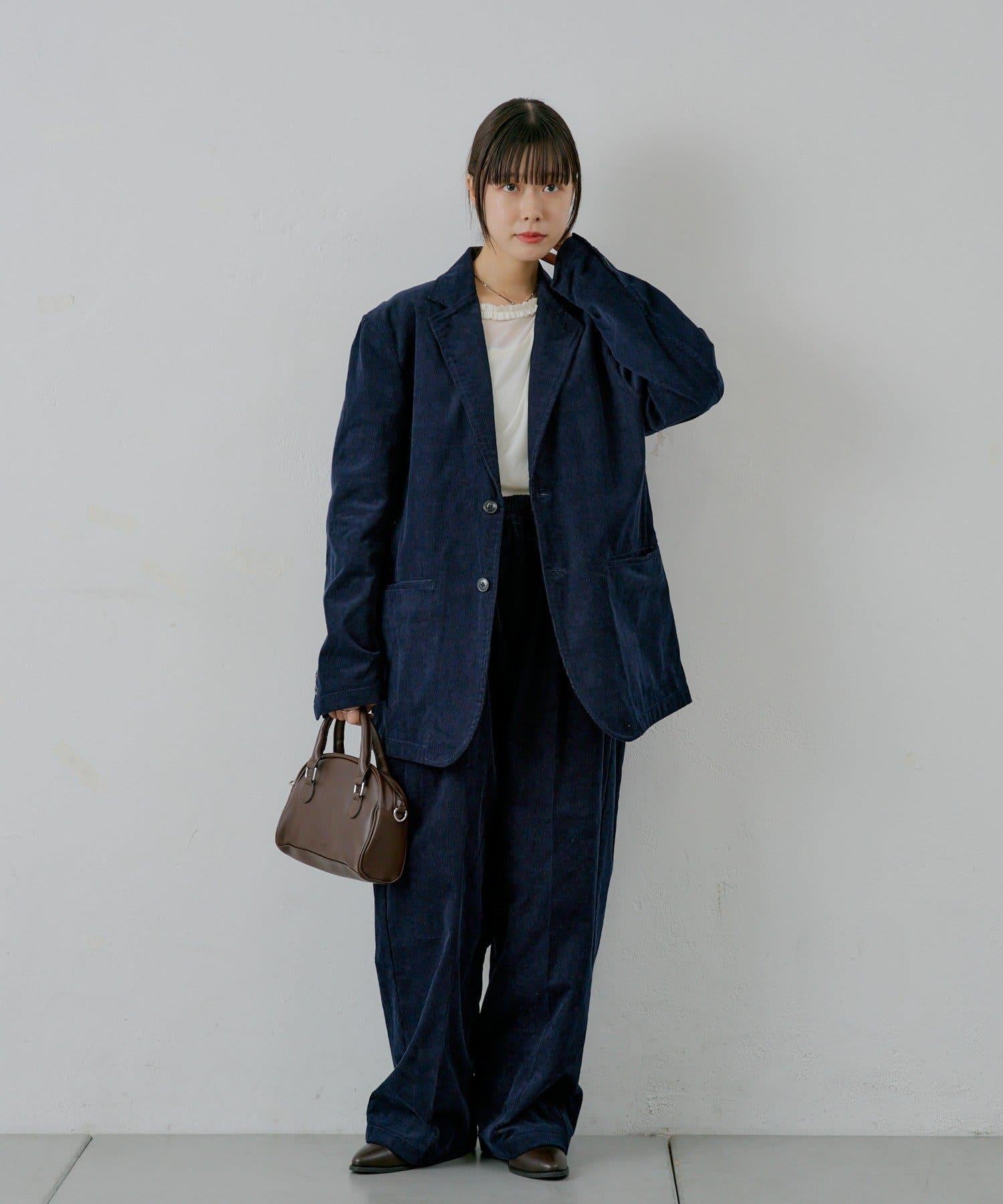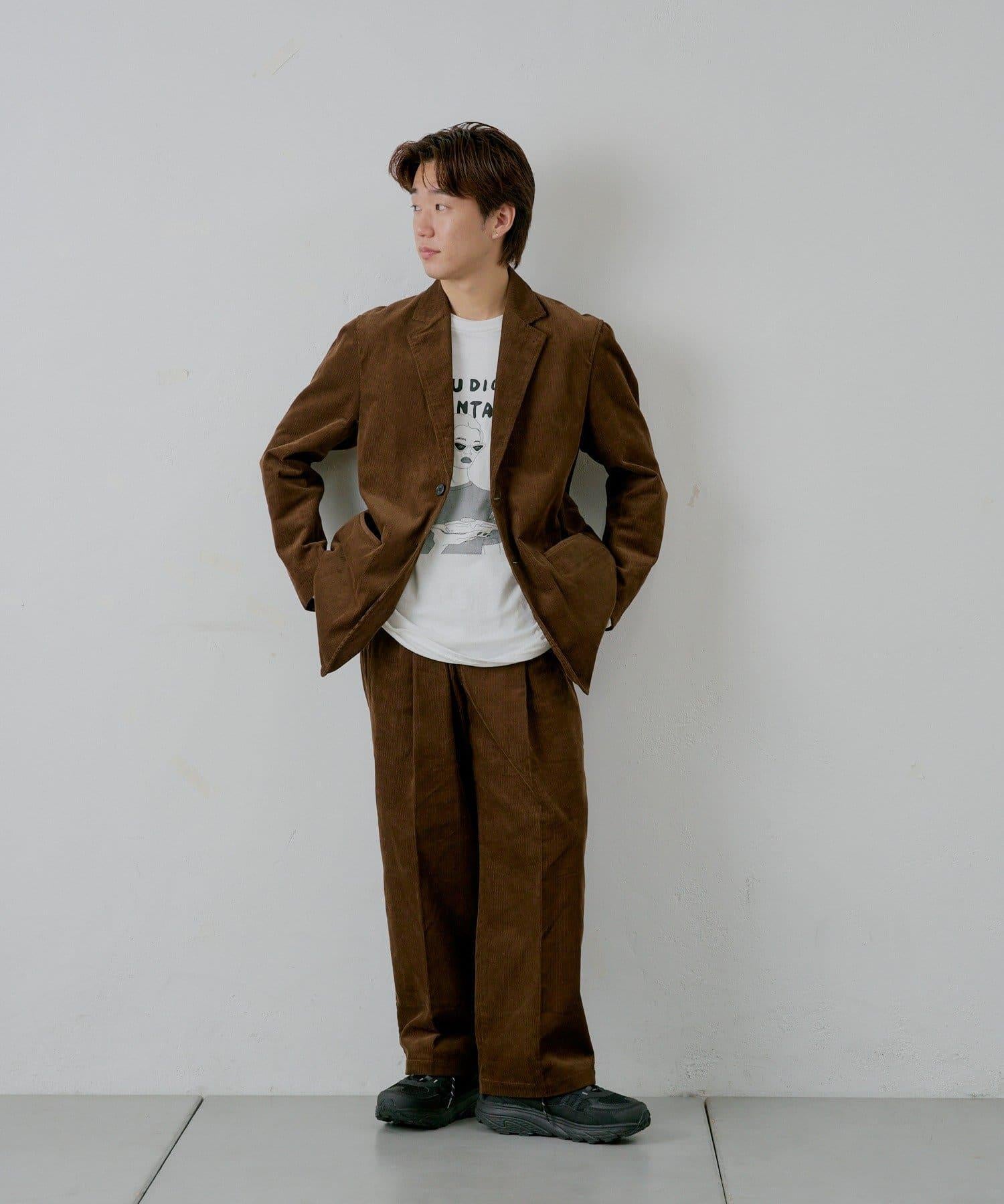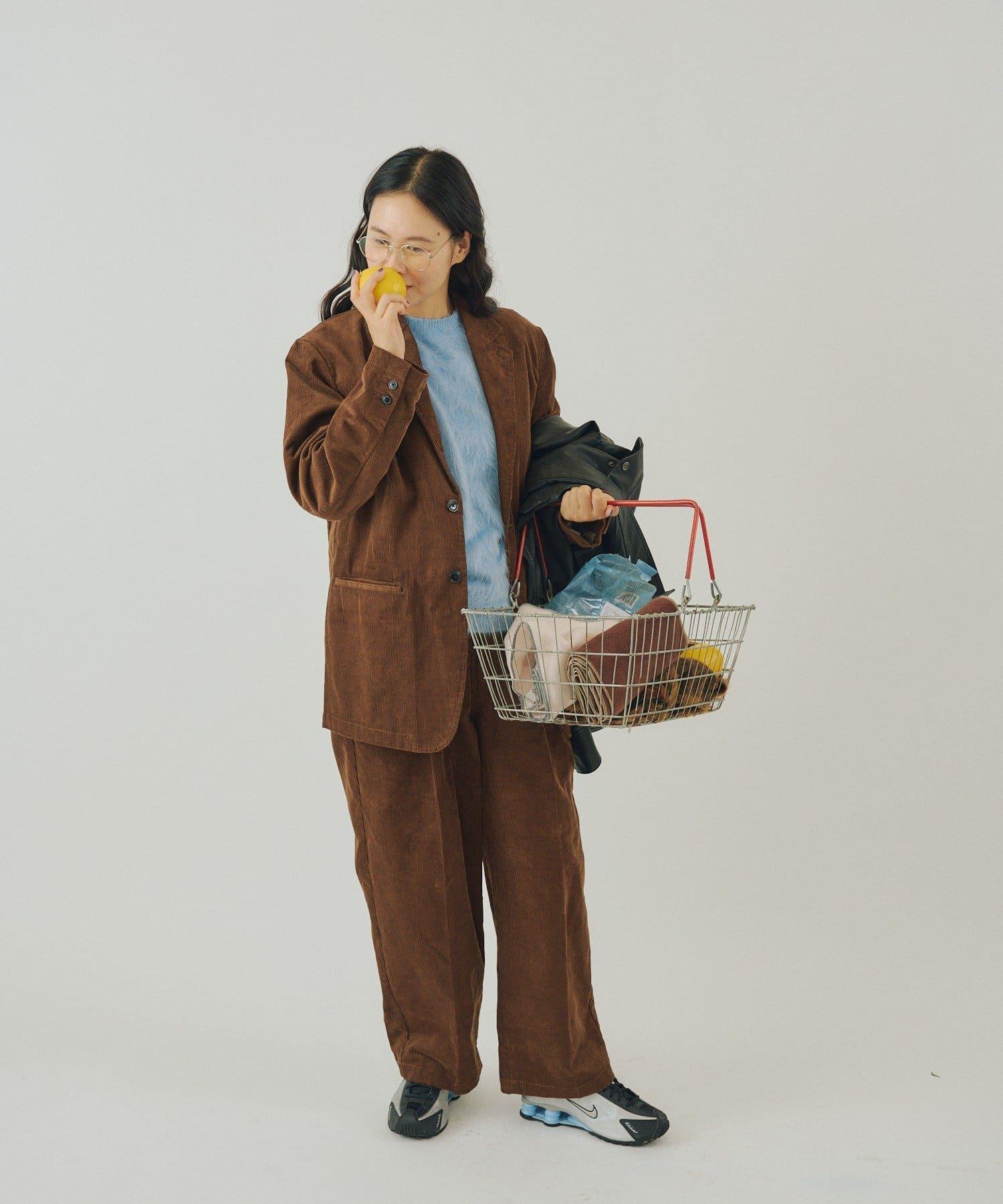 這款長褲採用粗稜燈芯絨面料製成,具有很強的存在感,光澤度適中,很有季節感。