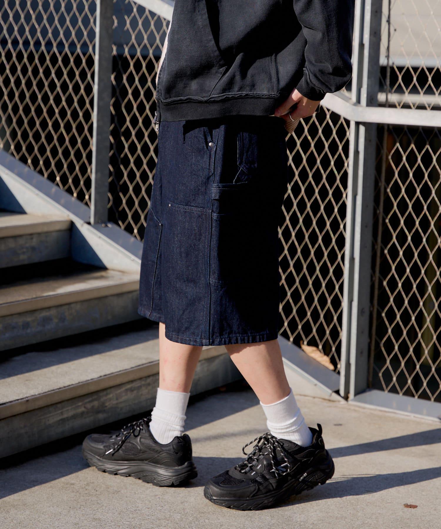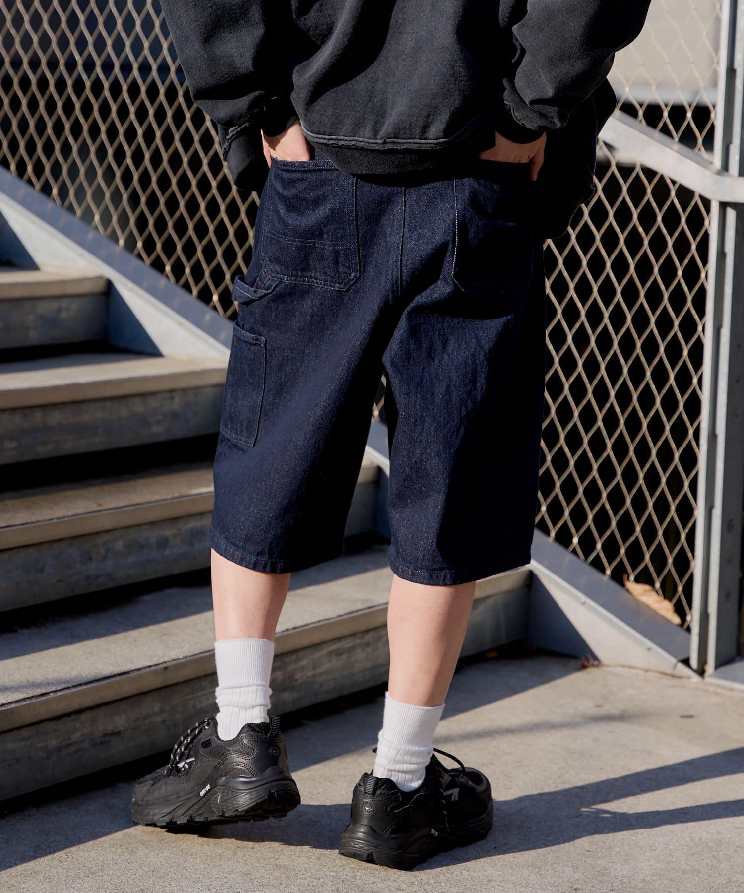 這款雙膝畫家短褲以復古畫家長褲為基礎,採用現代剪裁。