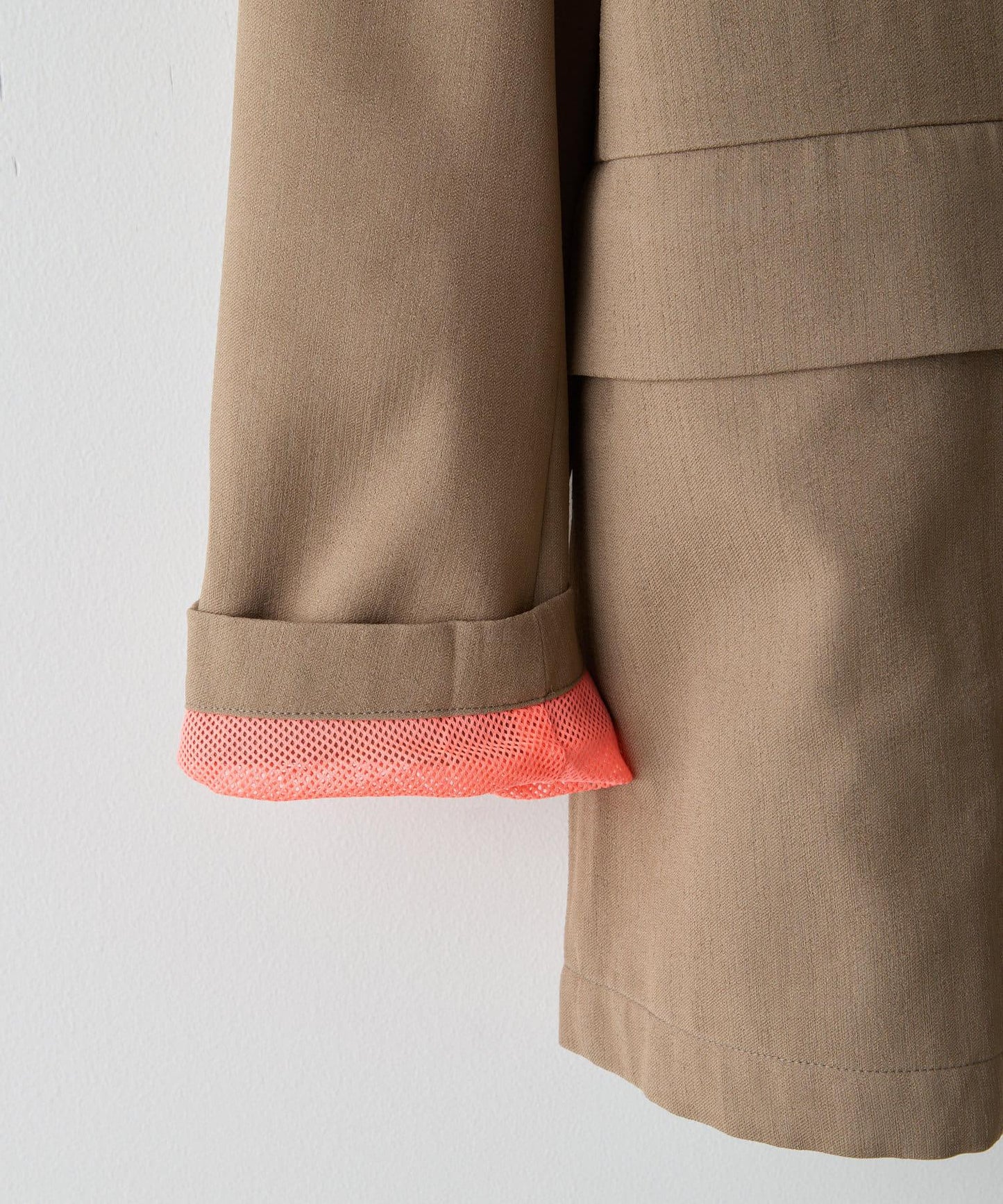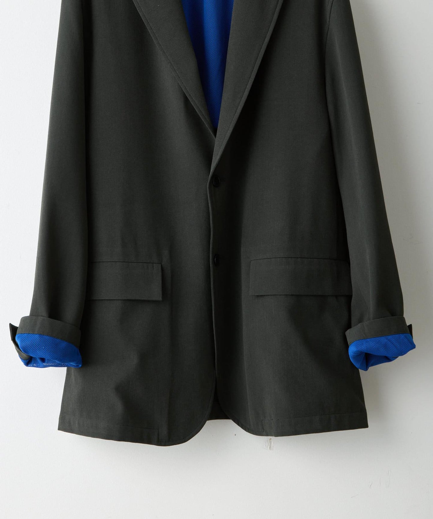 這是一款 2B 剪裁夾克,設計純正,內襯色彩斑斕,給人一種俏皮的感覺。