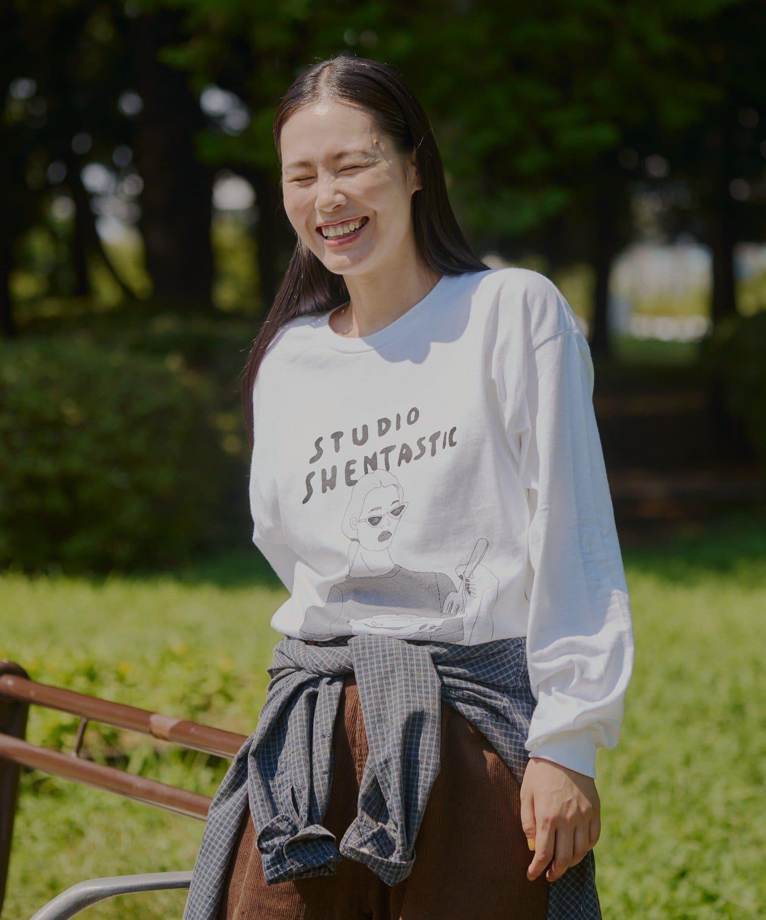 由多才多藝的時裝模特、演員和插畫家 Shen Tanaka 設計並繪製插圖的長款 T 恤。