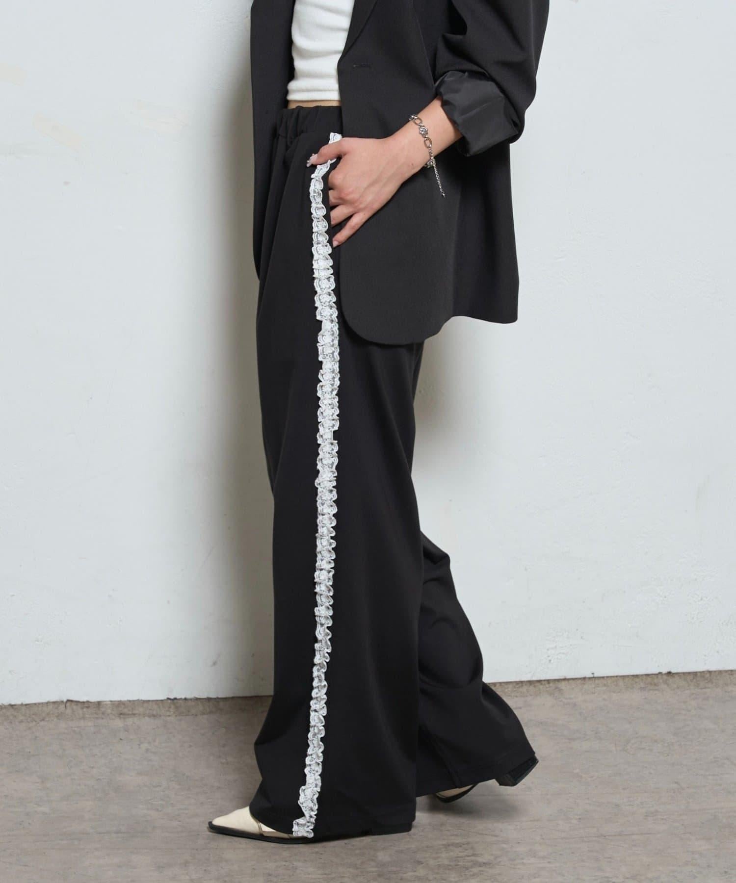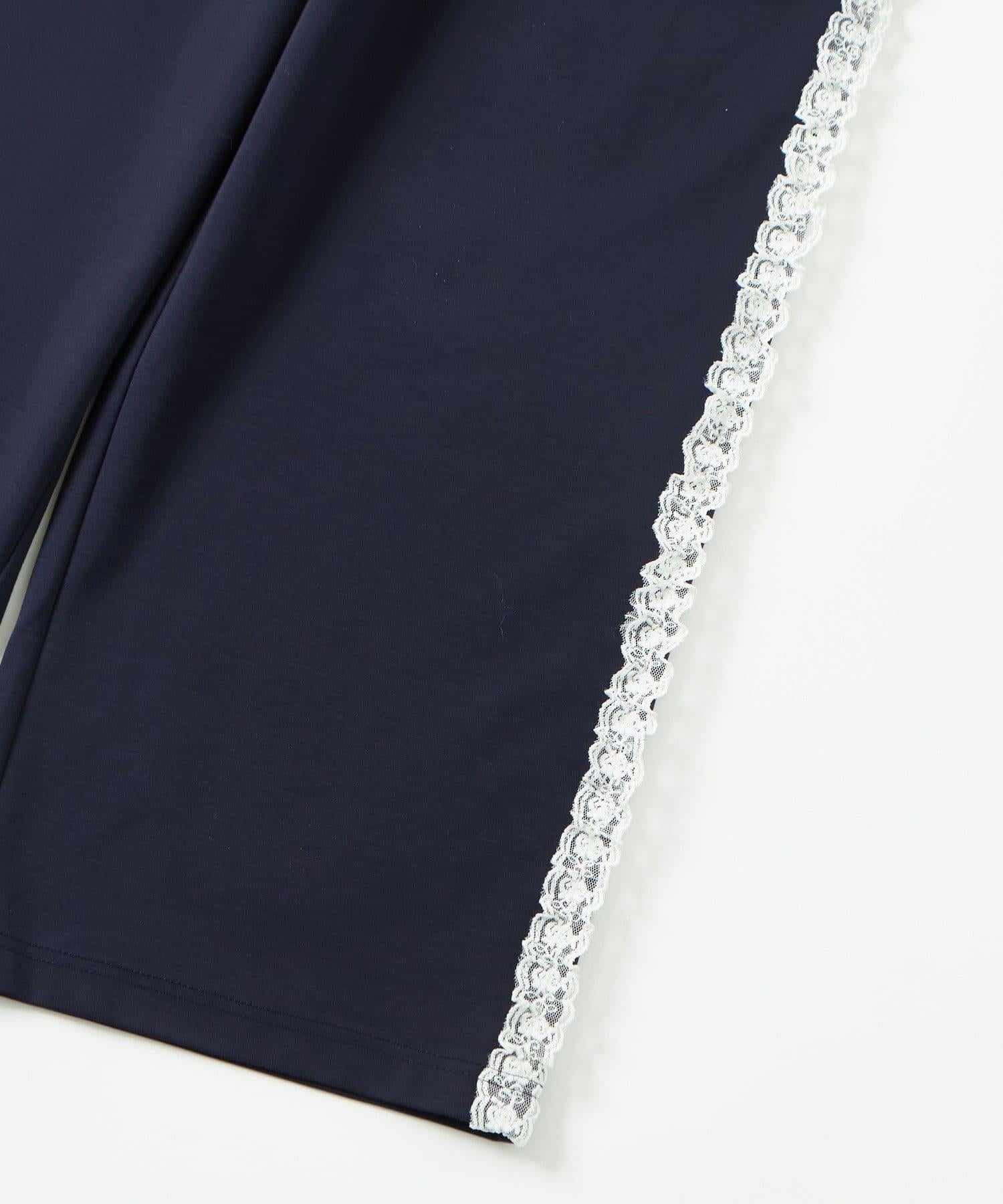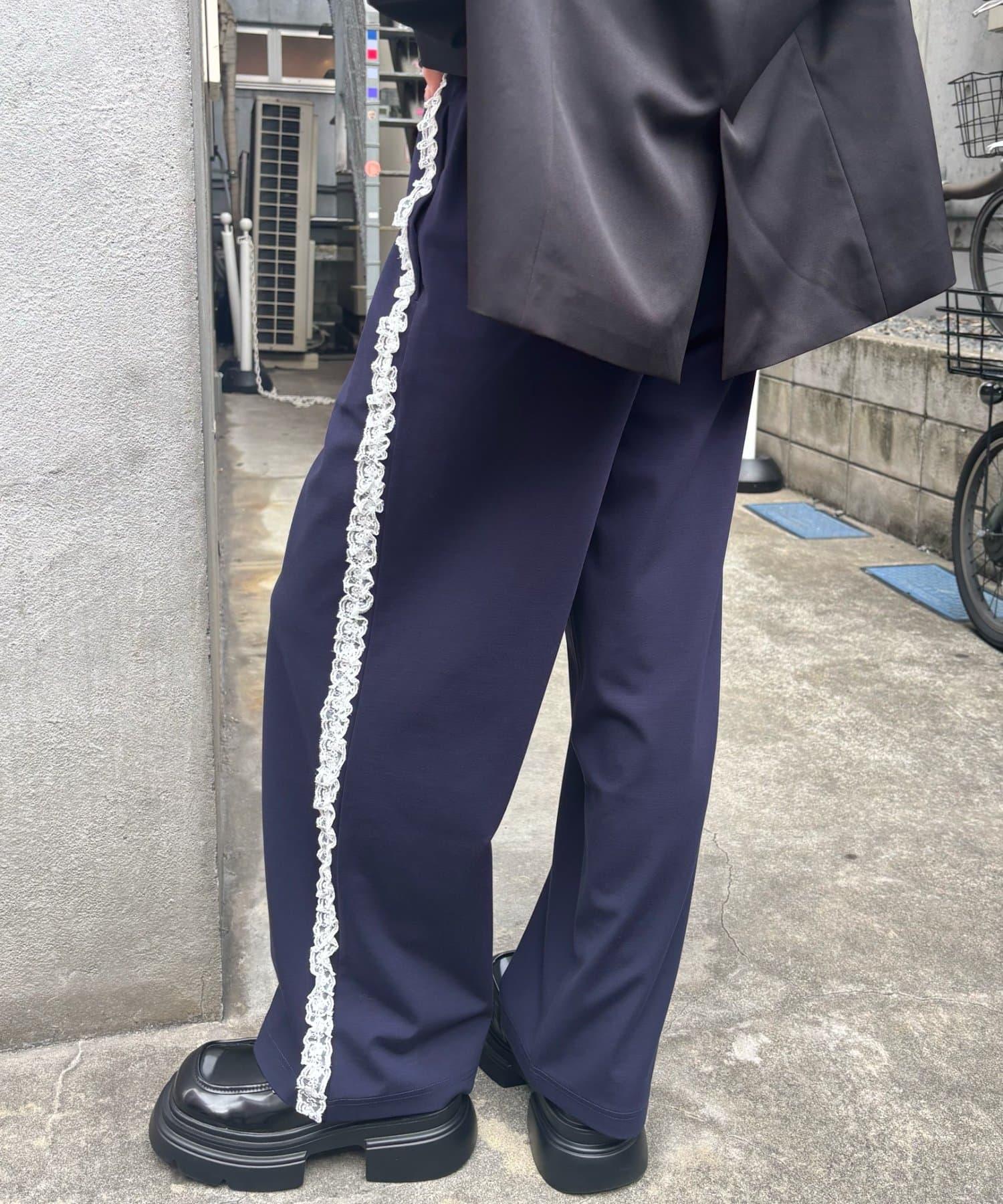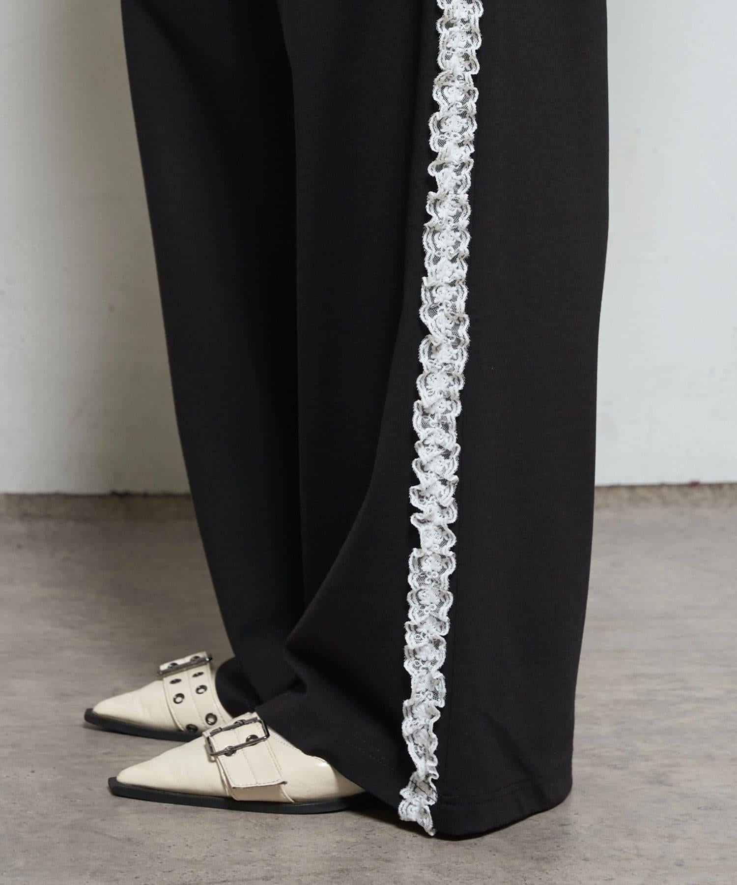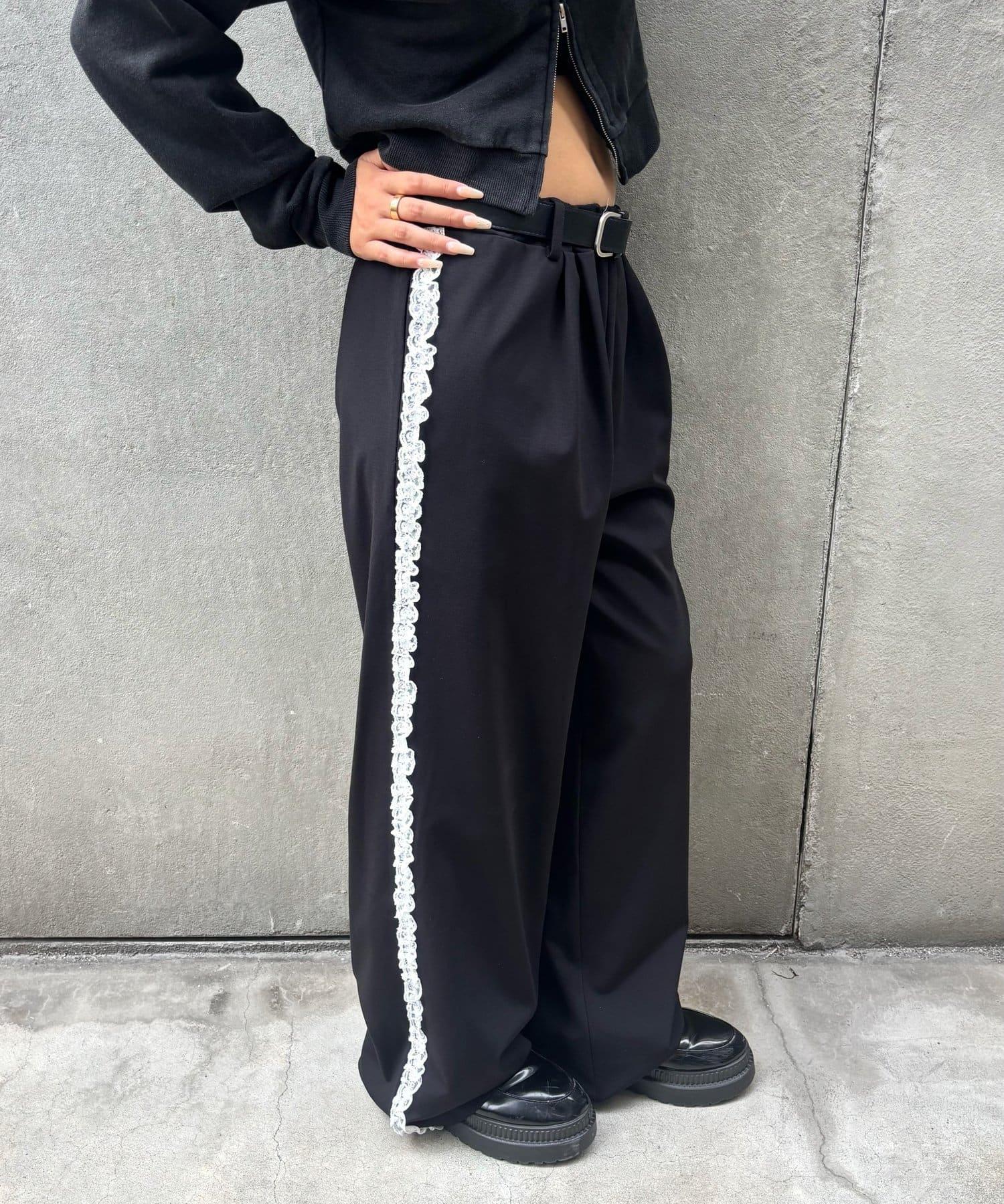 長褲兩側精緻的蕾絲花邊增添了一種微妙的優雅氣質。