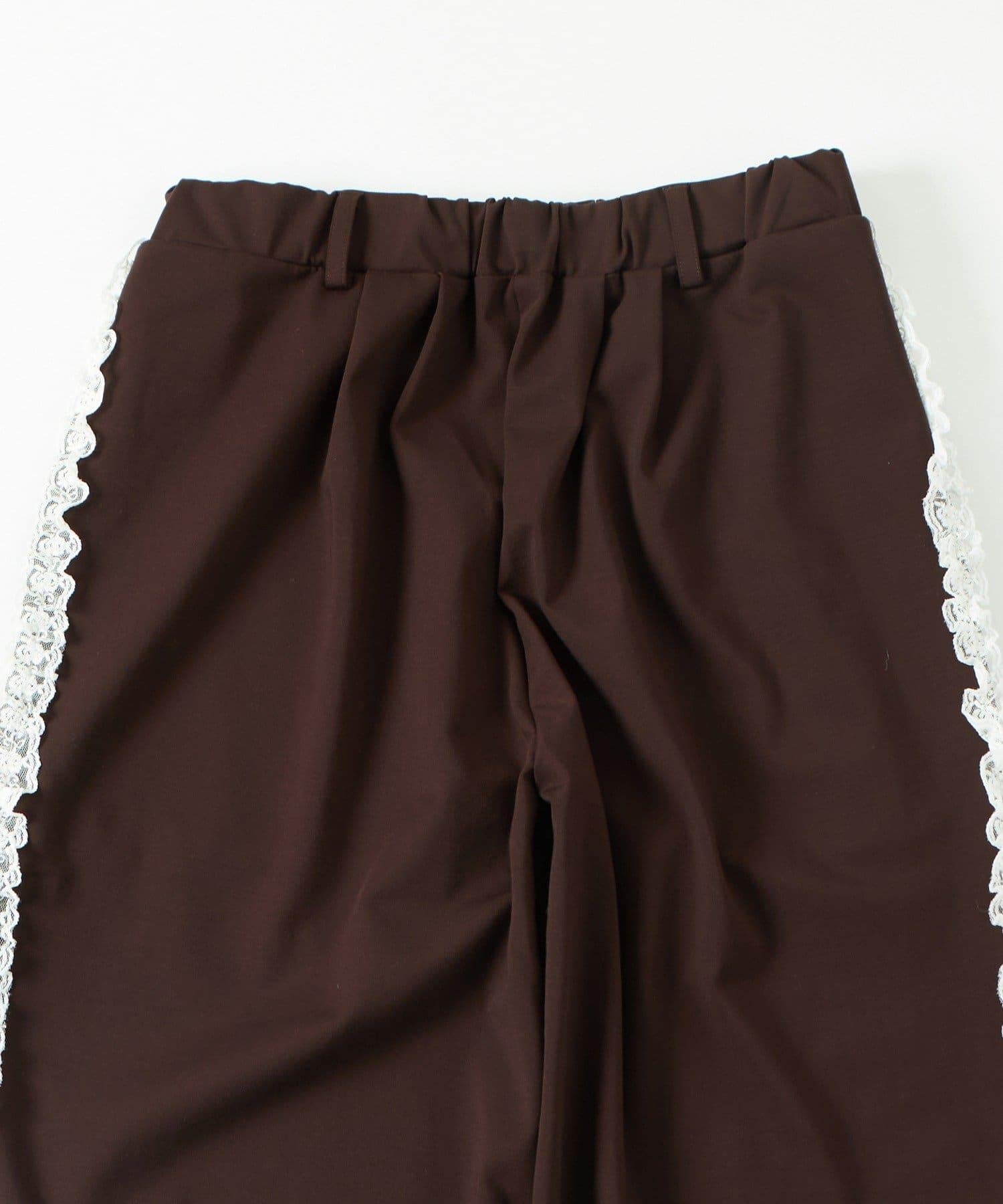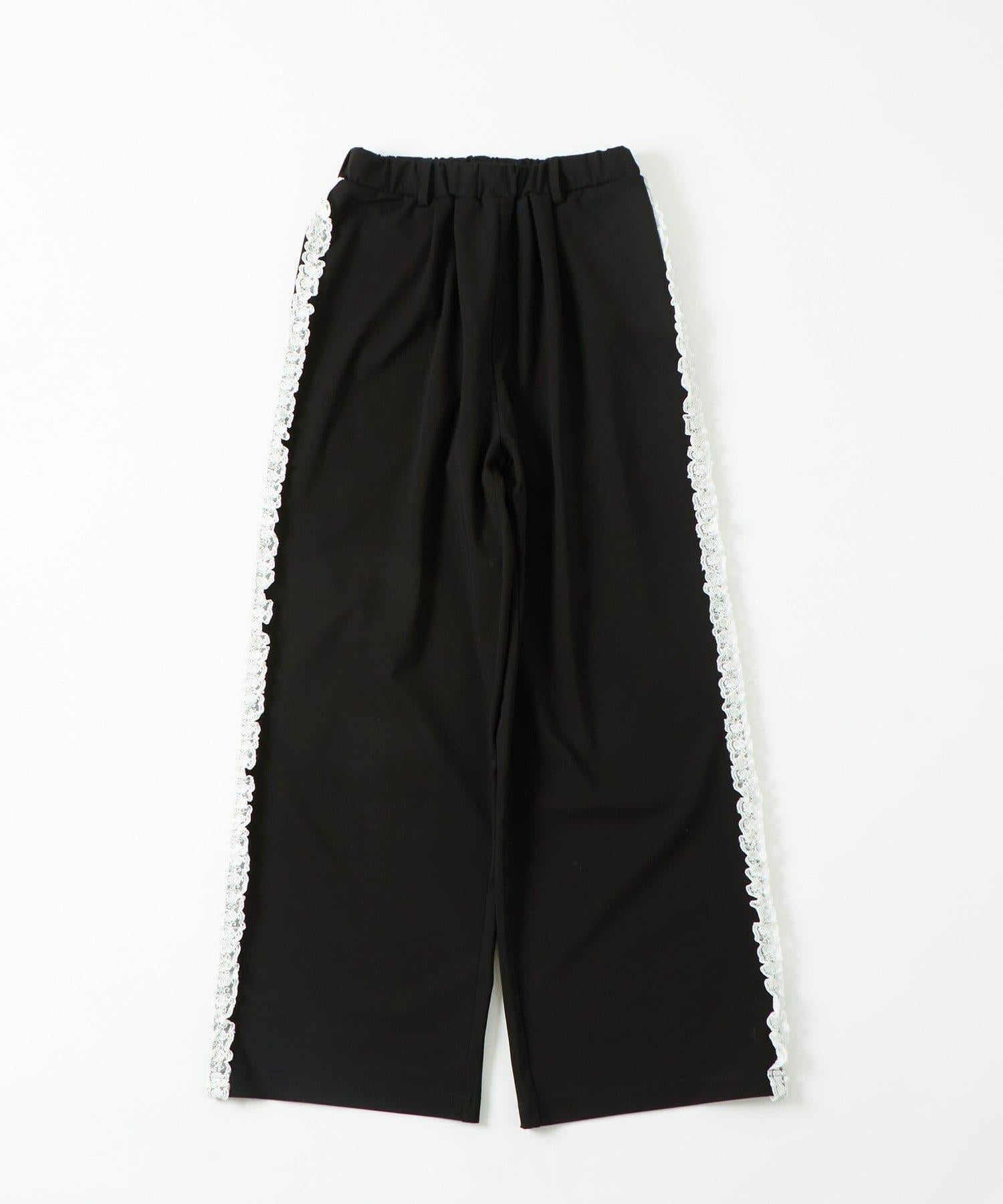 【WHO'S WHO gallery】側邊蕾絲拼接長褲