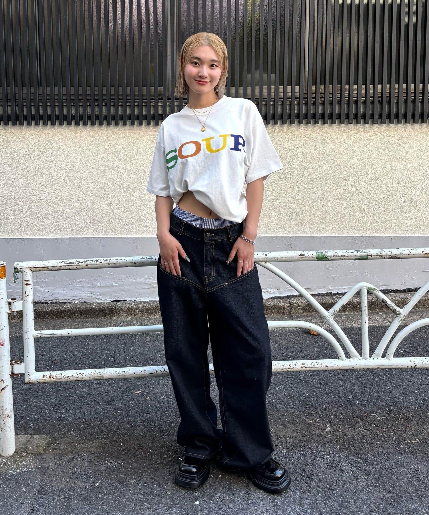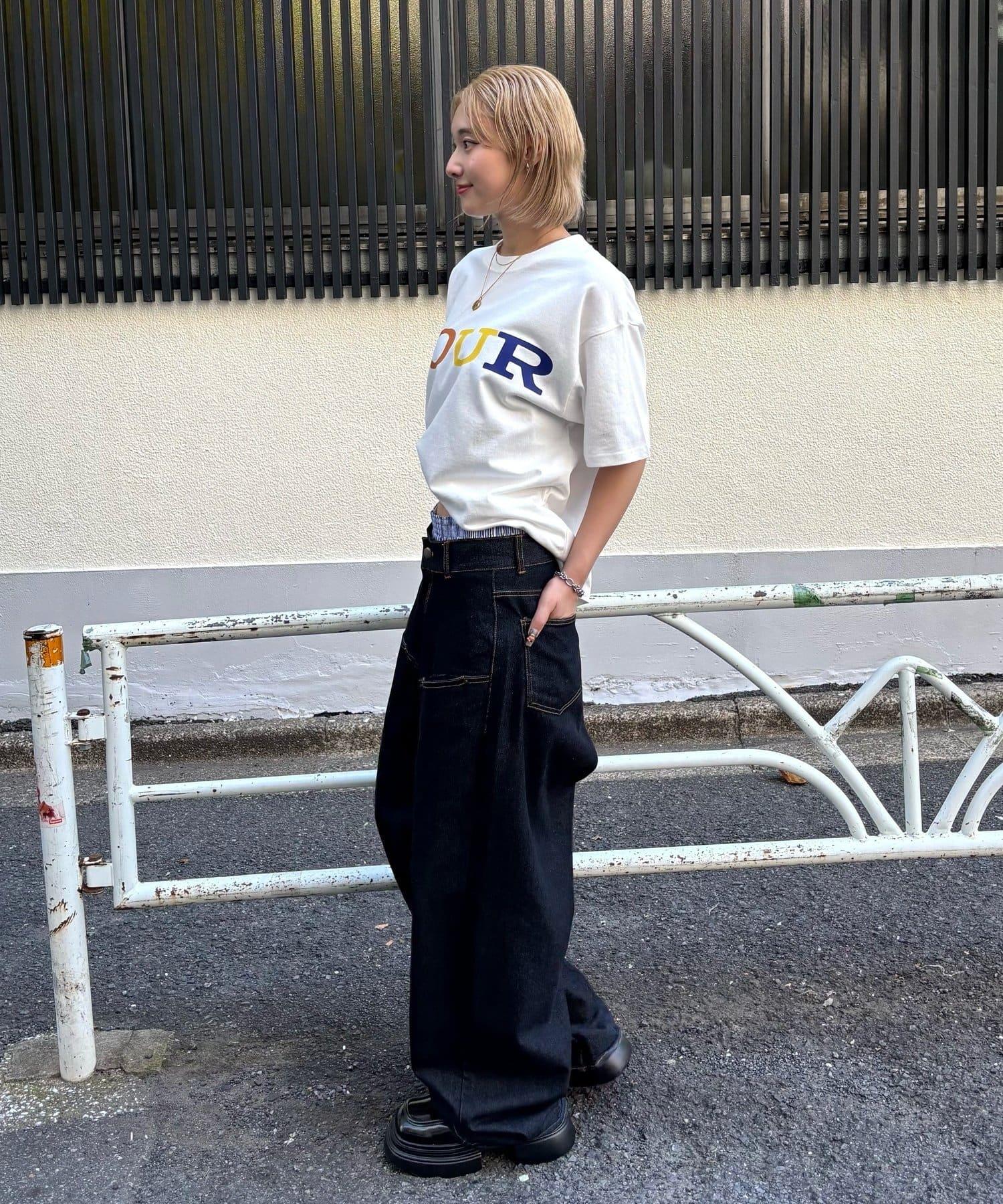 這款 T 恤可搭配牛仔褲或運動褲,打造休閒造型,也可搭配直筒牛仔褲或復古混搭其他多種款式。